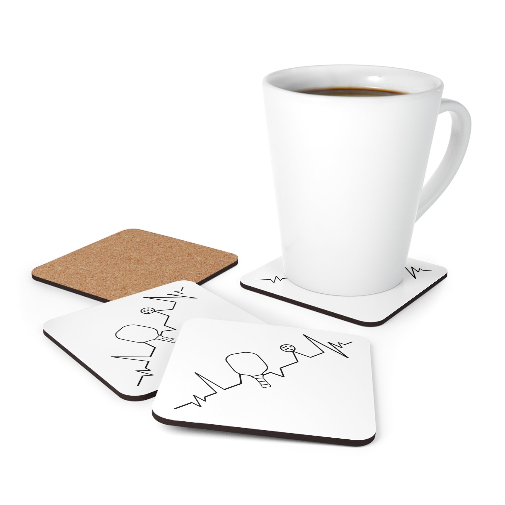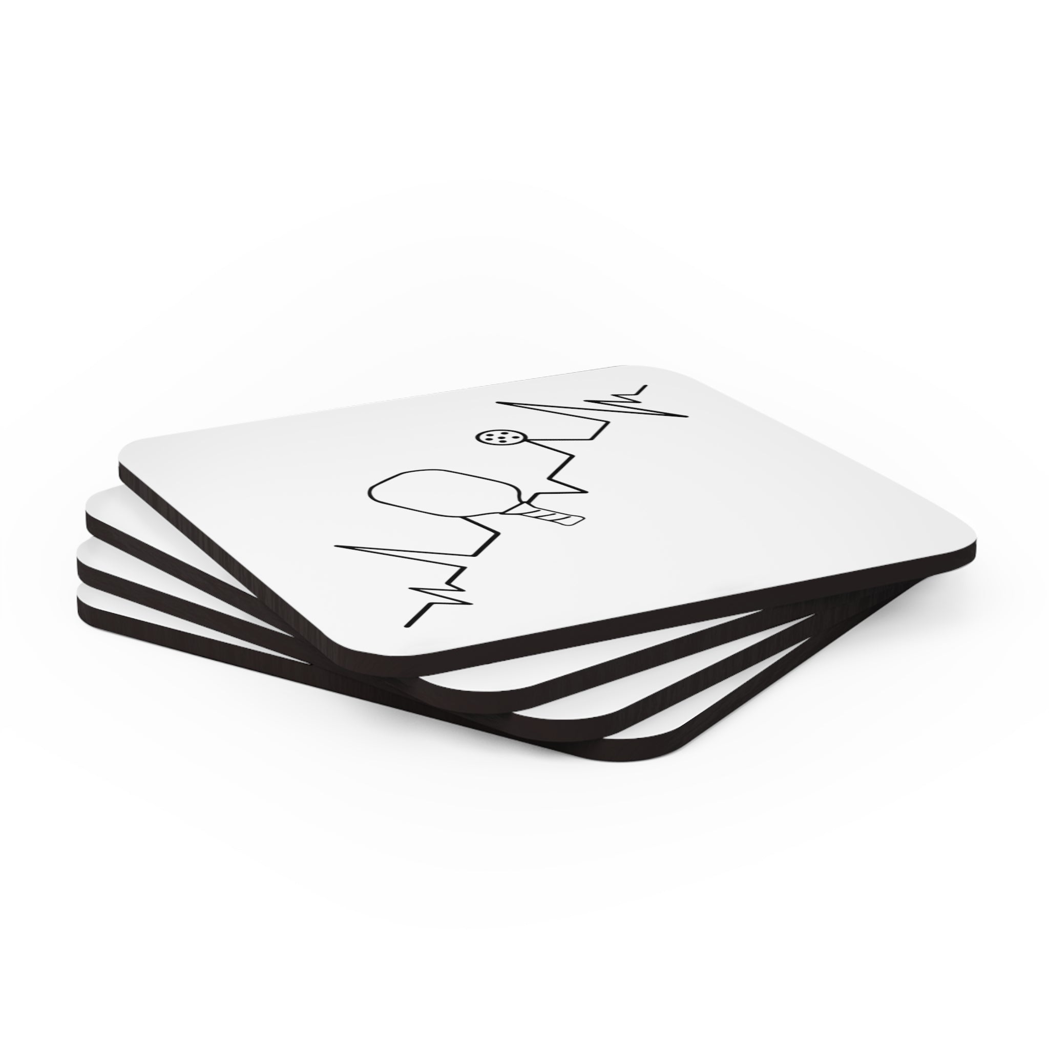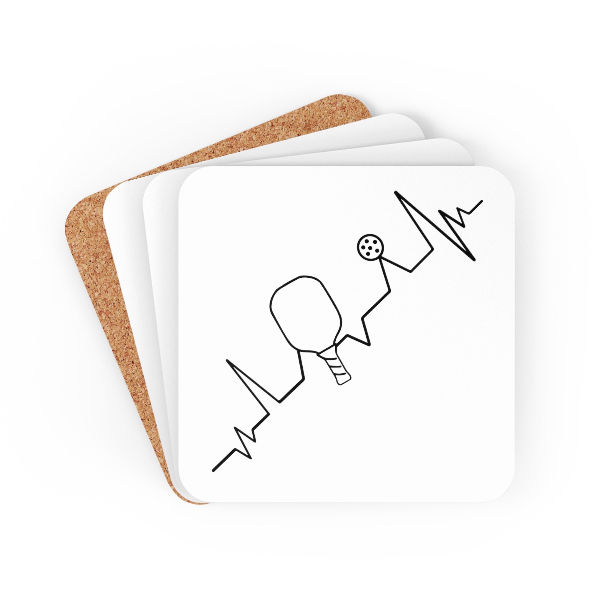 Thin Corkwood Coaster Set of 4 - Pickleball Heartbeat