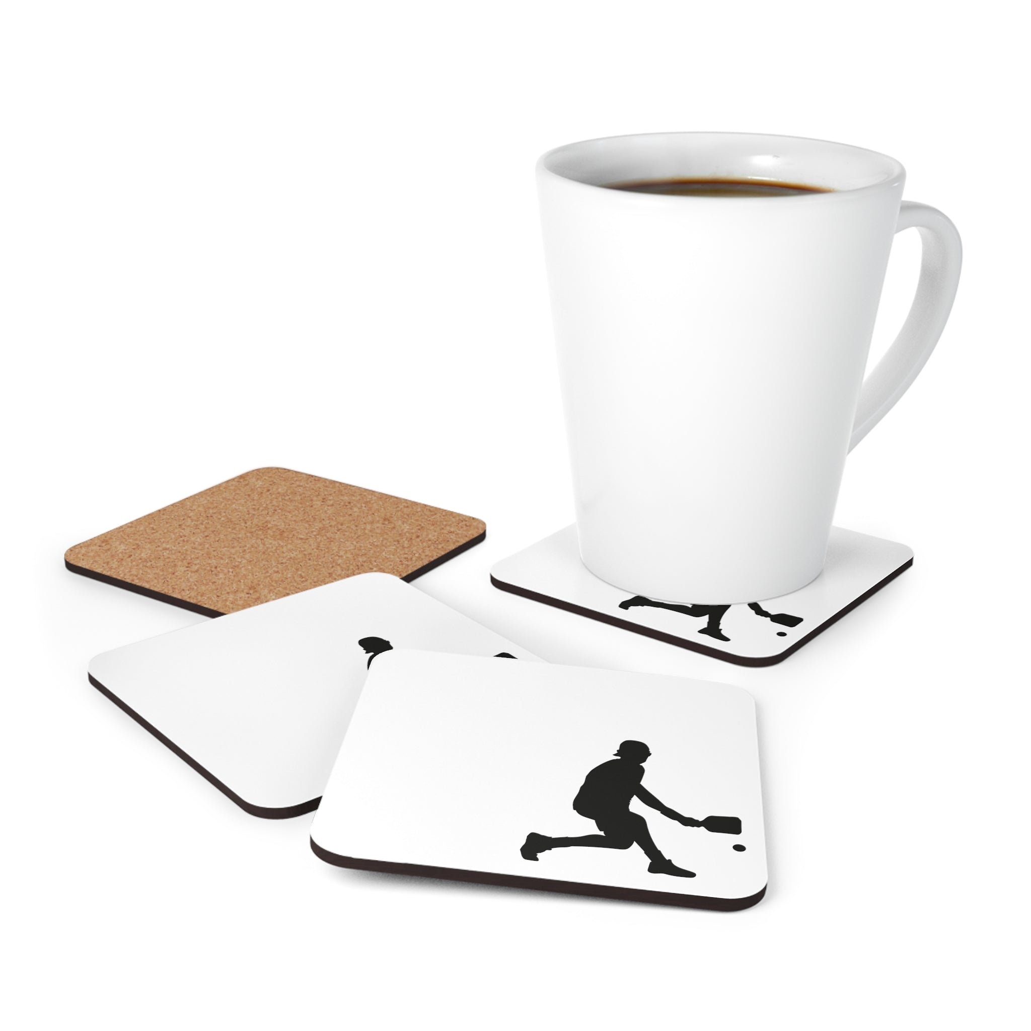 Thin Corkwood Coaster Set of 4 - Pickleball Player