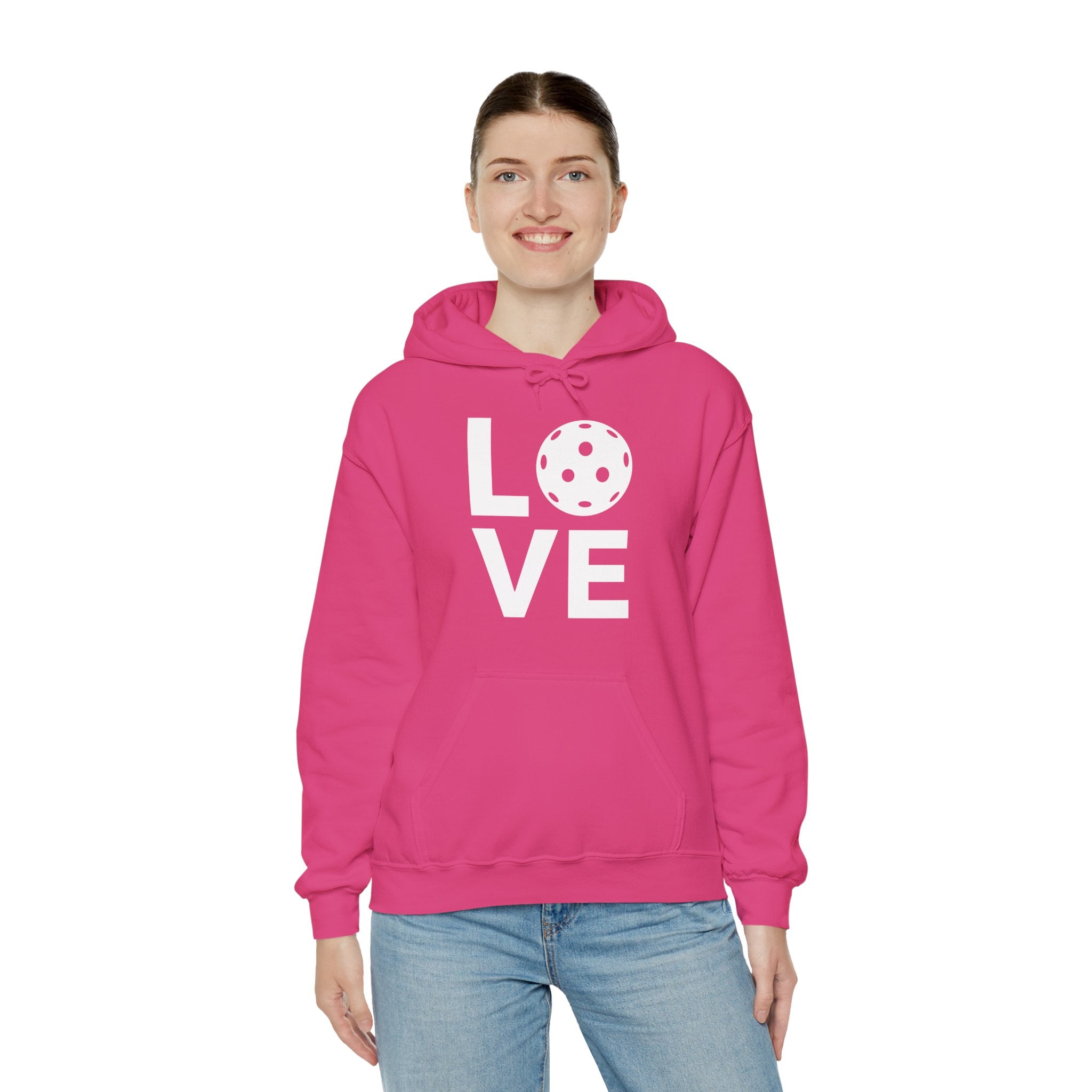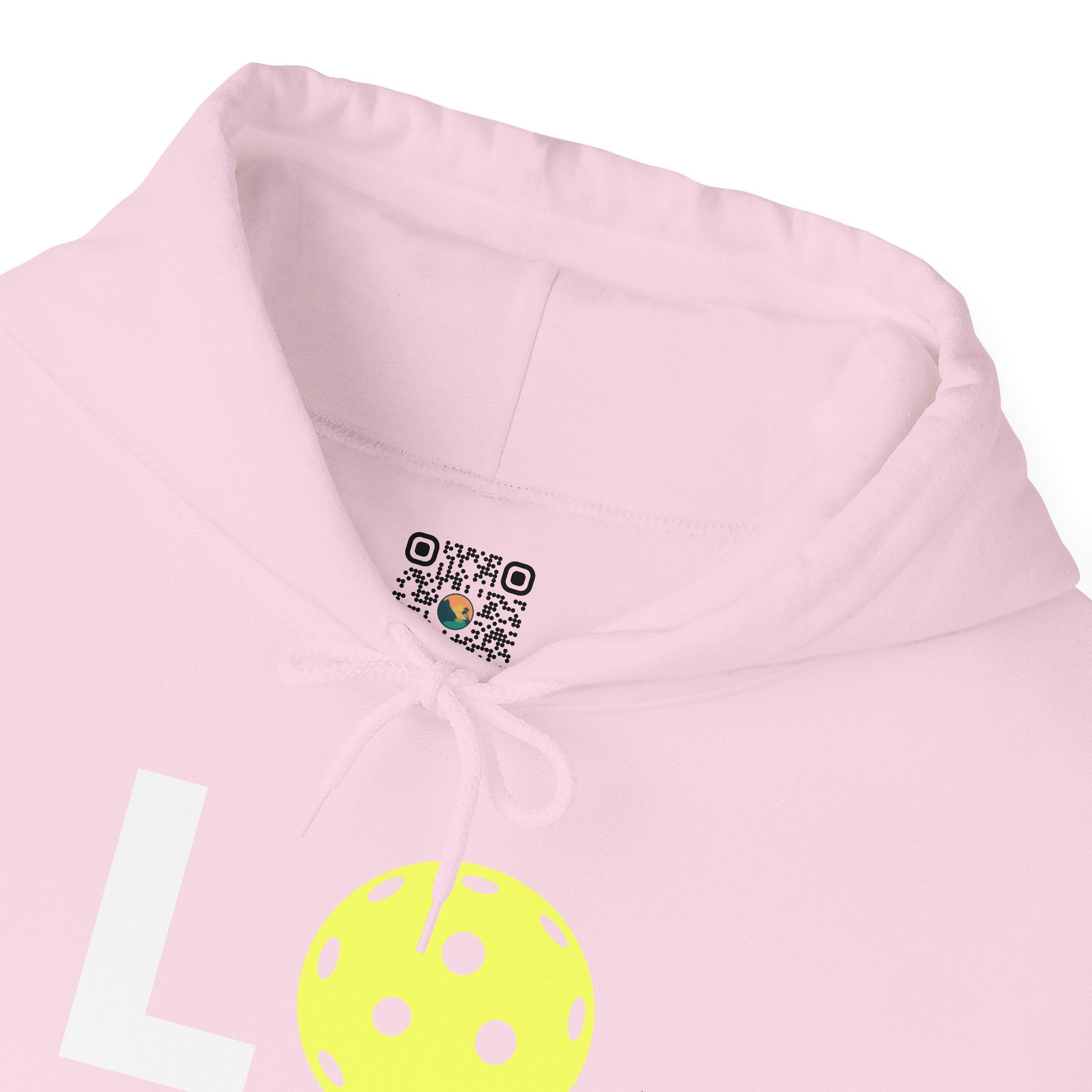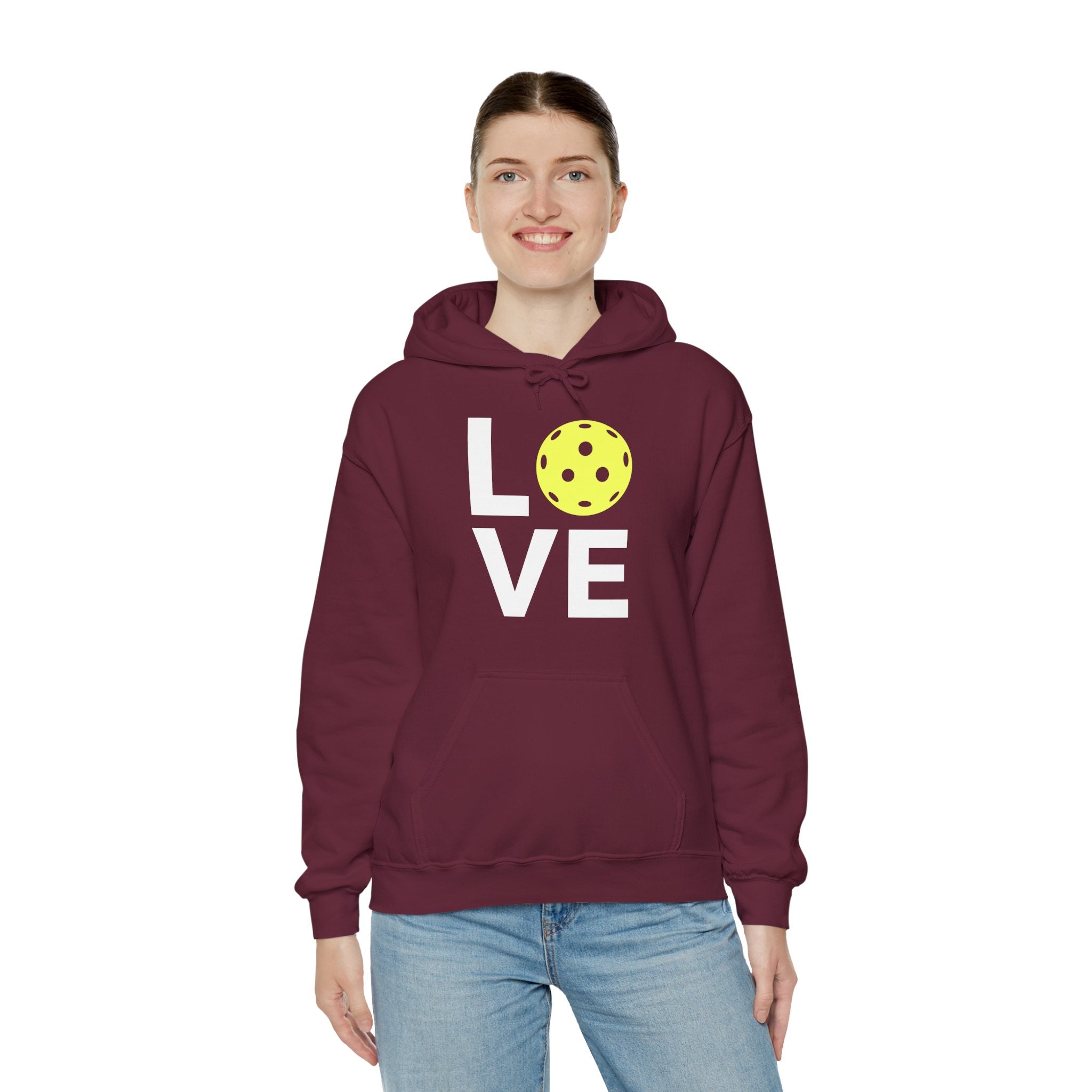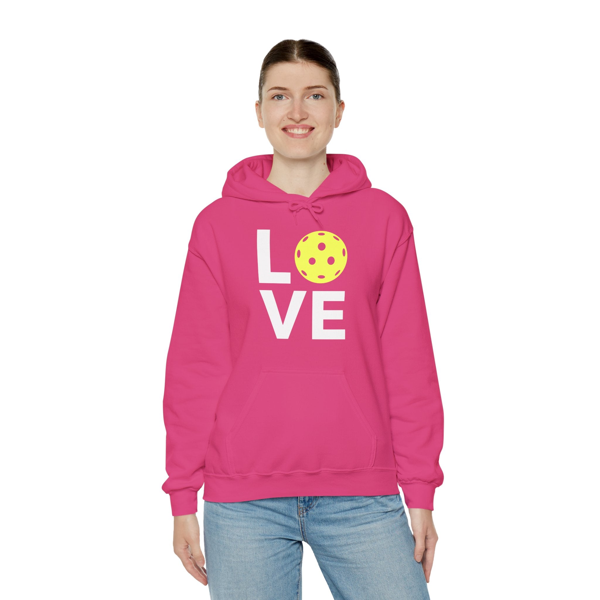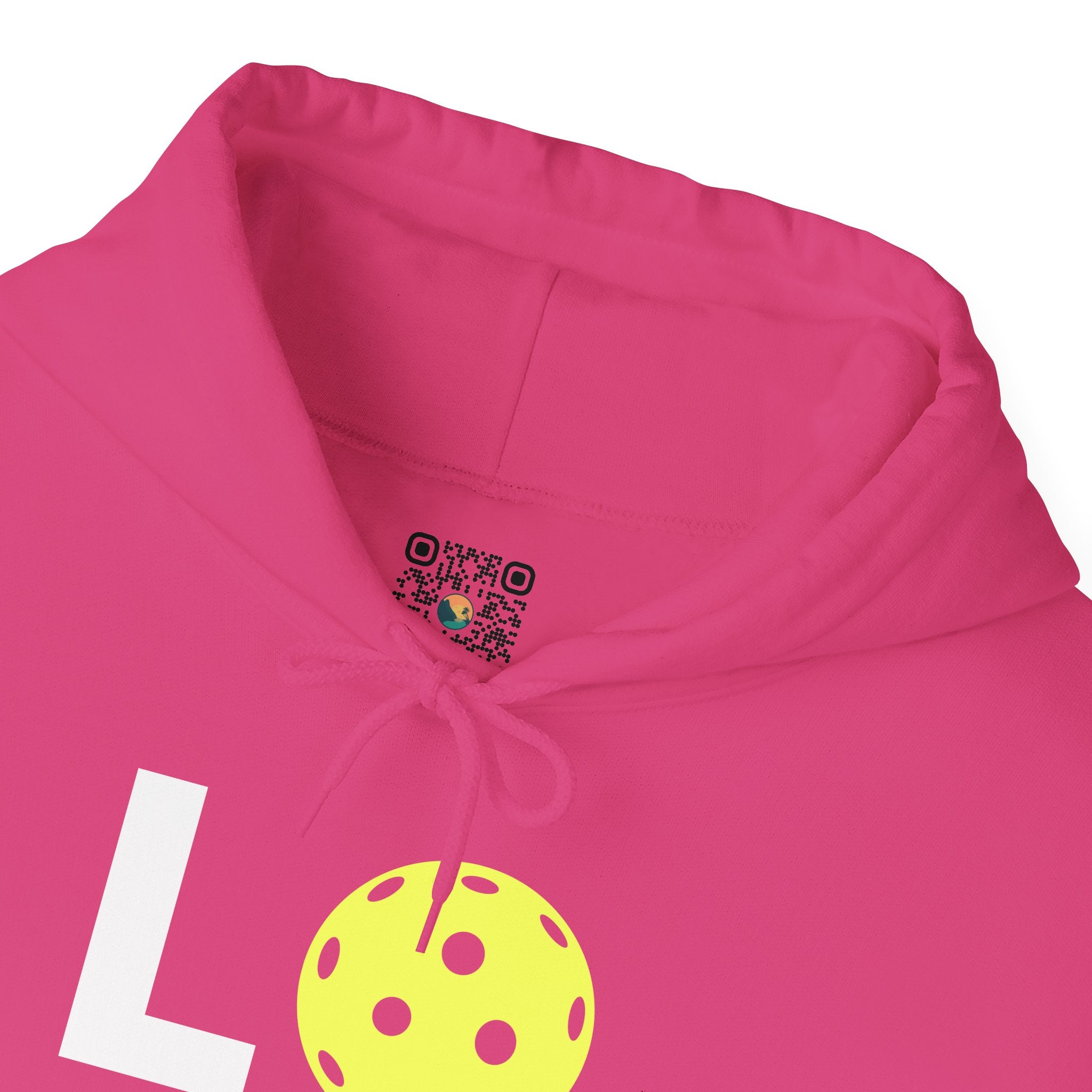 Pickleball Hoodie - LOVE Pickleball with a White Pickleball