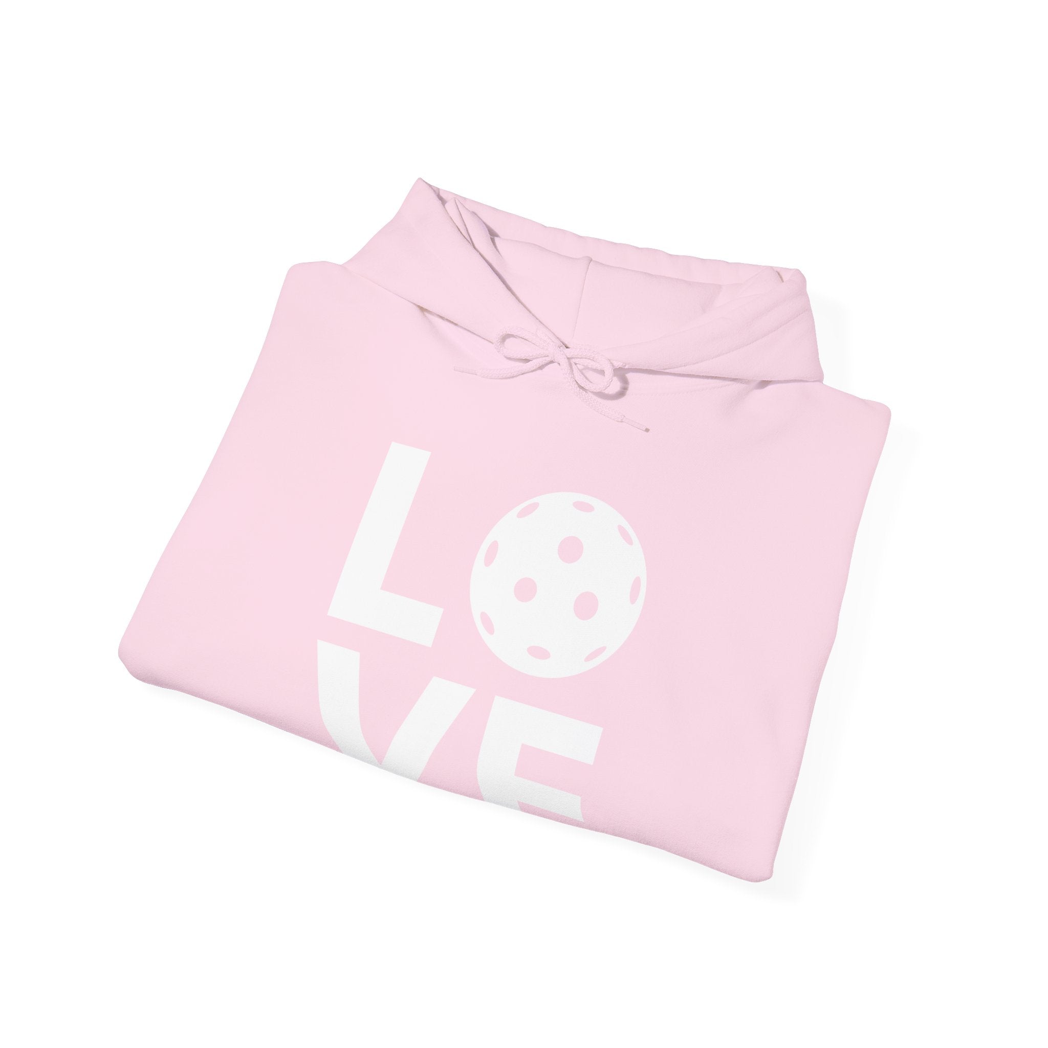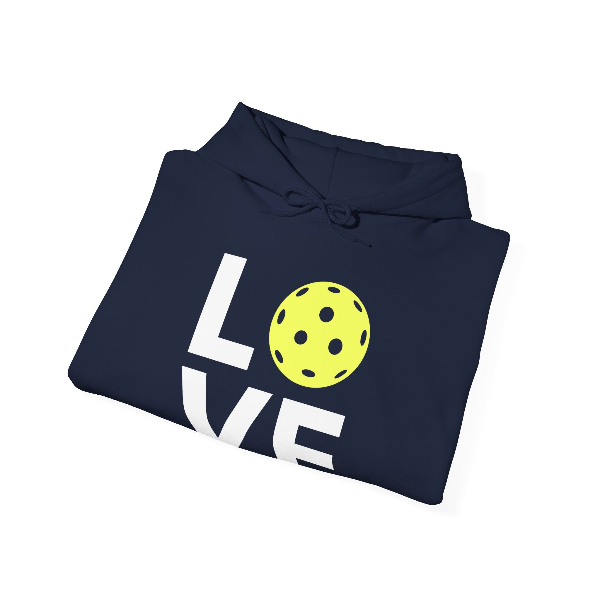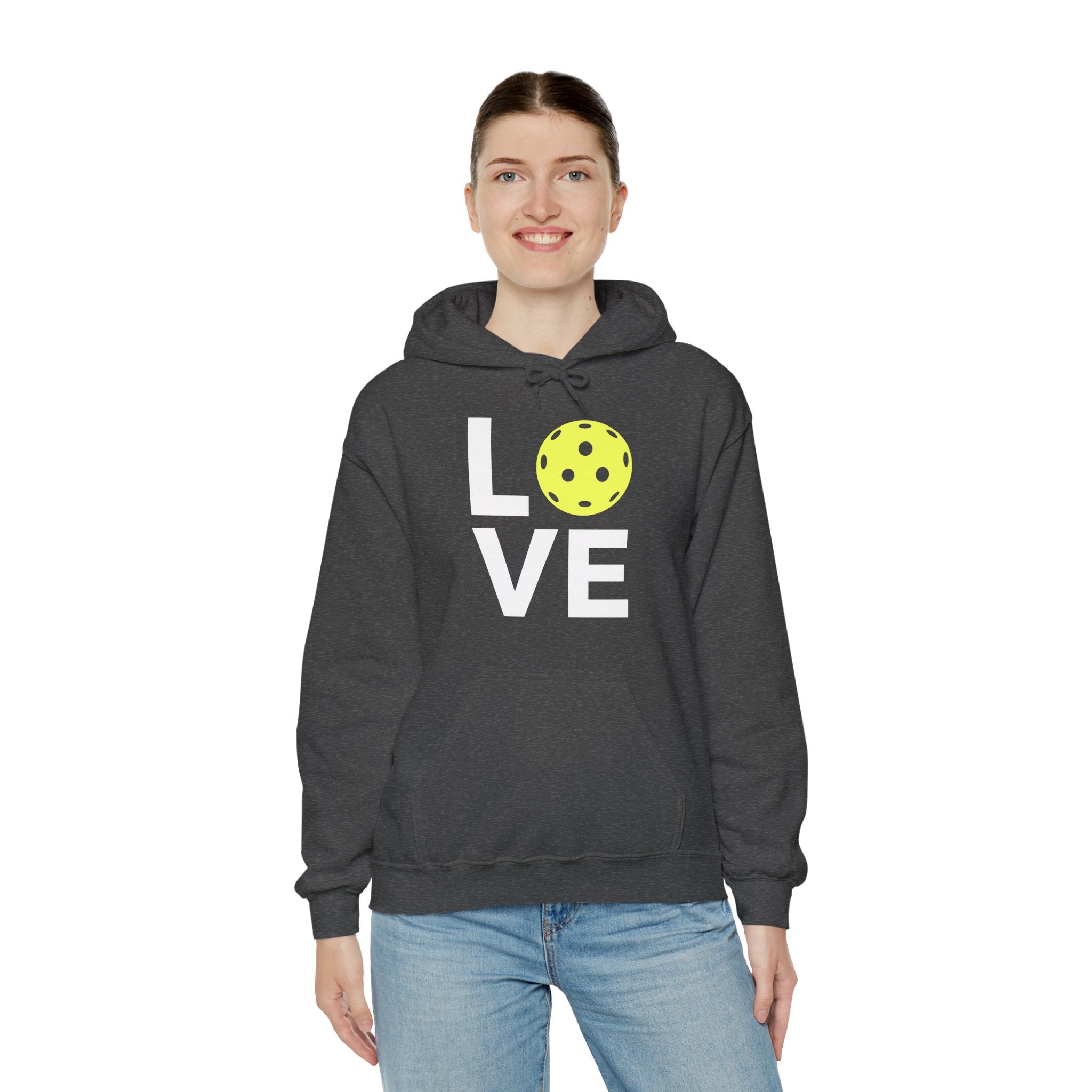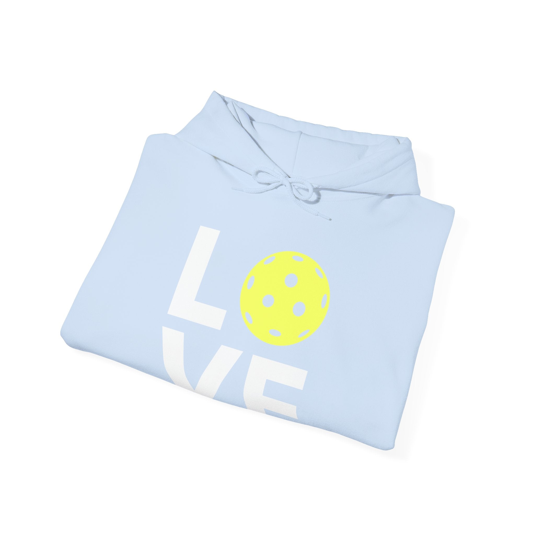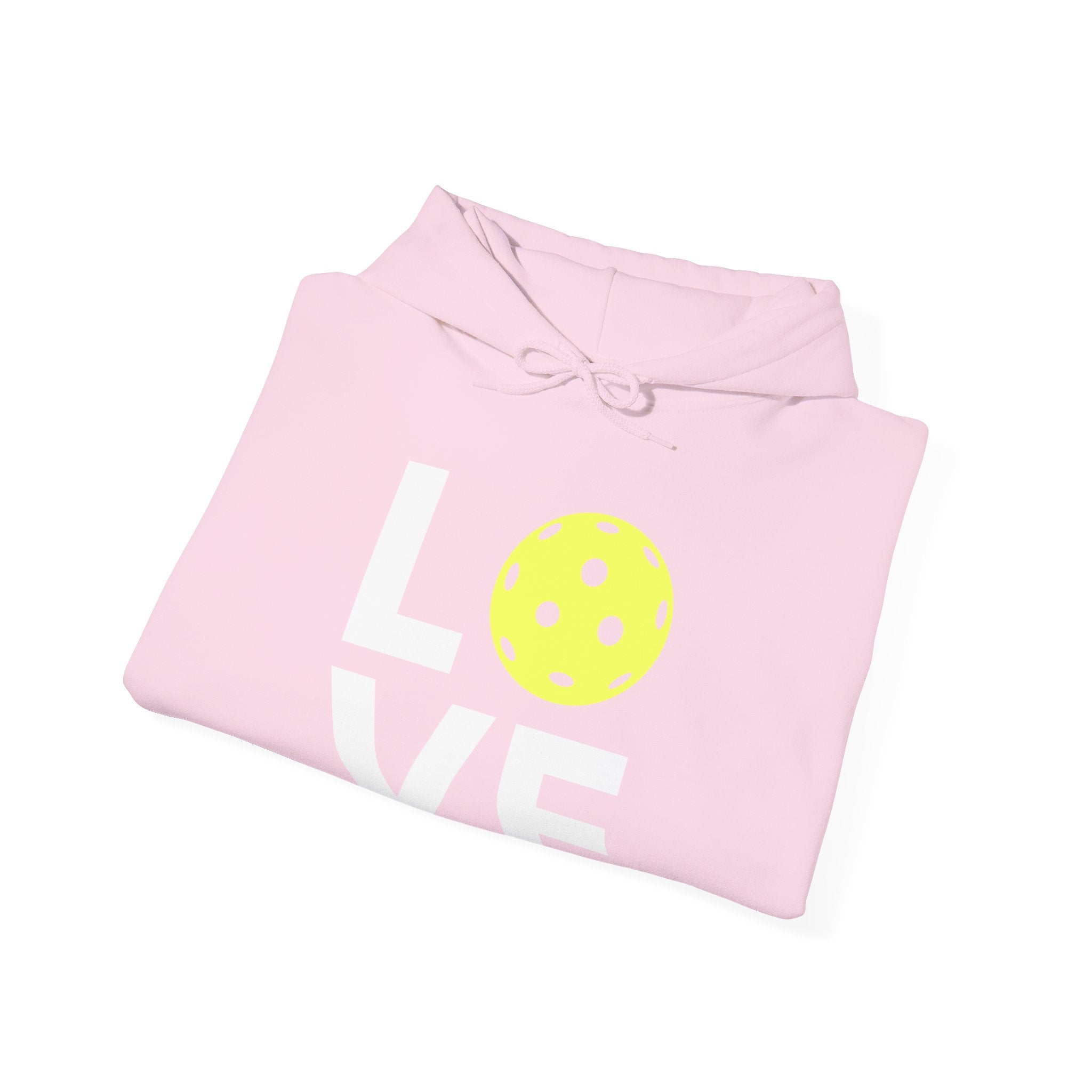 Pickleball Hoodie - LOVE Pickleball with a White Pickleball