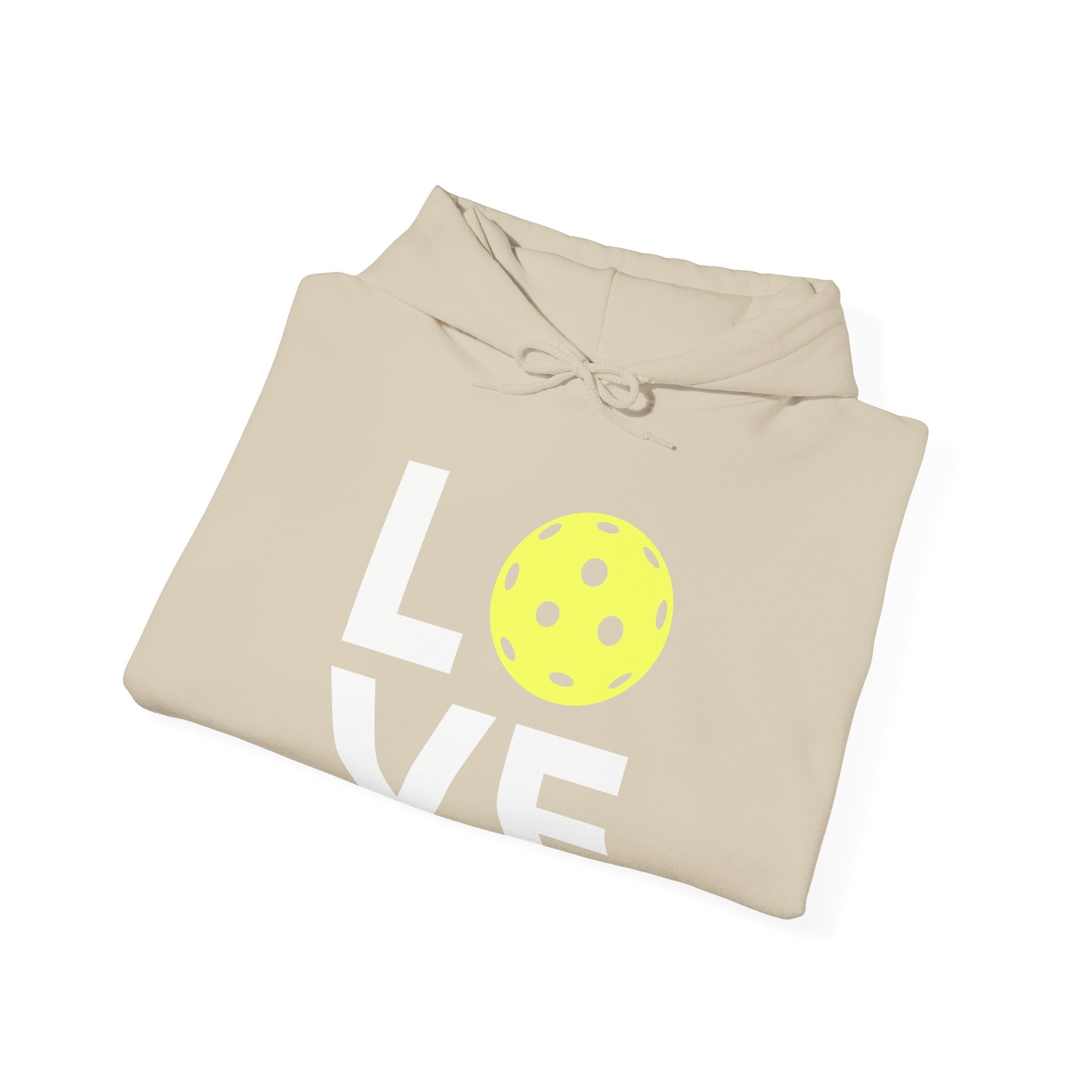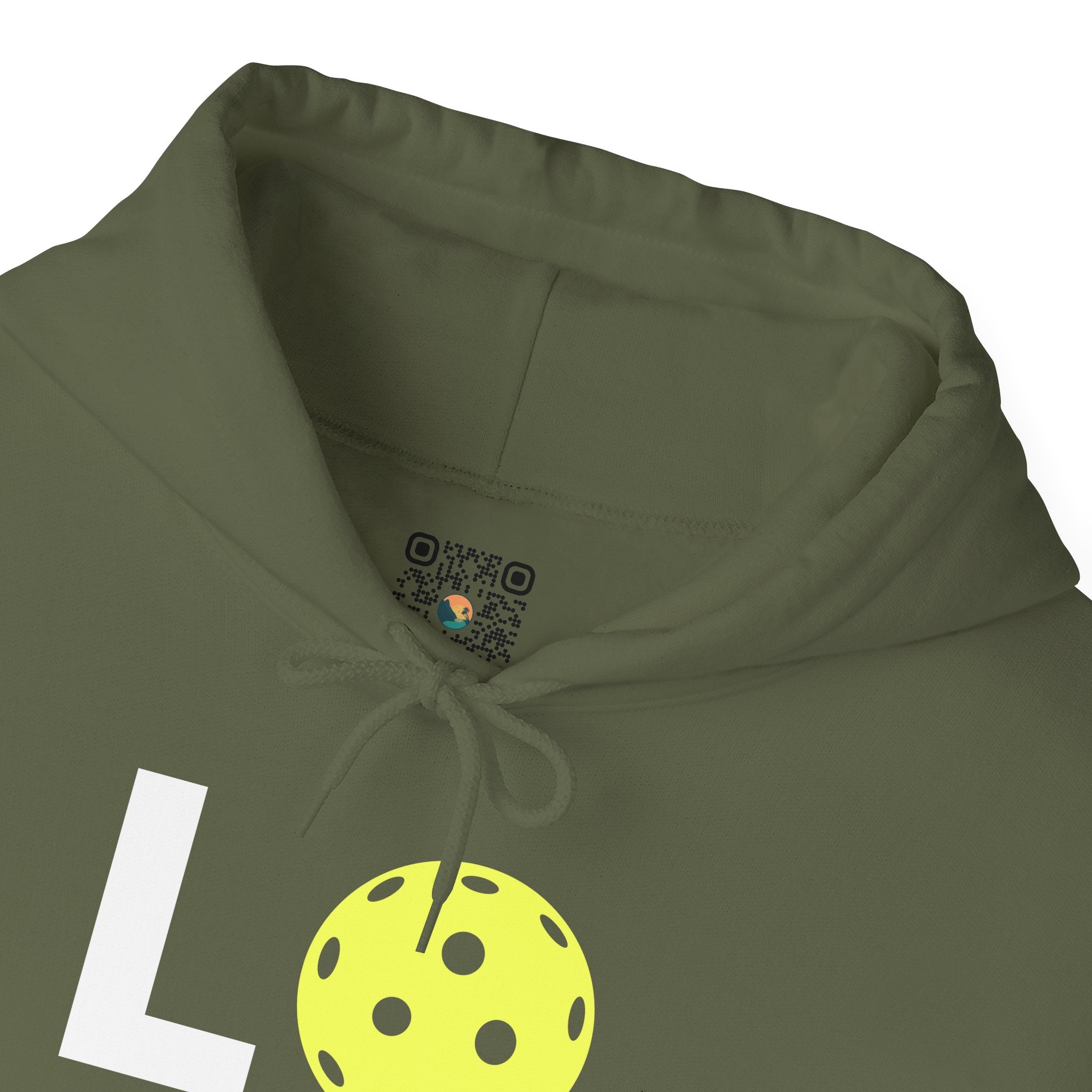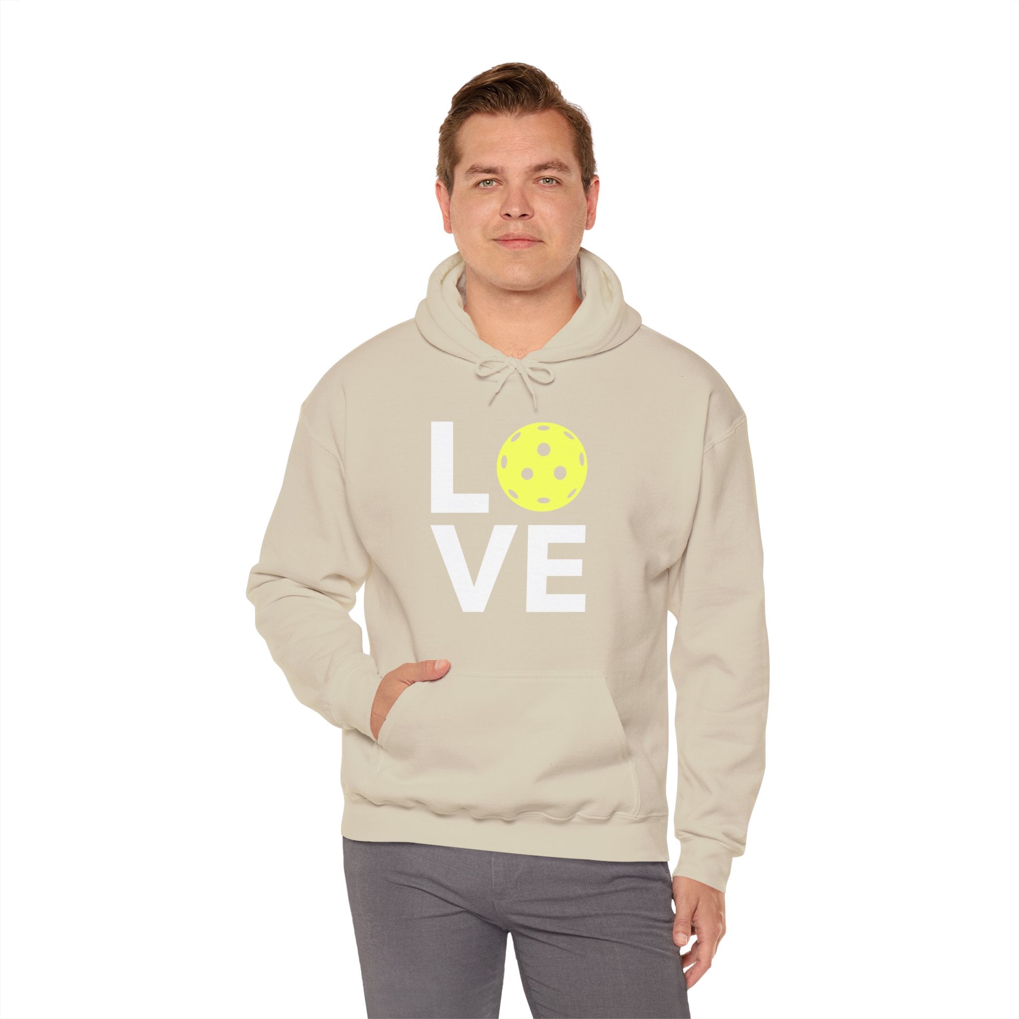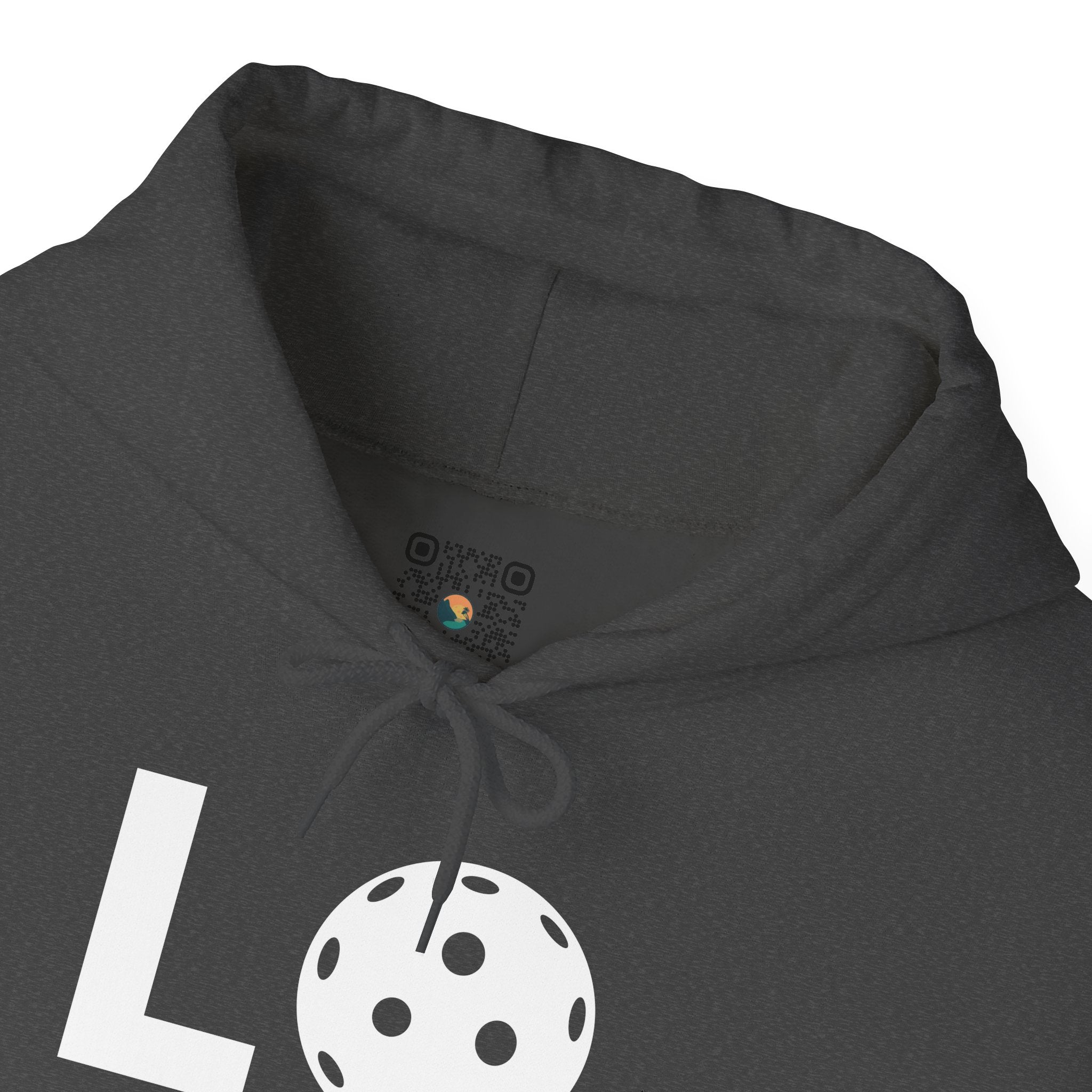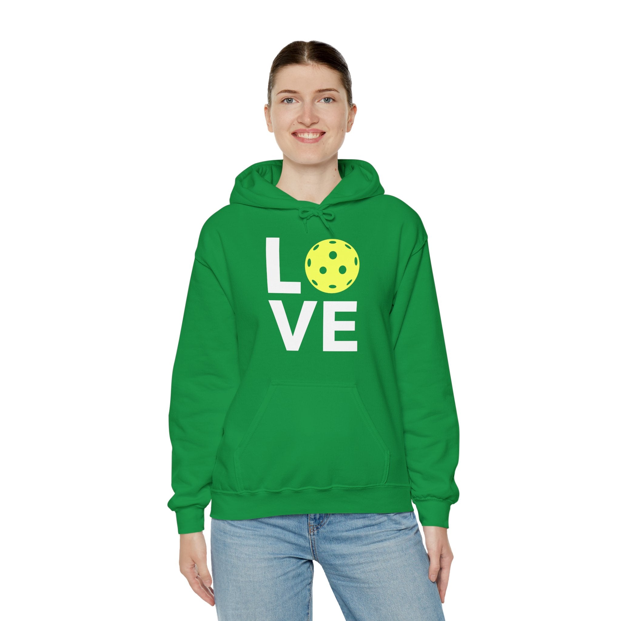 Pickleball Hoodie - LOVE Pickleball with a White Pickleball