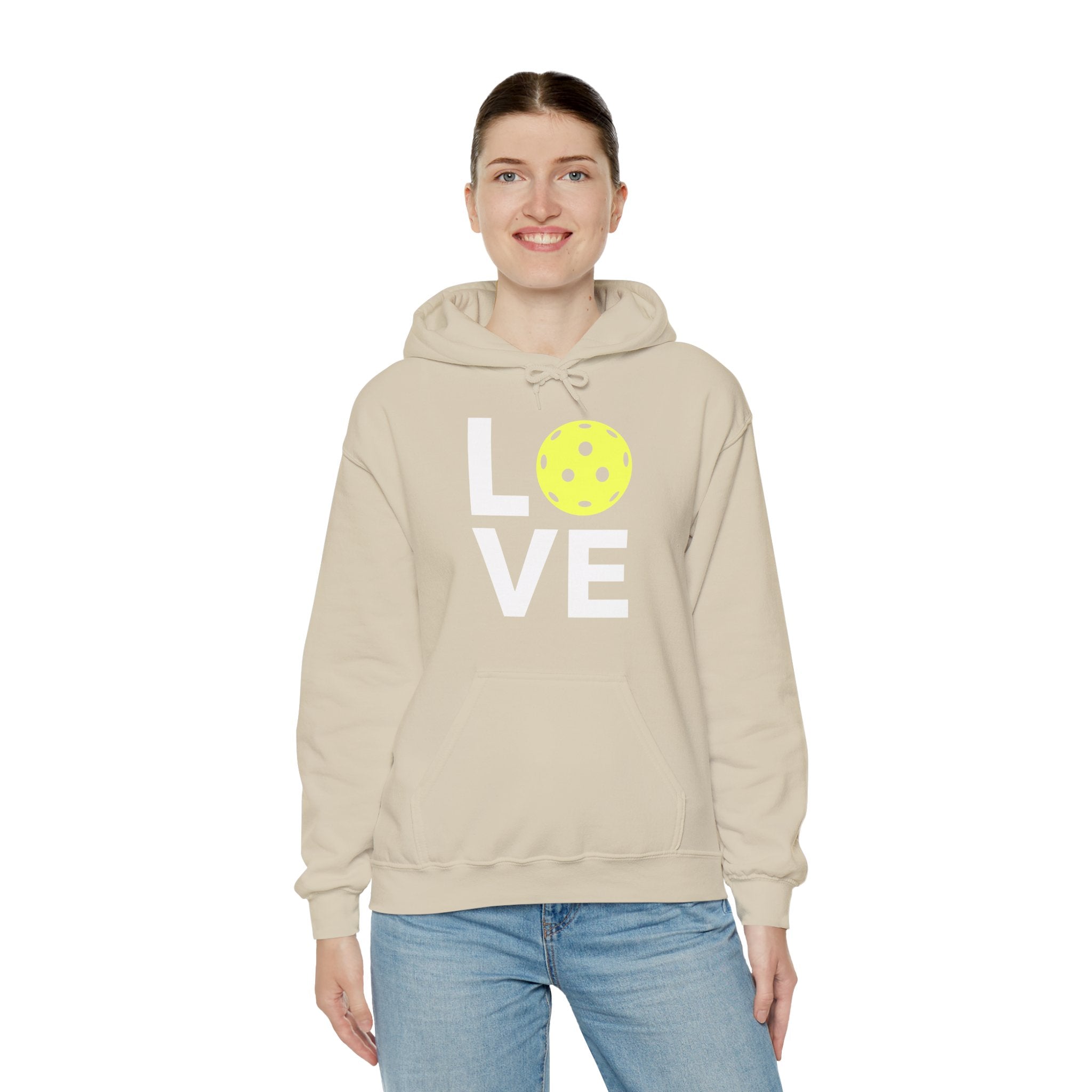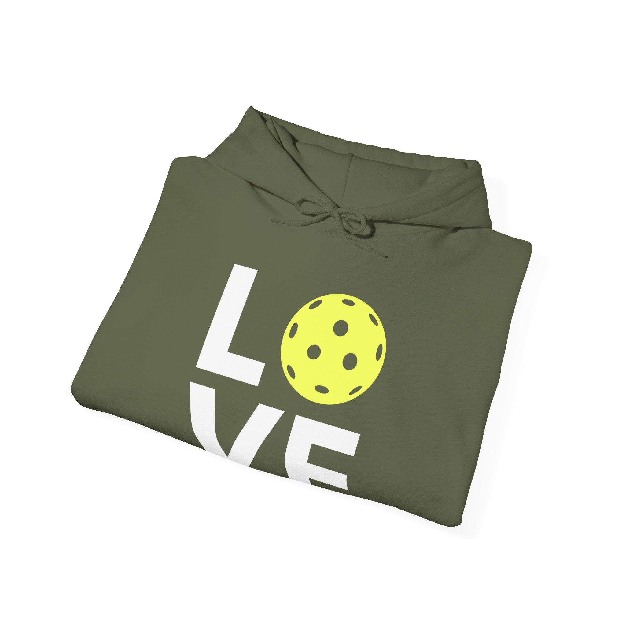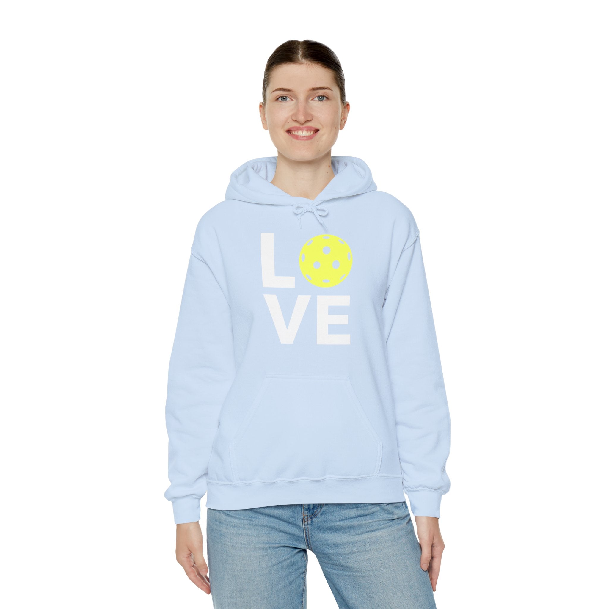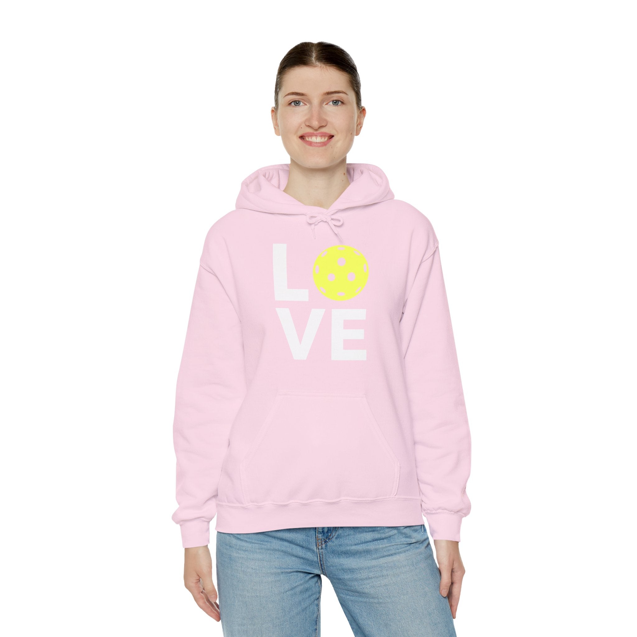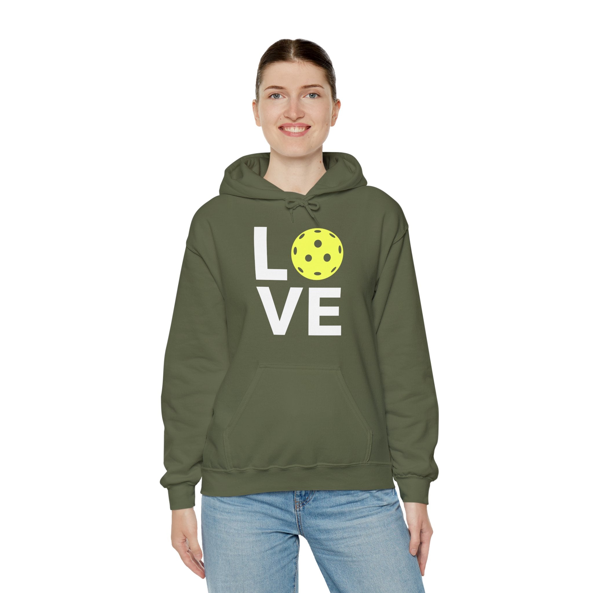 Pickleball Hoodie - LOVE Pickleball with a White Pickleball