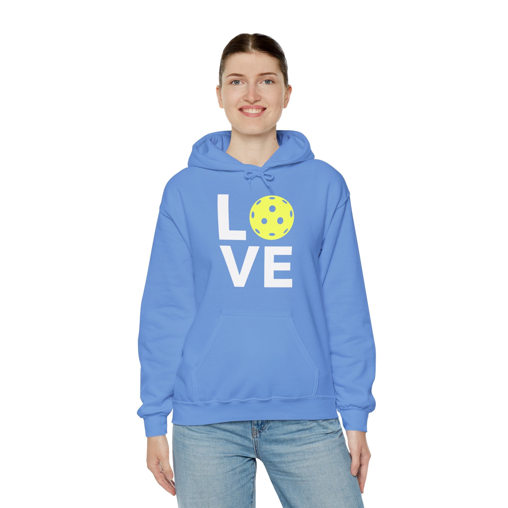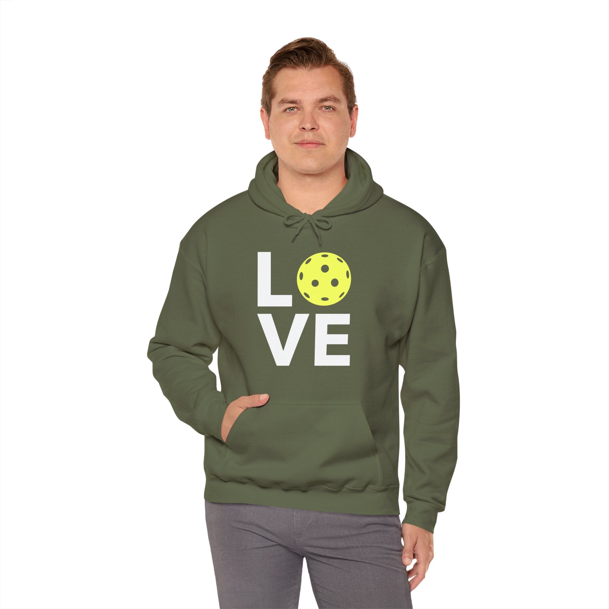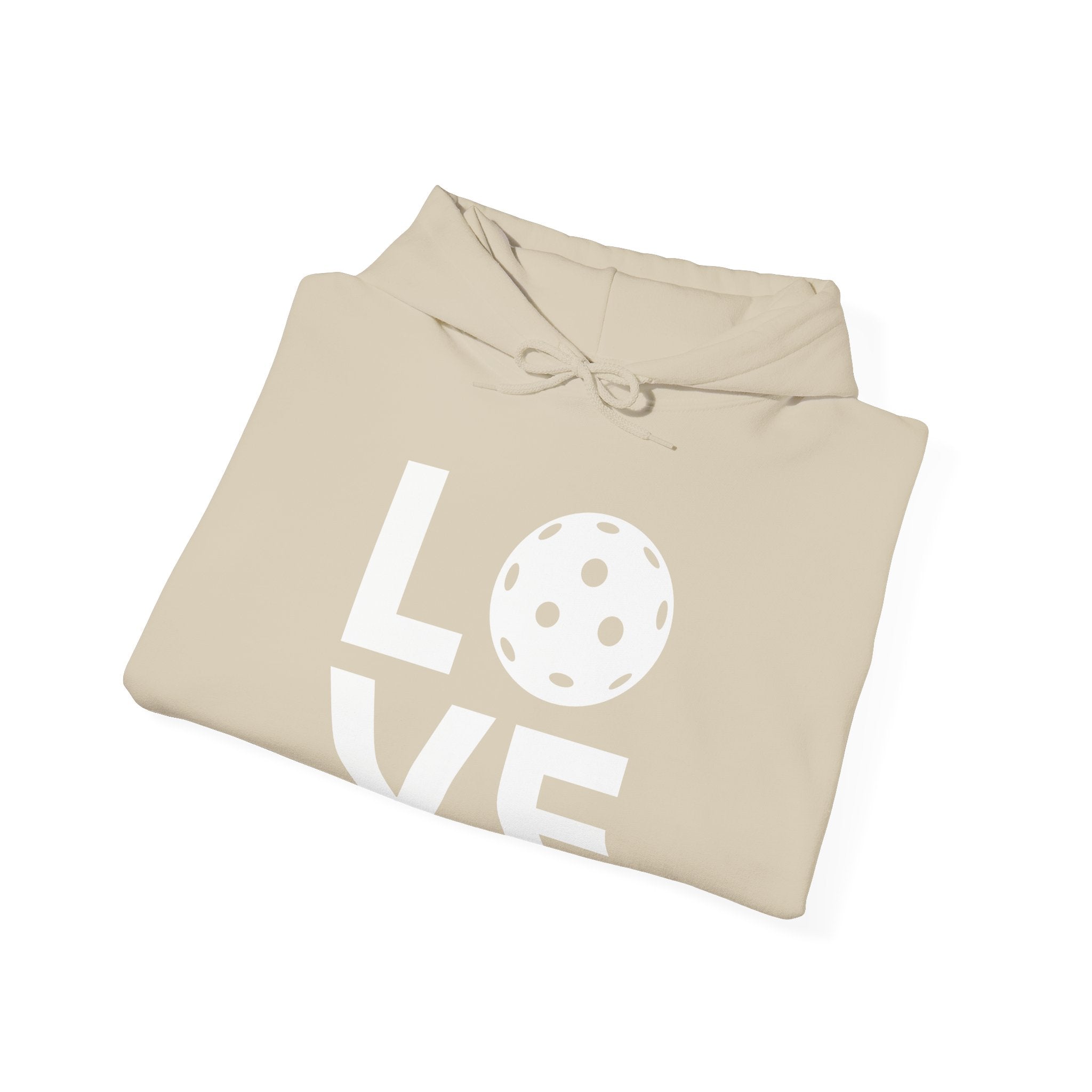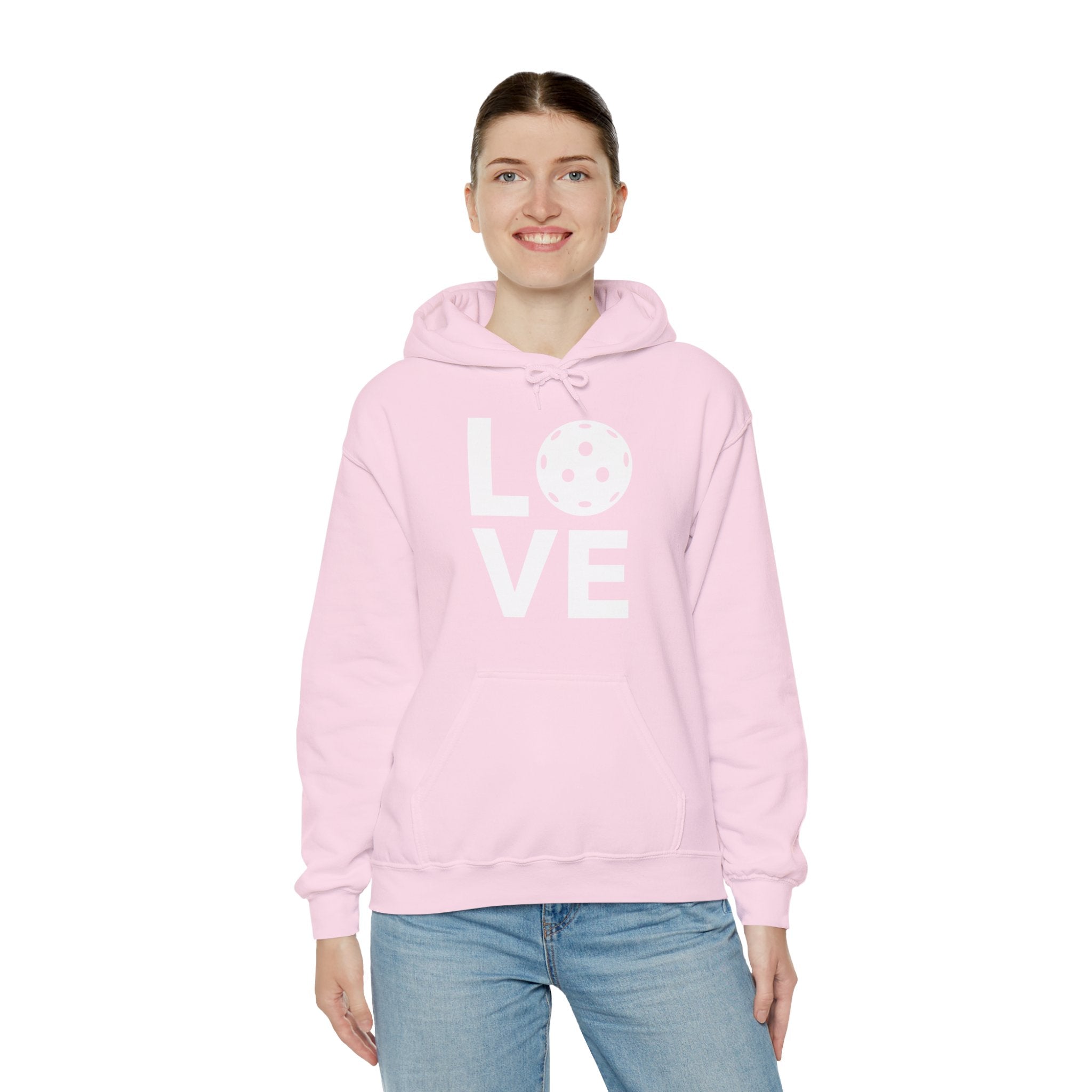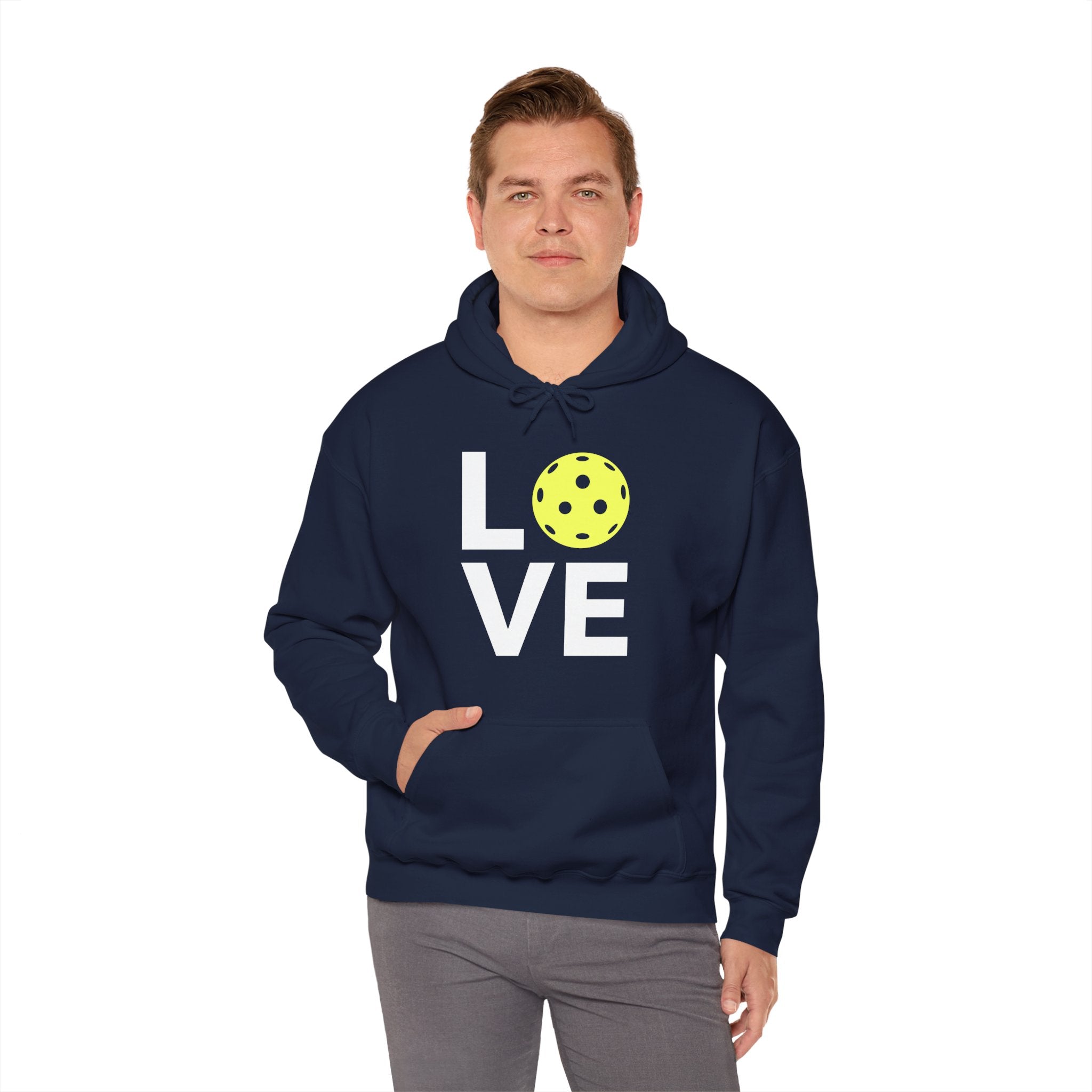 Pickleball Hoodie - LOVE Pickleball with a White Pickleball