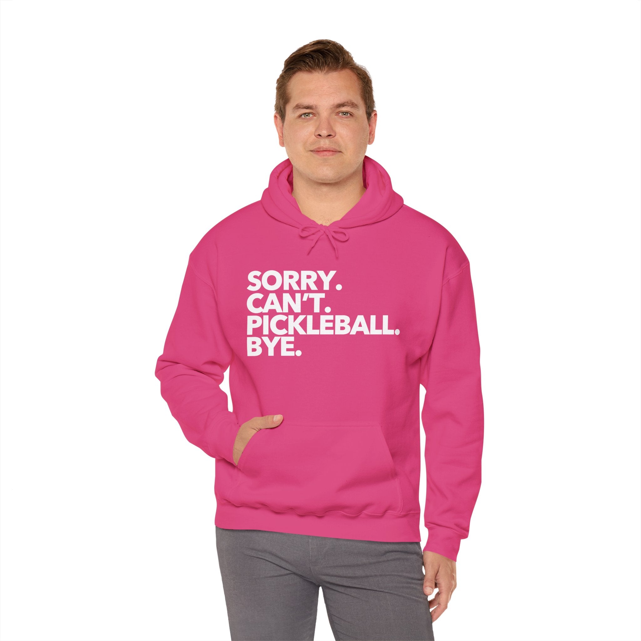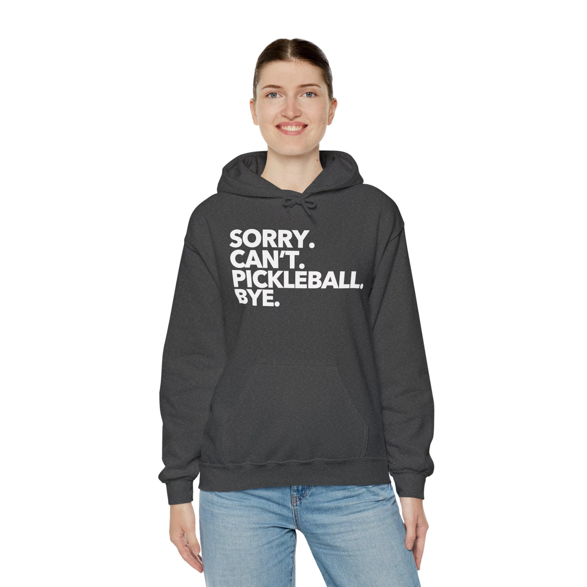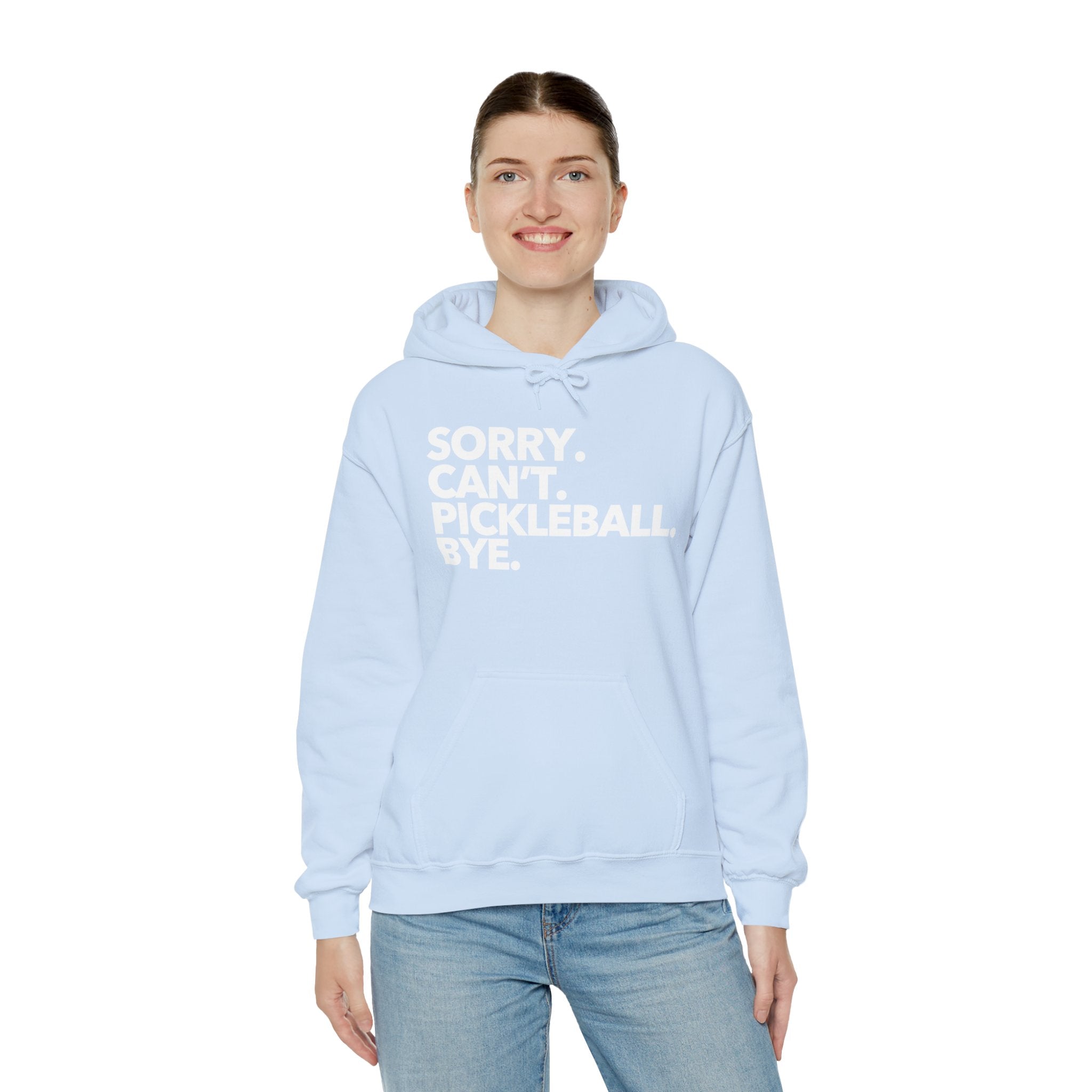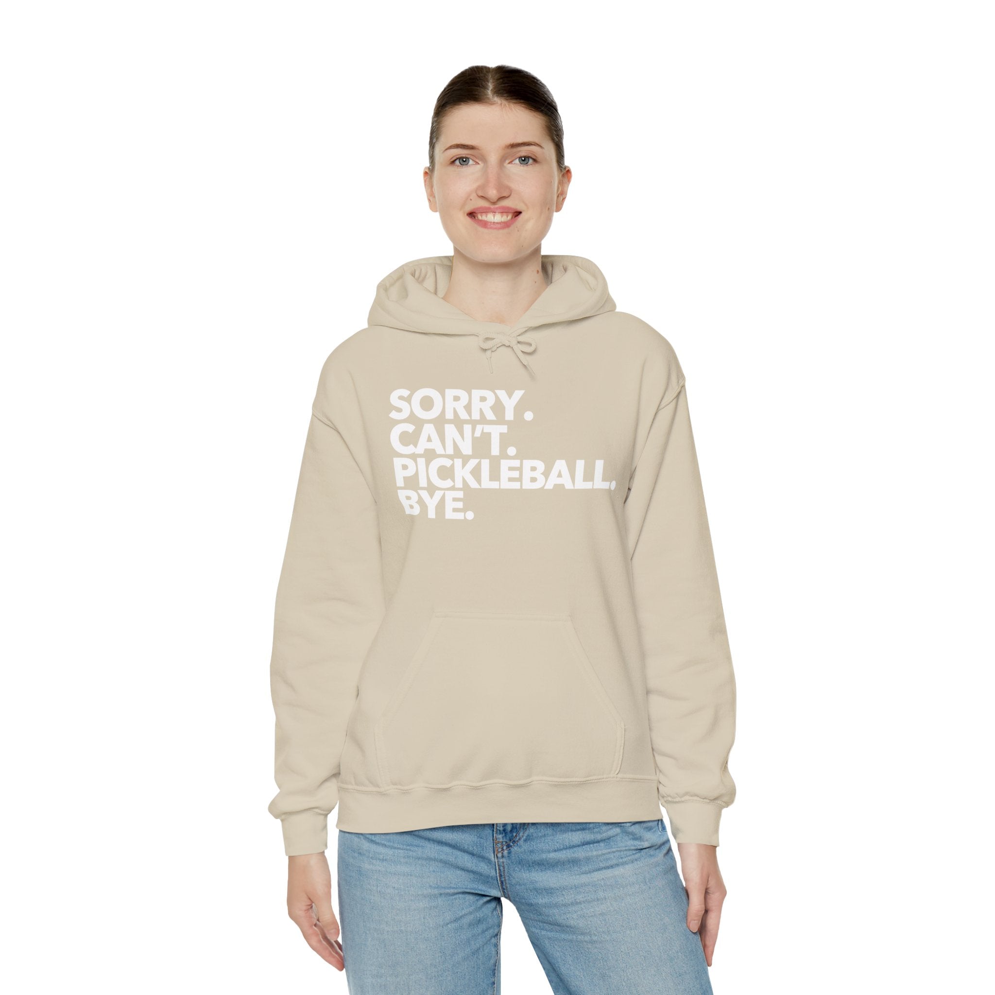 Pickleball Hoodie - White 'Sorry. Can't. Pickleball. Bye.'