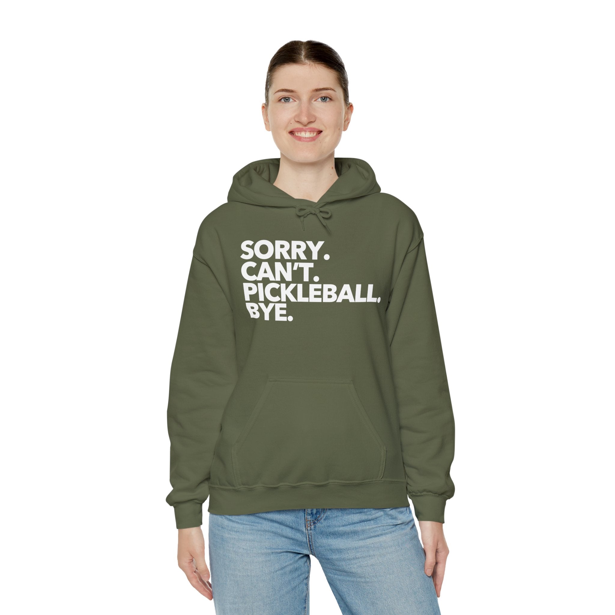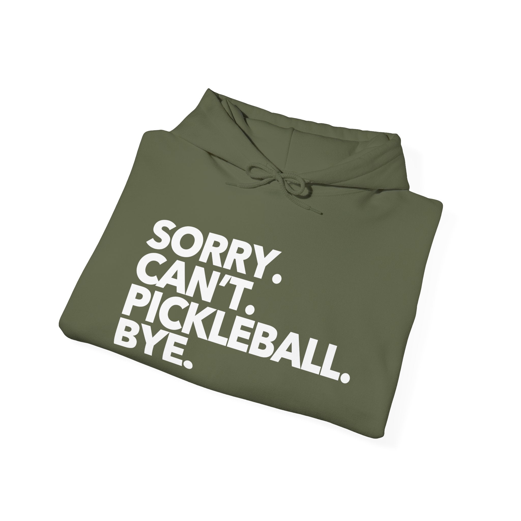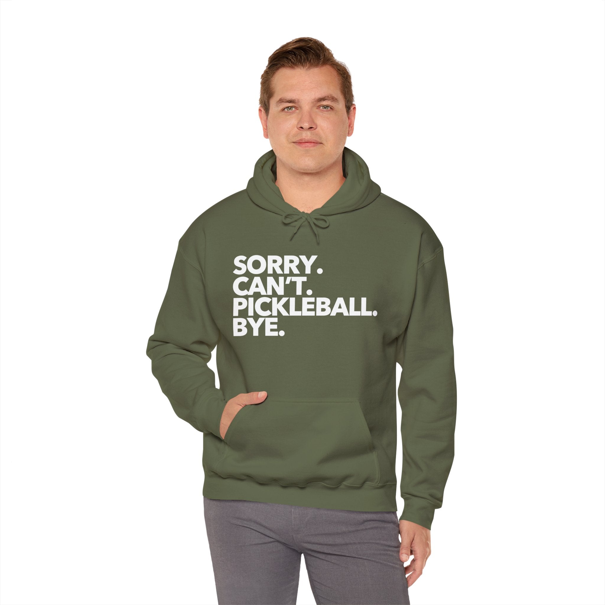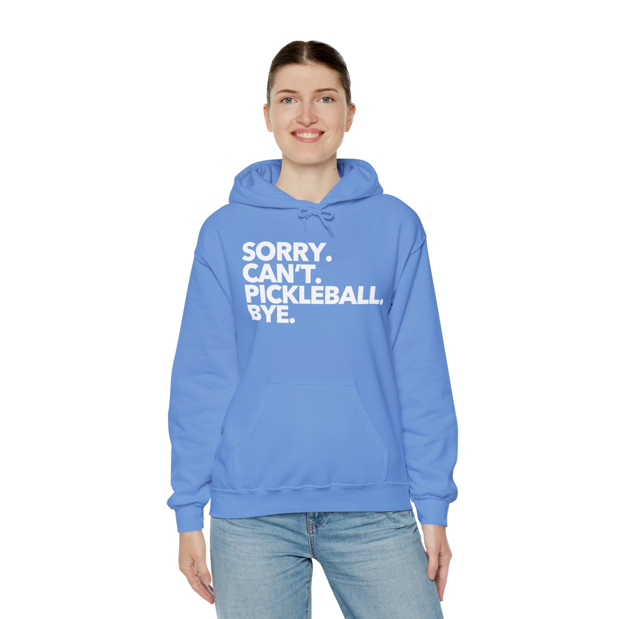 Pickleball Hoodie - White 'Sorry. Can't. Pickleball. Bye.'