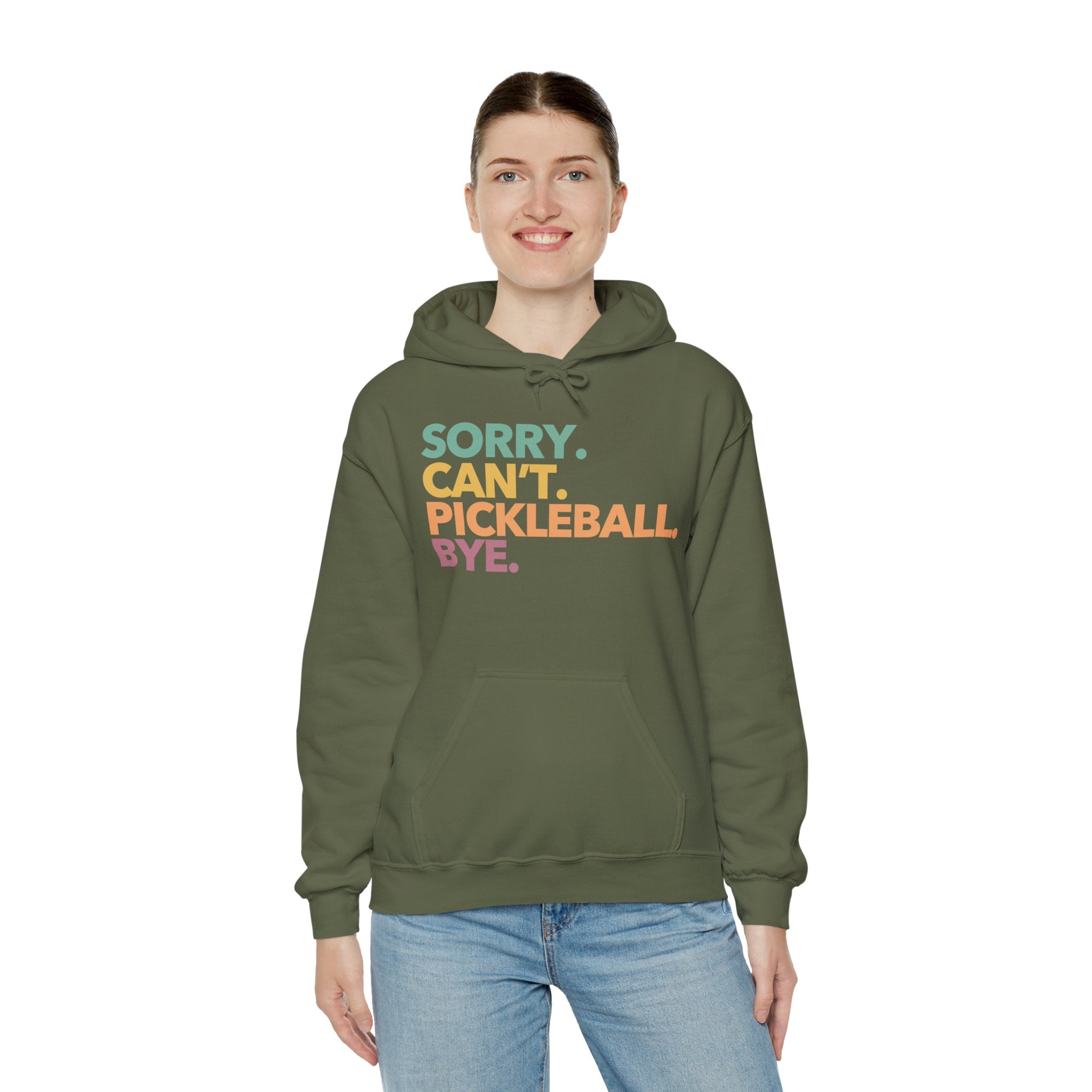 Pickleball Hoodie - Colorful 'Sorry. Can't. Pickleball. Bye.'