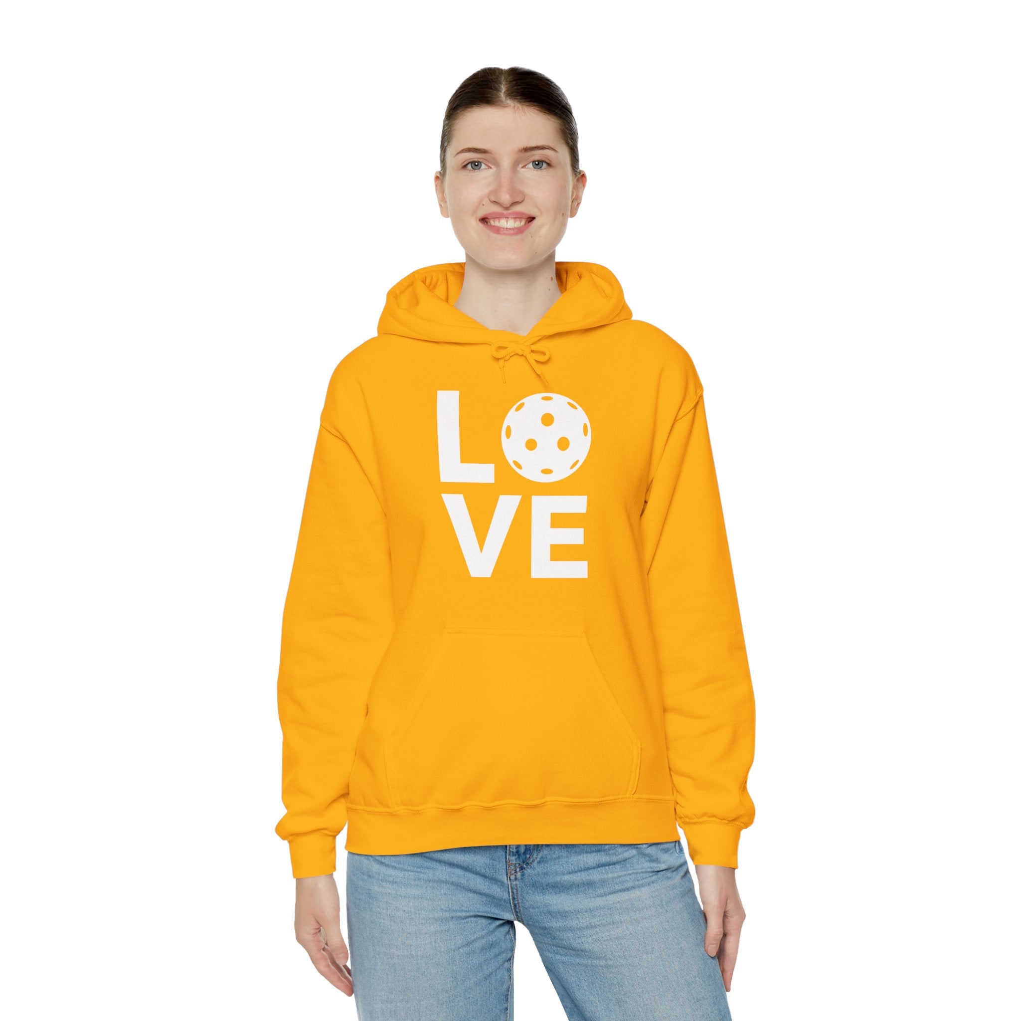 Pickleball Hoodie - LOVE Pickleball with a Yellow Pickleball