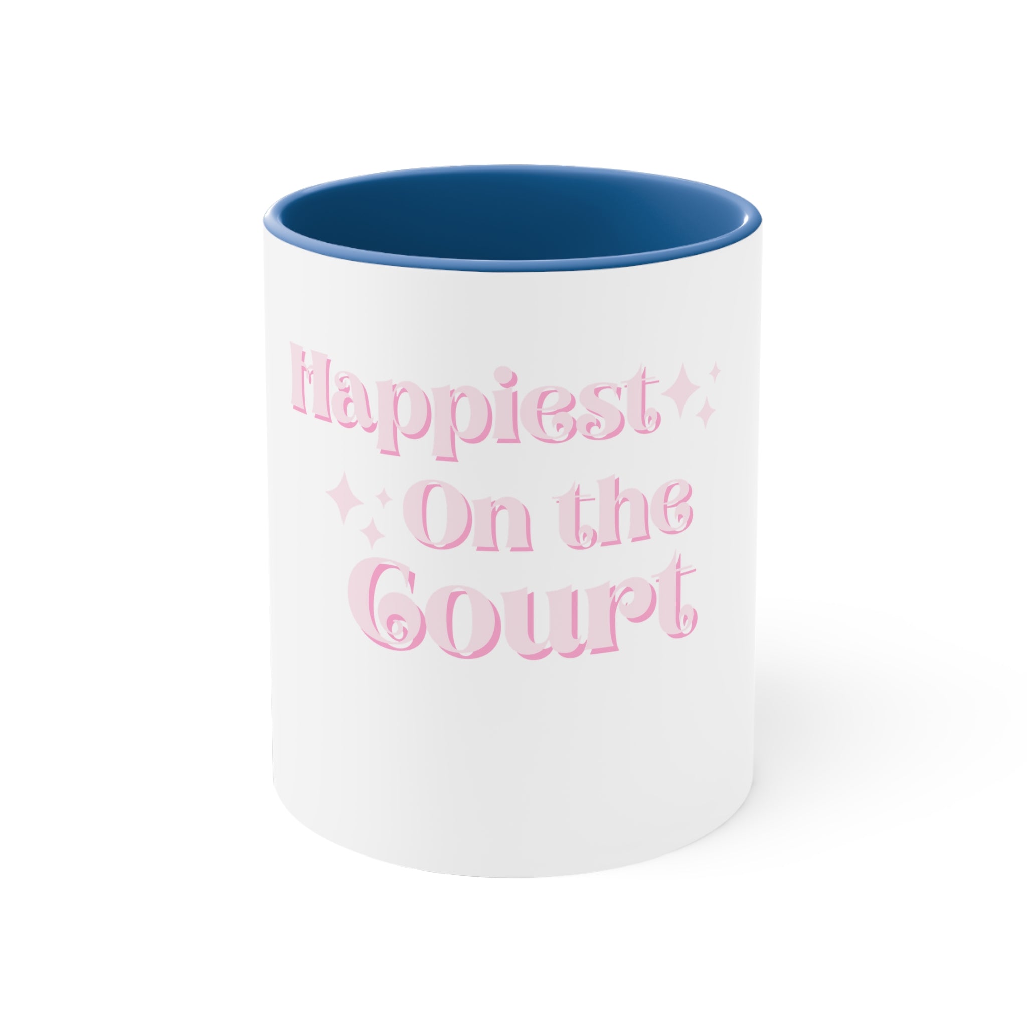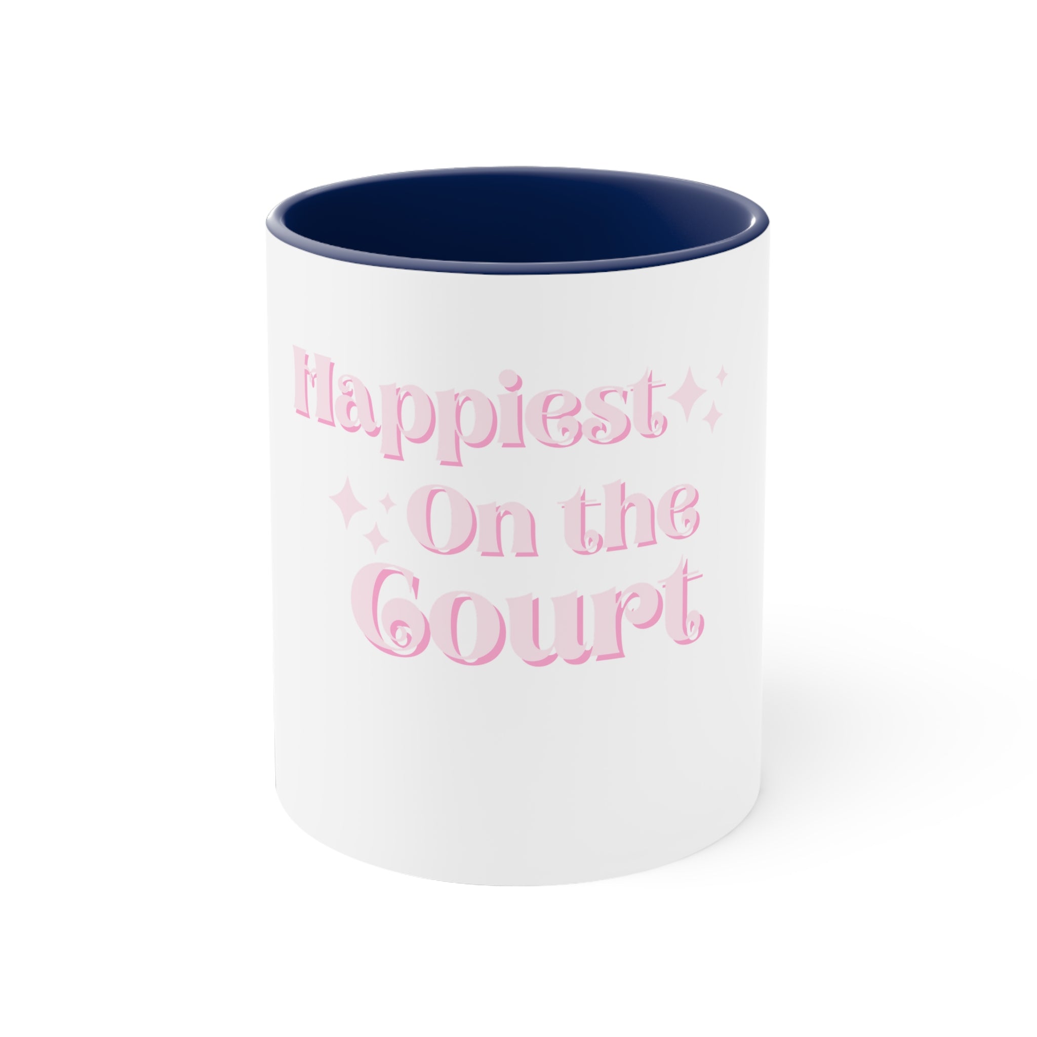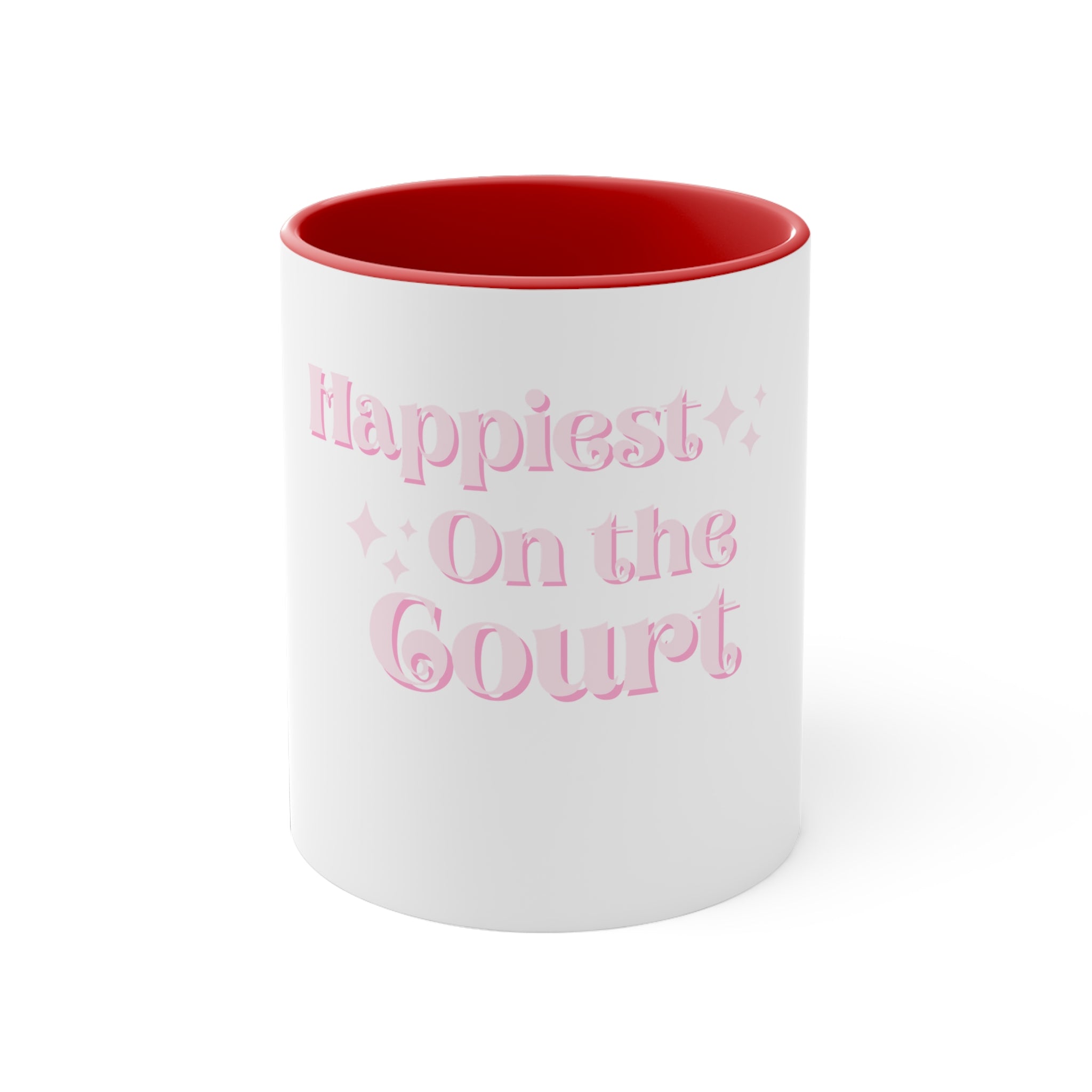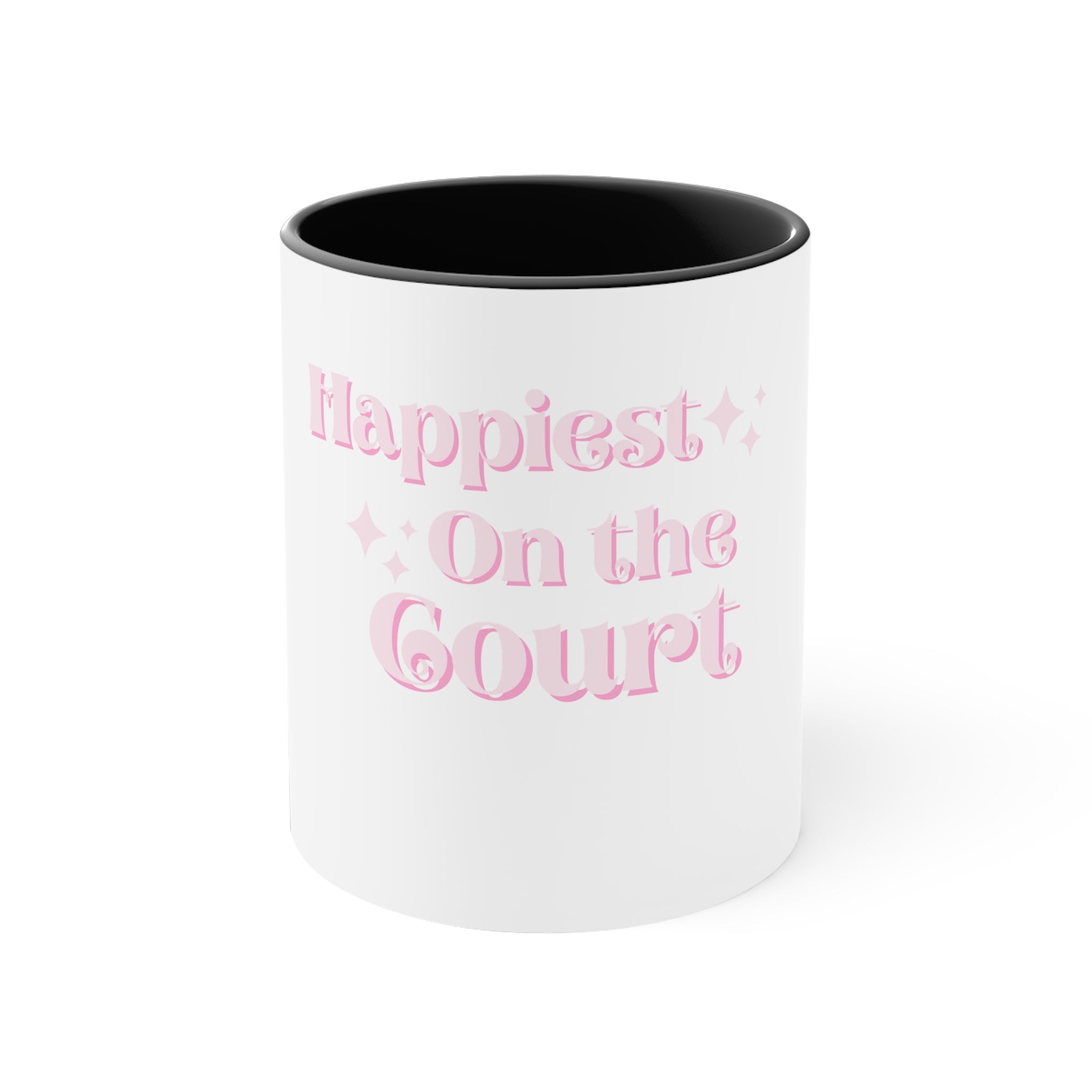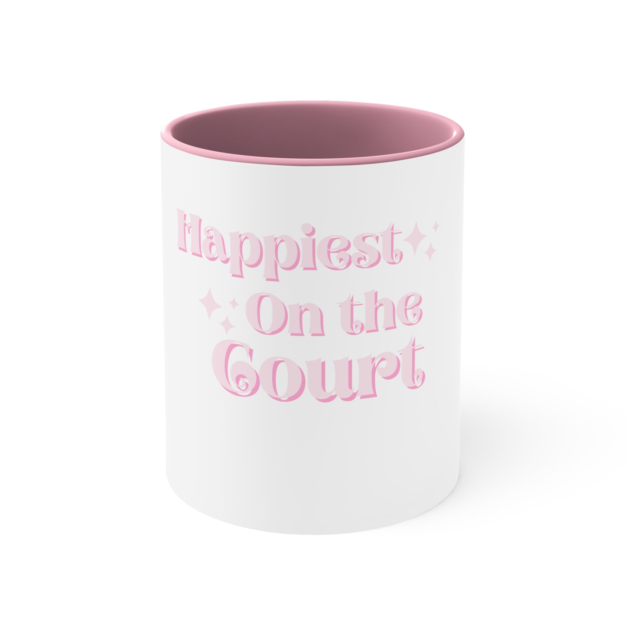 Add some flare to your routine with this two-tone, color accent coffee mug. This 11oz mug features an accented C-Handle that is comfortable to use and an awesome pickleball design sure to make you smile.