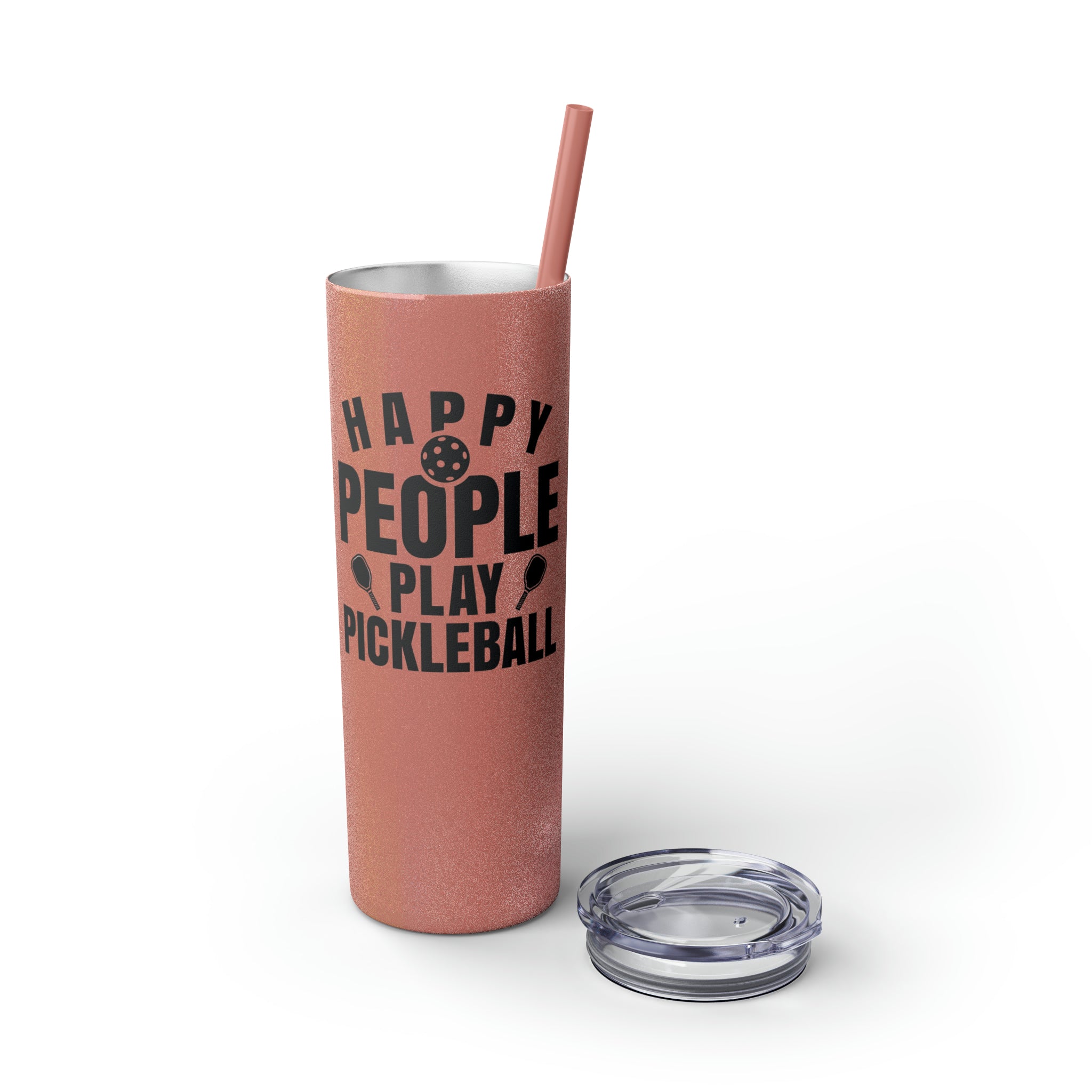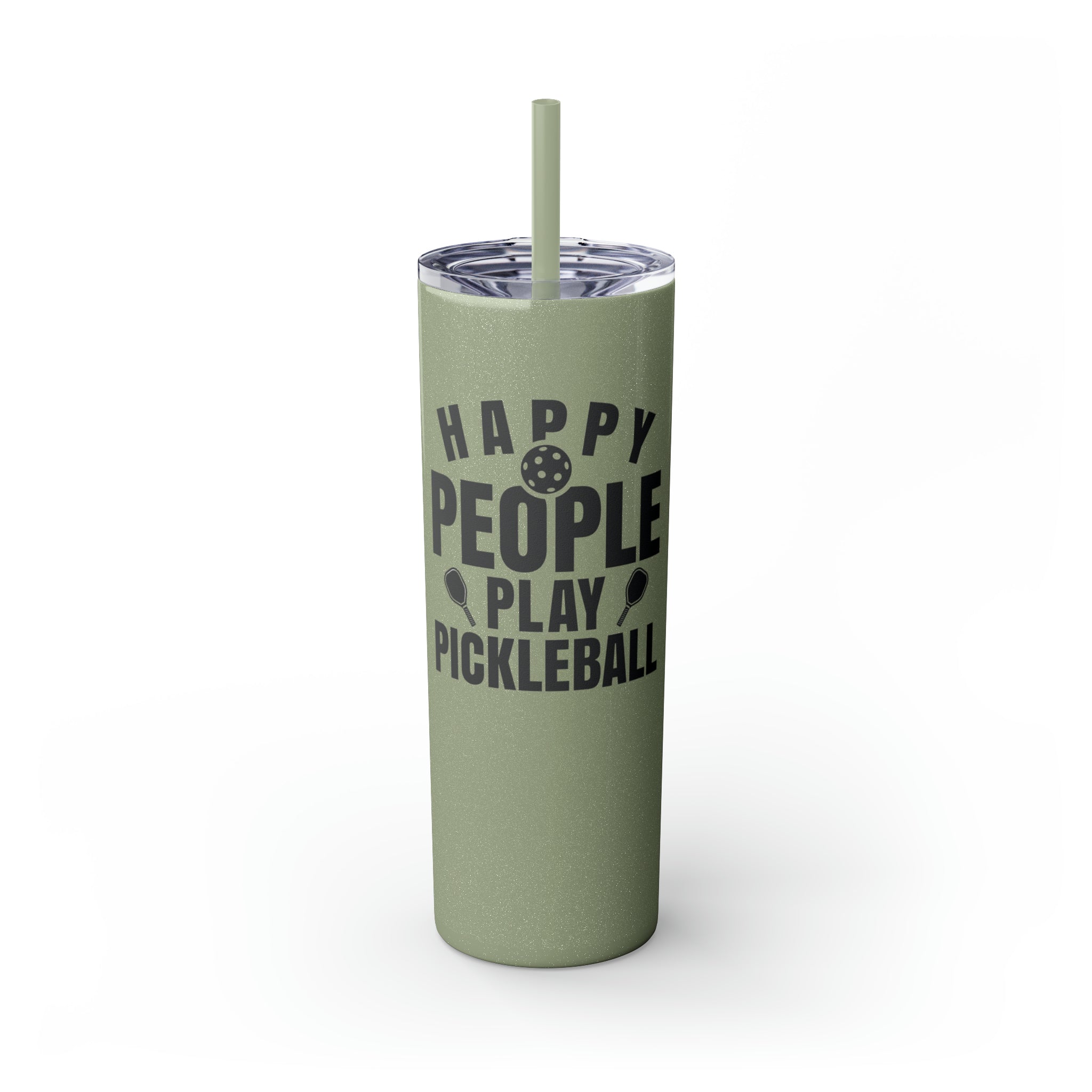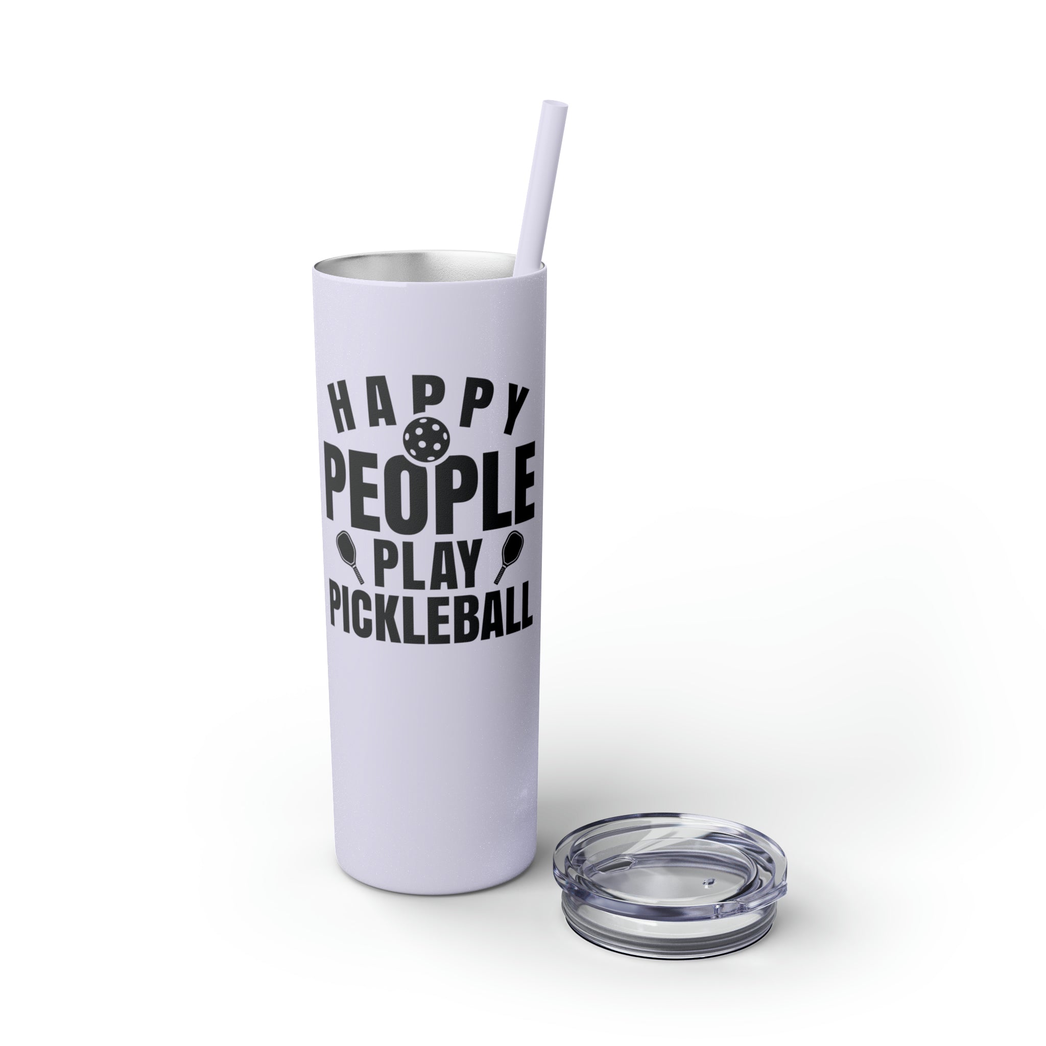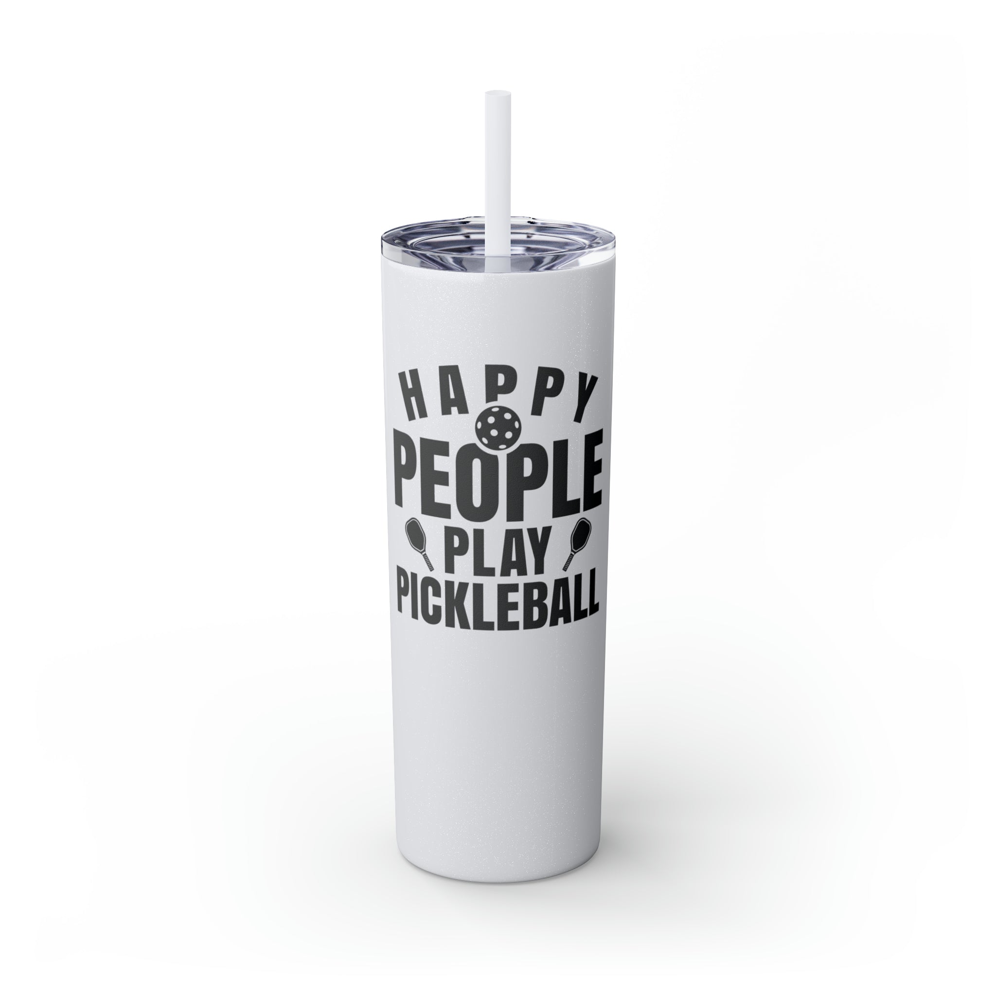 Skinny Tumbler with Straw - Happy People Play Pickleball