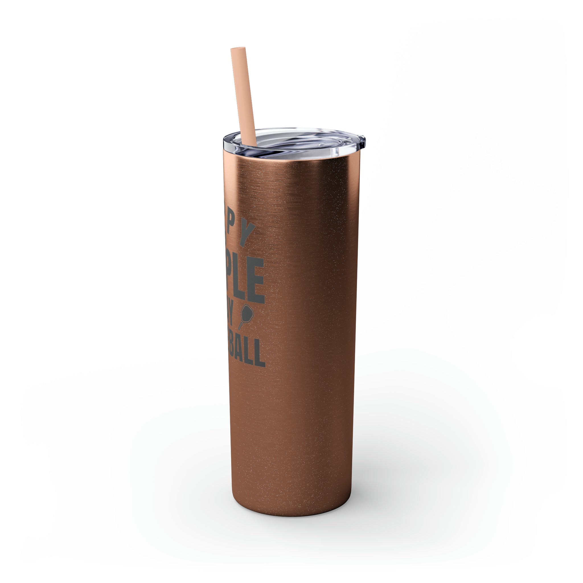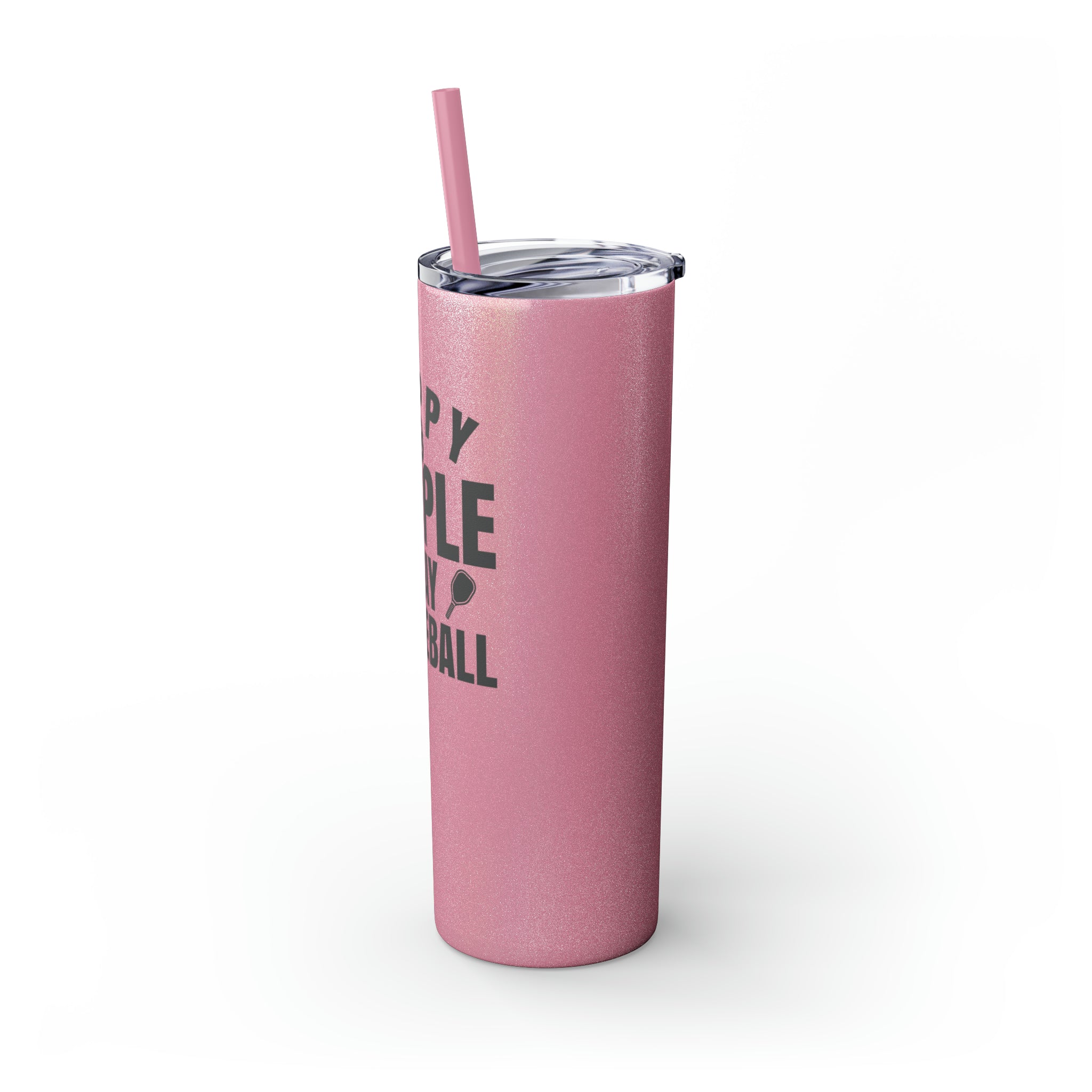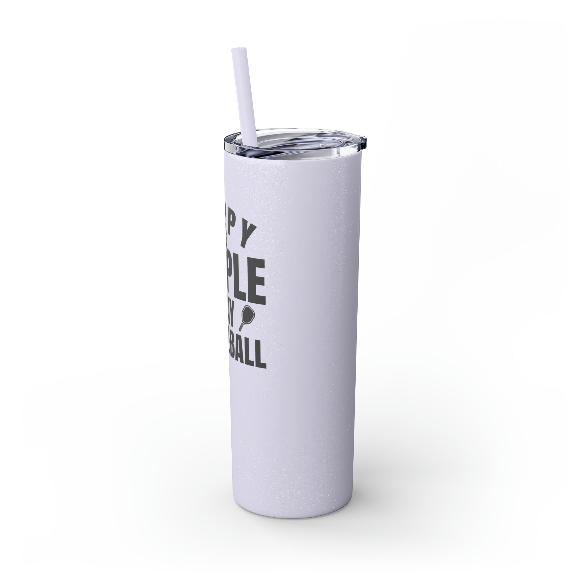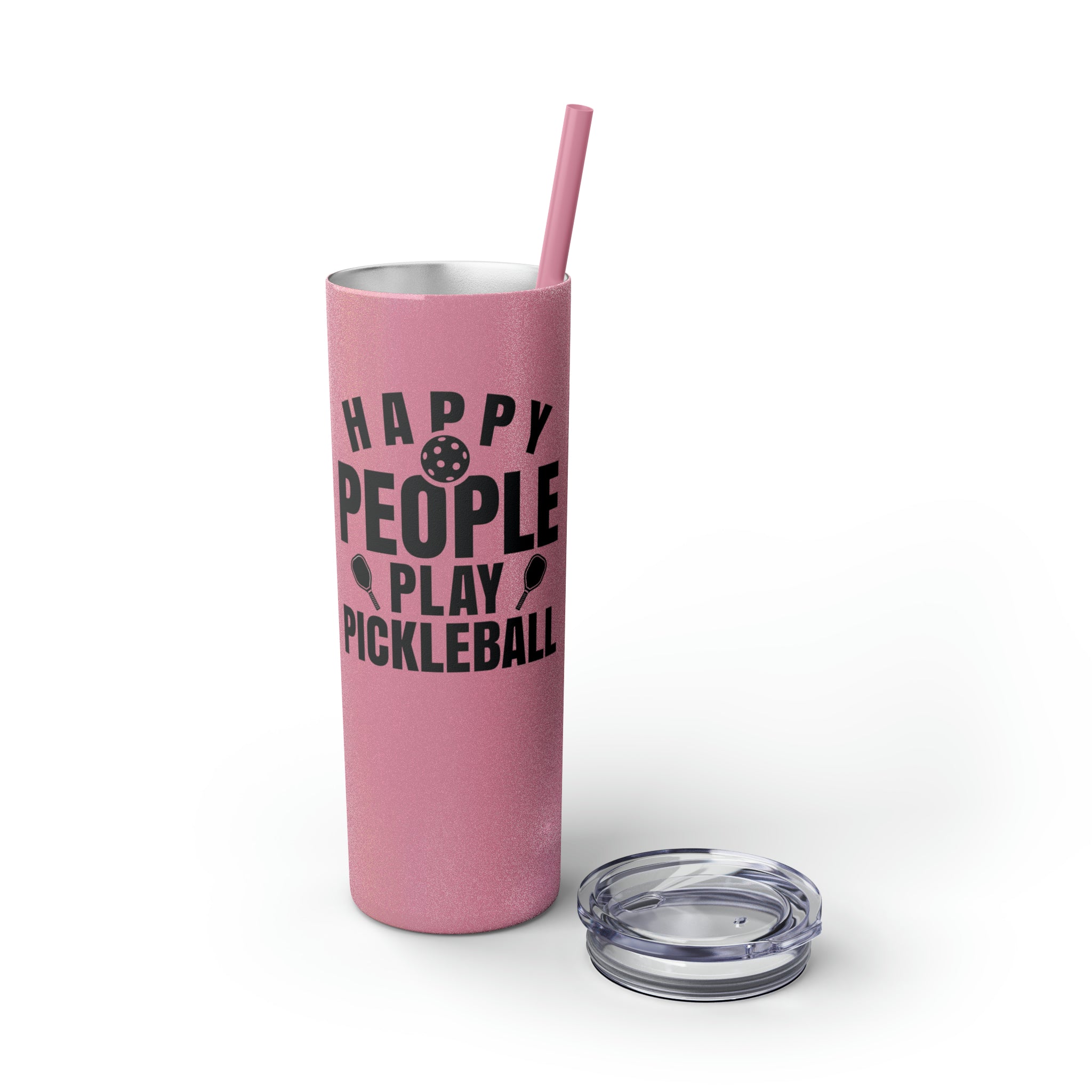 Skinny Tumbler with Straw - Happy People Play Pickleball