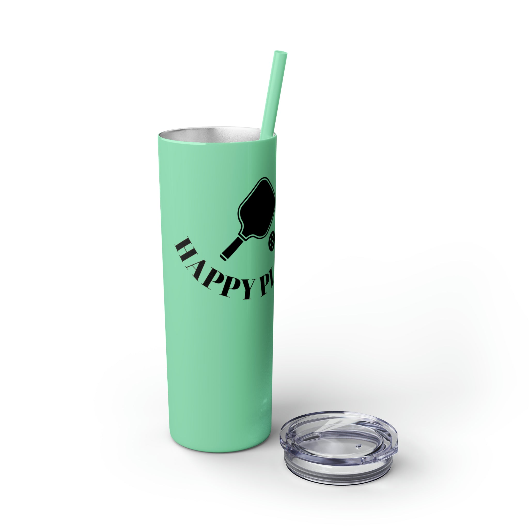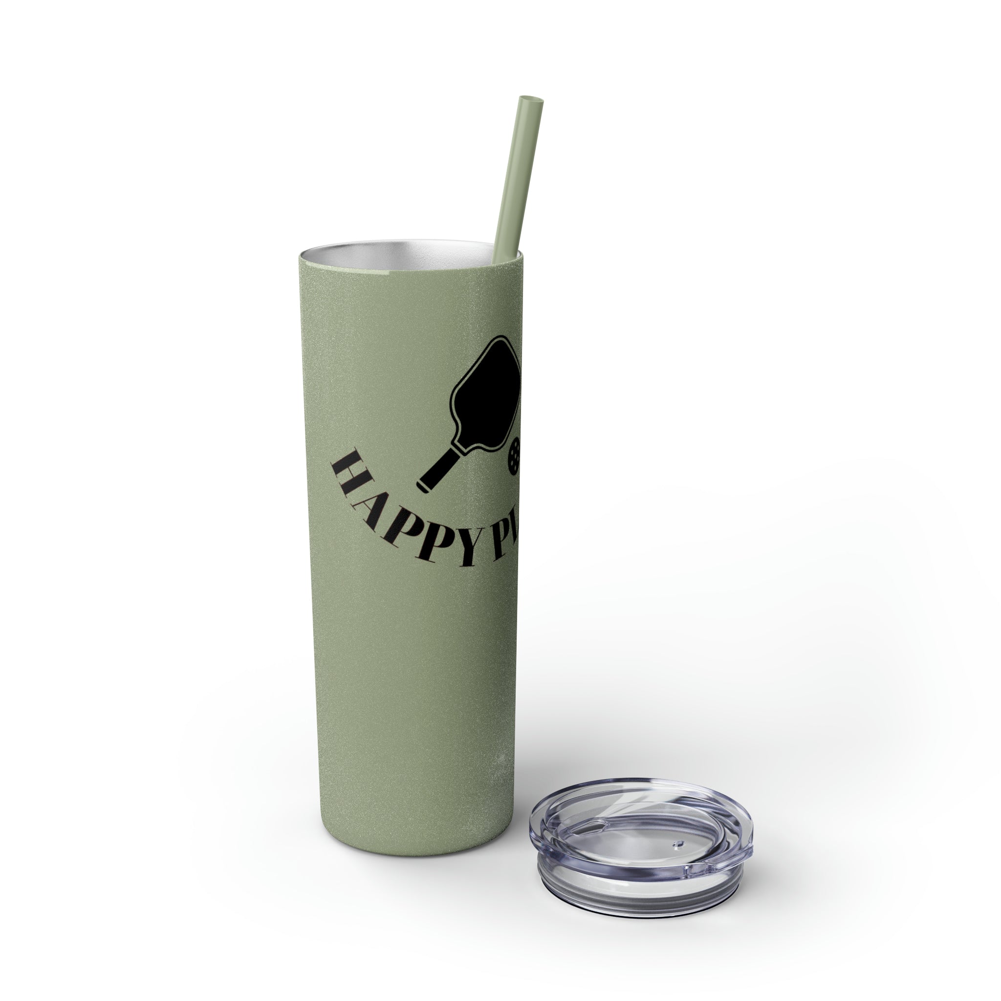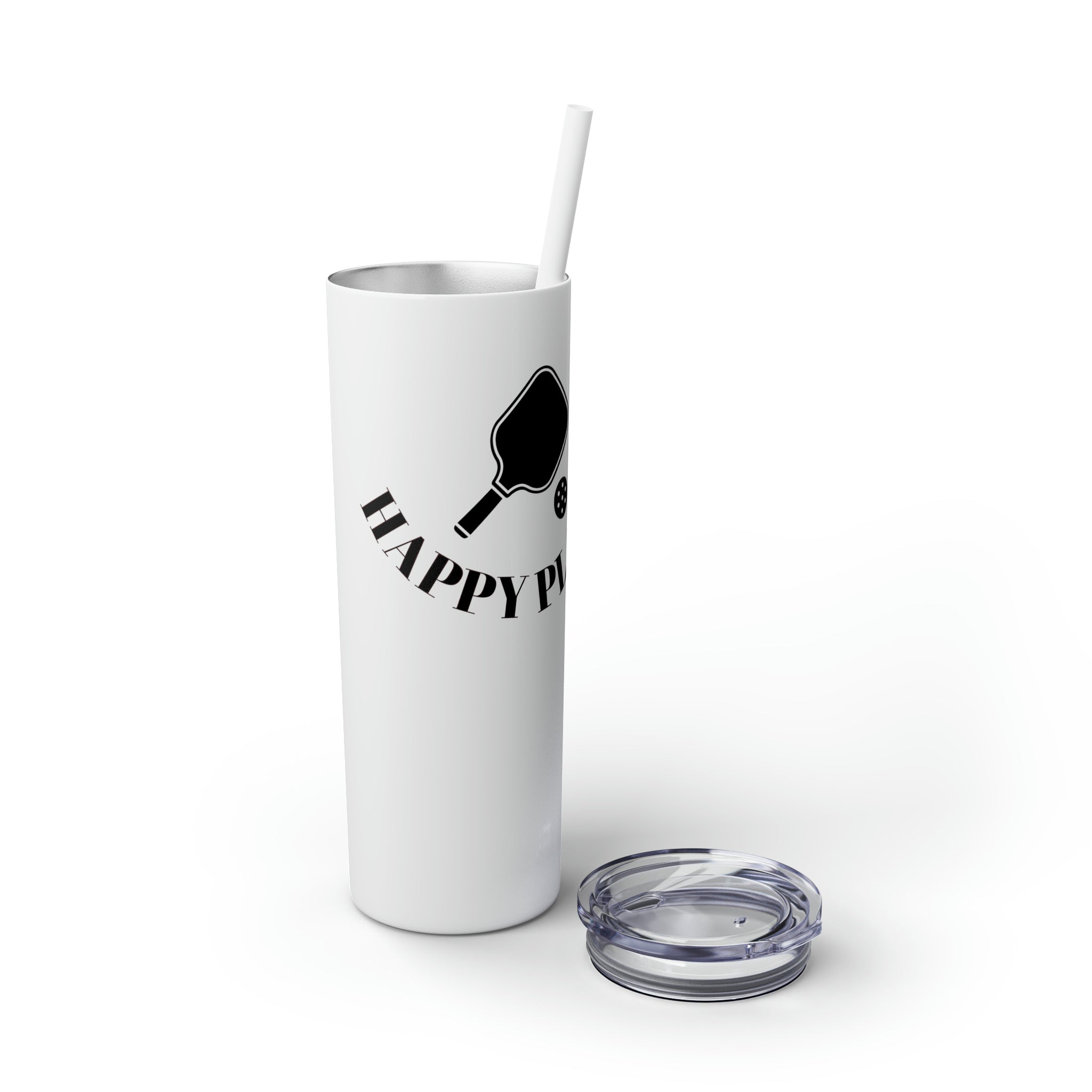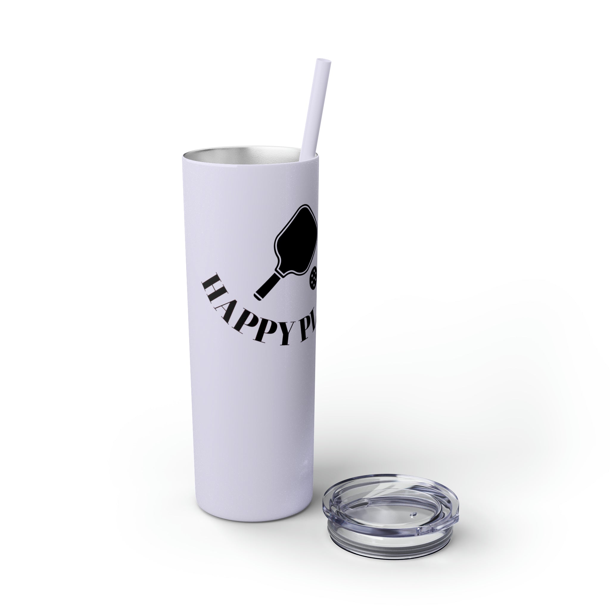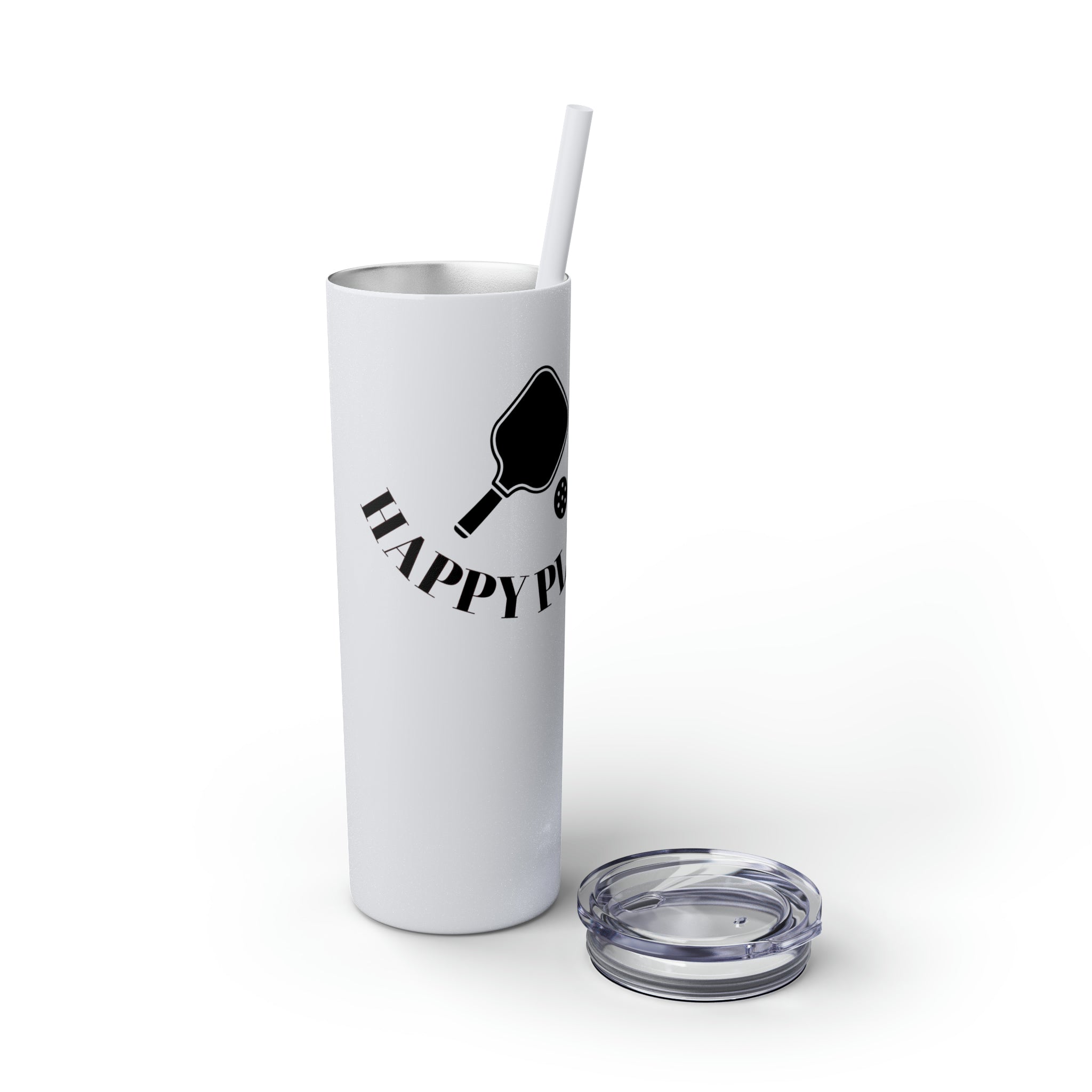 The Maars pickleball skinny tumbler keeps your drinks hot for 12h and cold for 24h, making it the perfect sipping companion all year round. With 20oz capacity, these tumblers come in a matte or glossy finish, and feature a tapered shape with a slim design for effortless carriage. The plastic press-on lid with color-matching straw makes for great practicality on the go. Show off your love of pickleball, in style.
