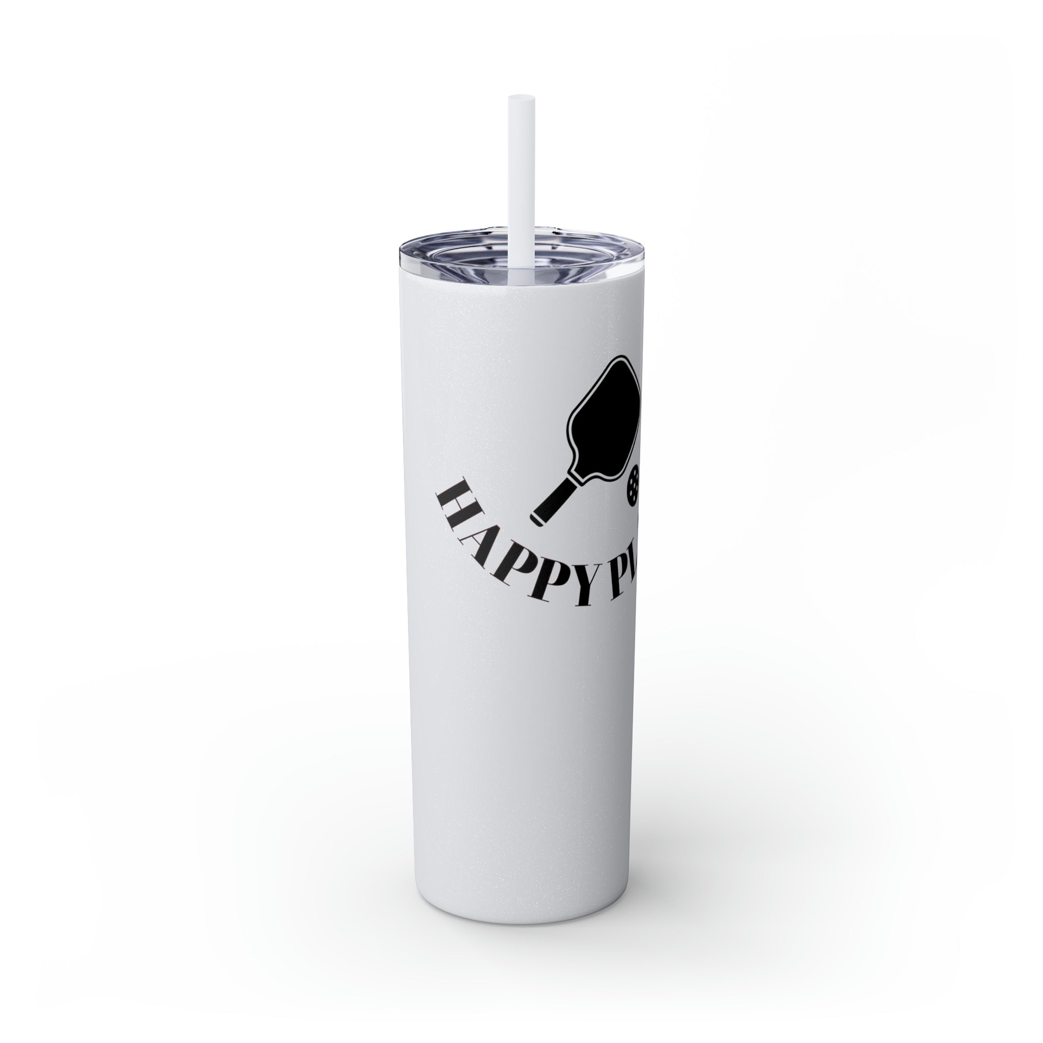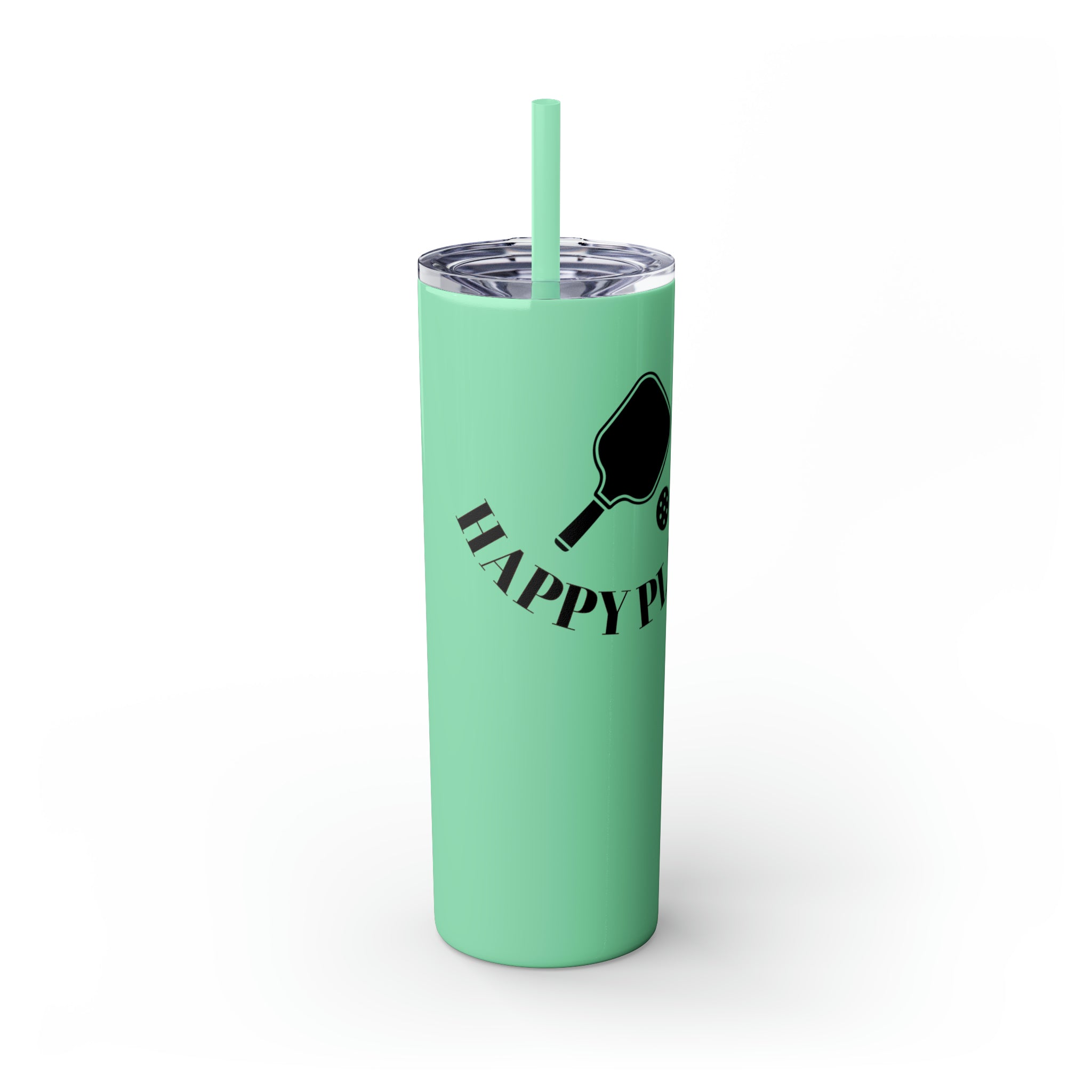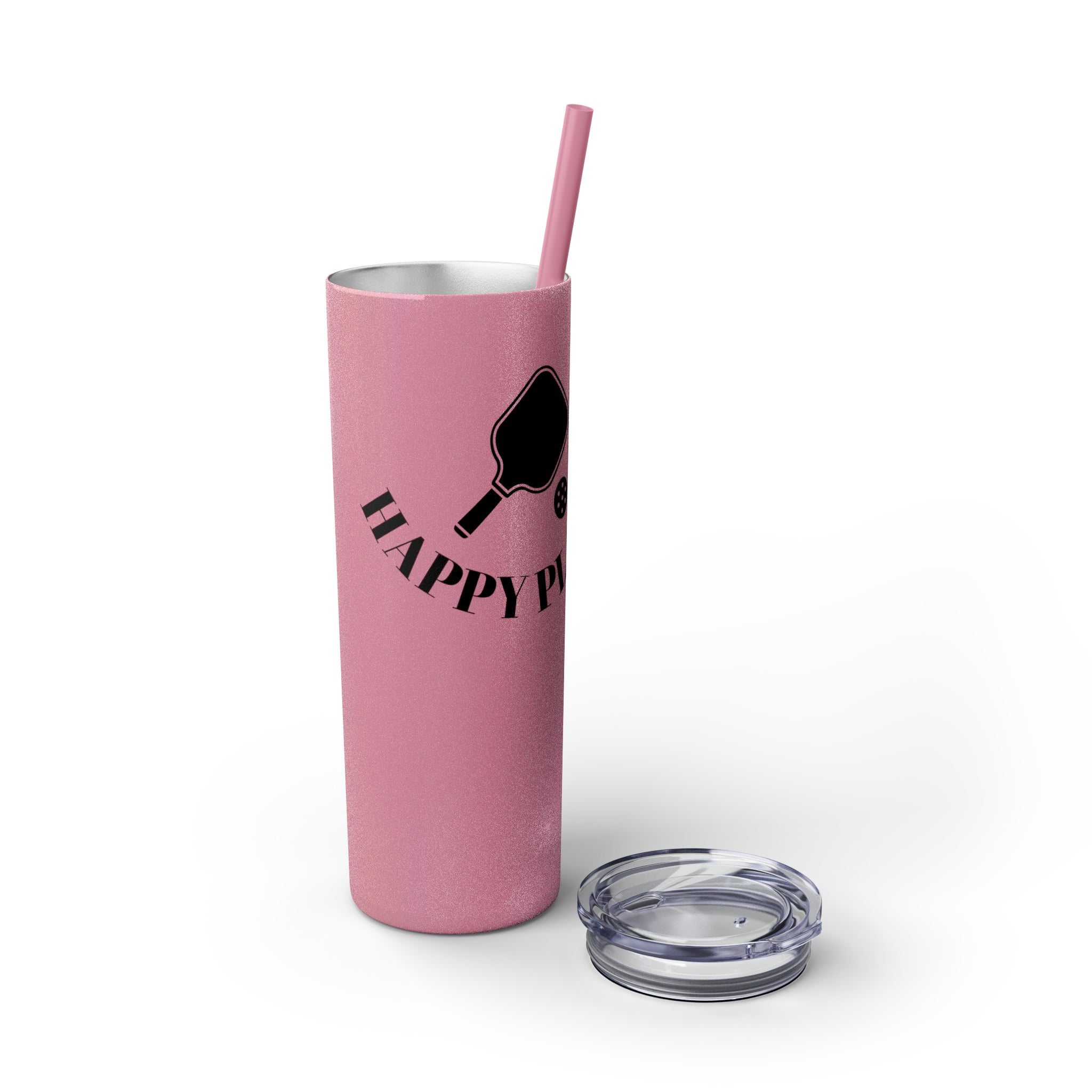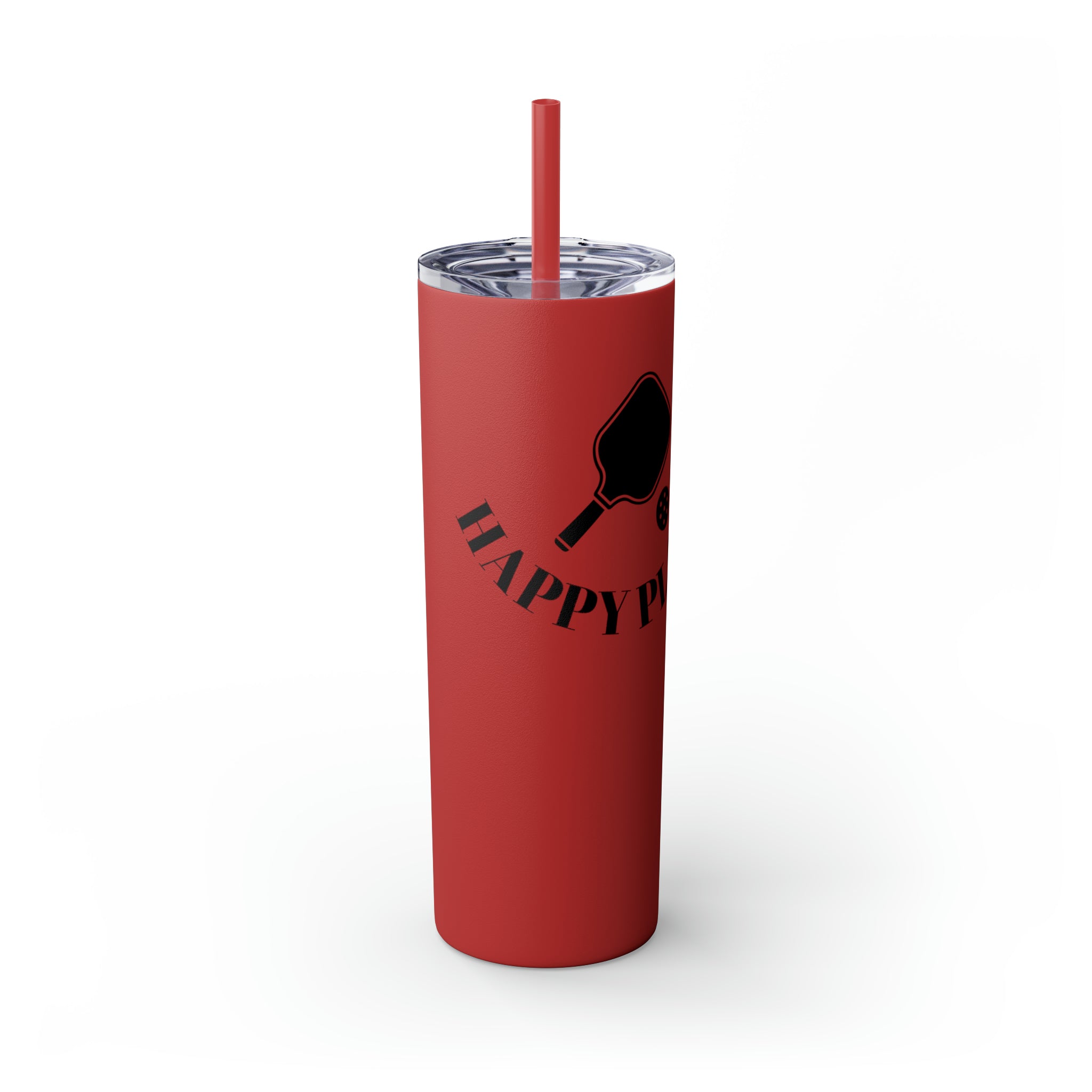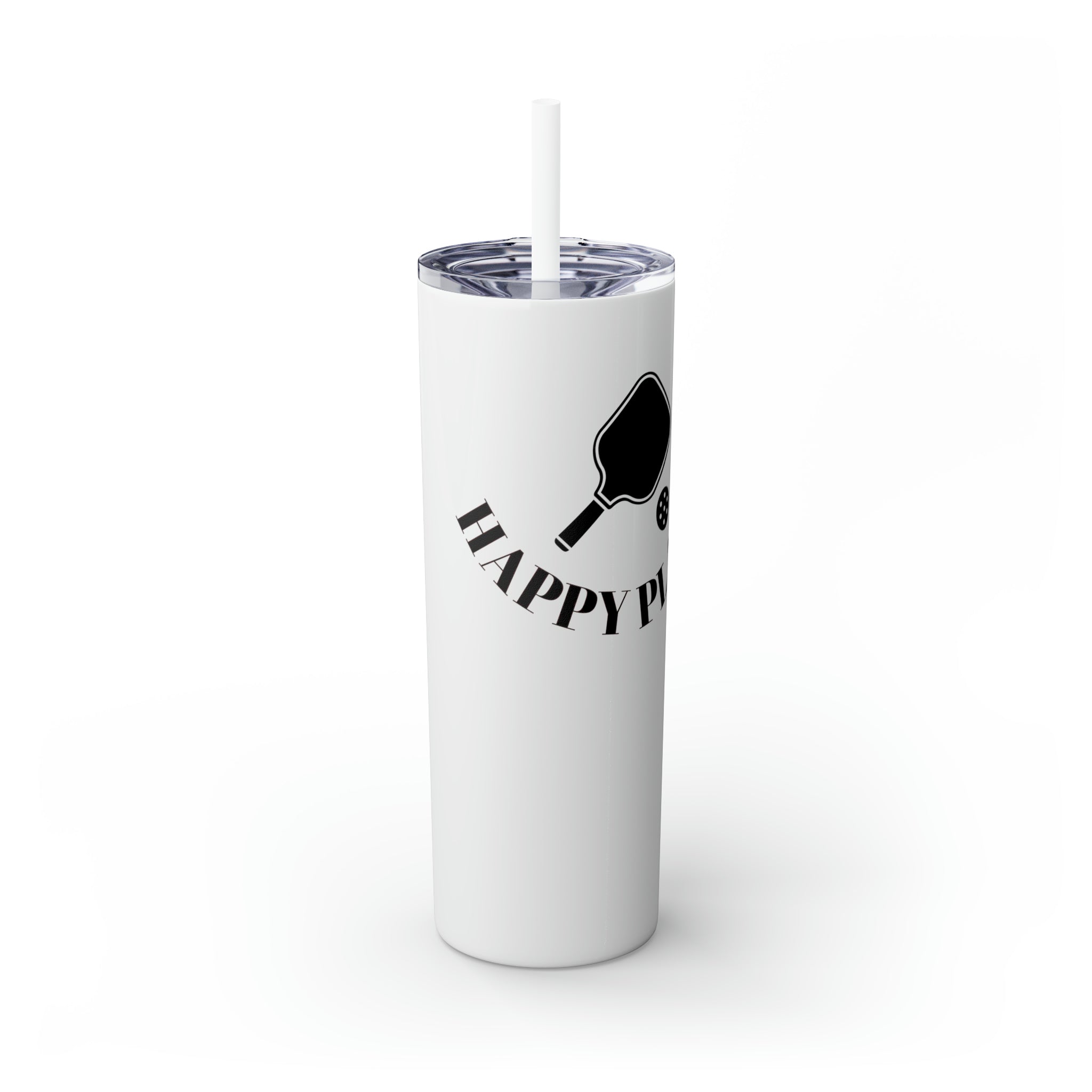 The Maars pickleball skinny tumbler keeps your drinks hot for 12h and cold for 24h, making it the perfect sipping companion all year round. With 20oz capacity, these tumblers come in a matte or glossy finish, and feature a tapered shape with a slim design for effortless carriage. The plastic press-on lid with color-matching straw makes for great practicality on the go. Show off your love of pickleball, in style.