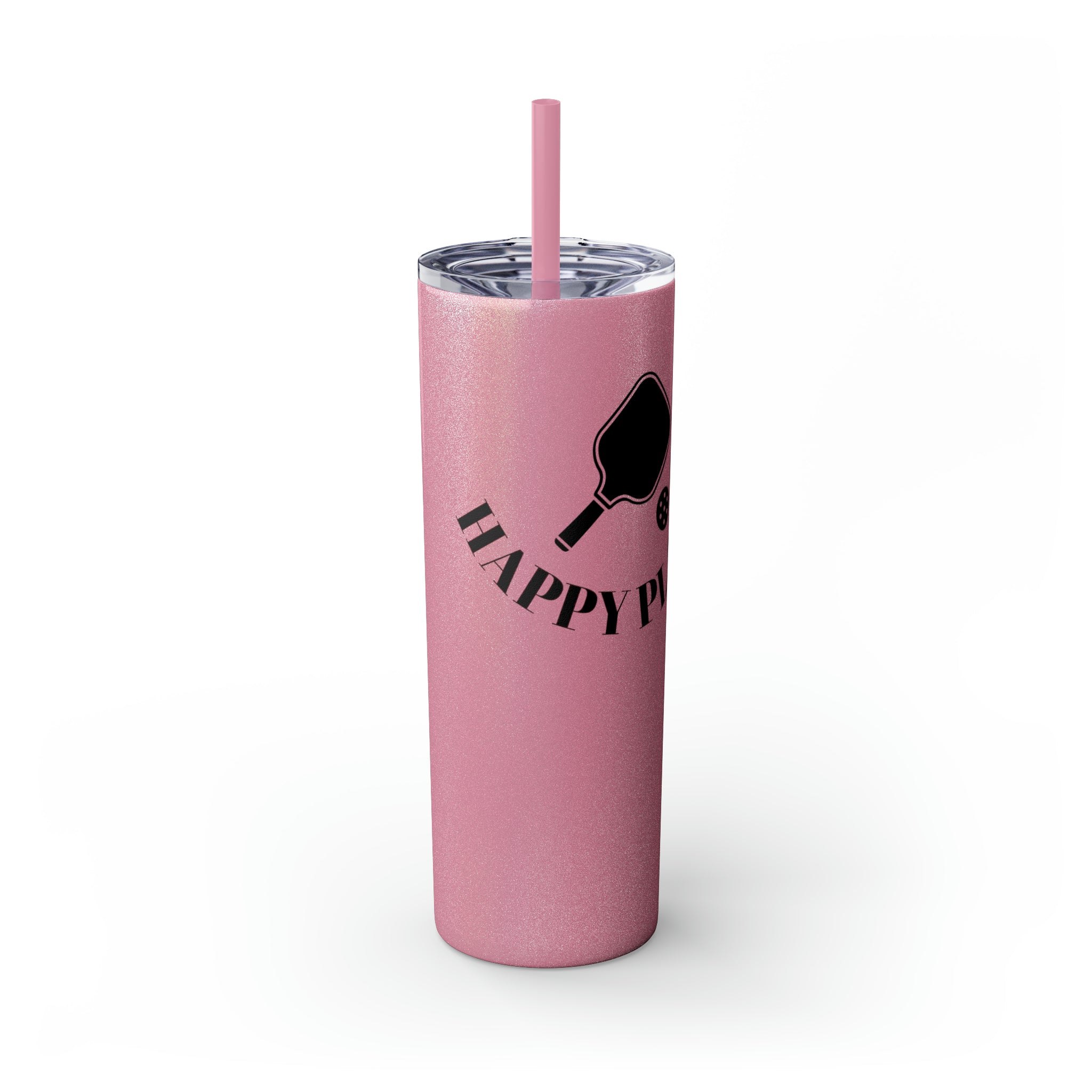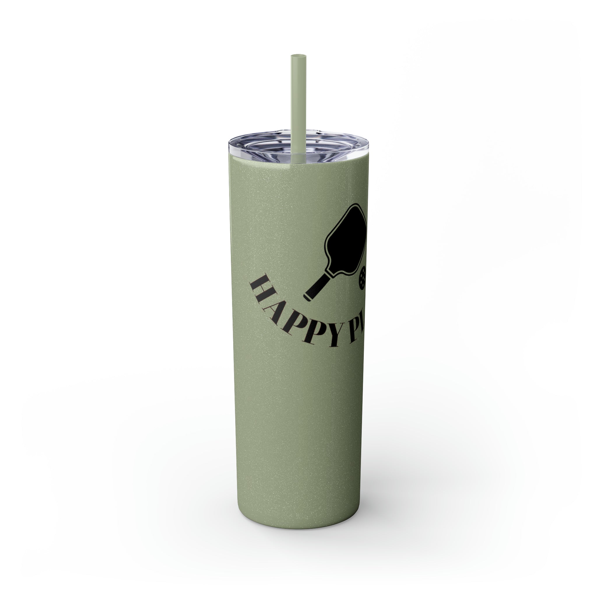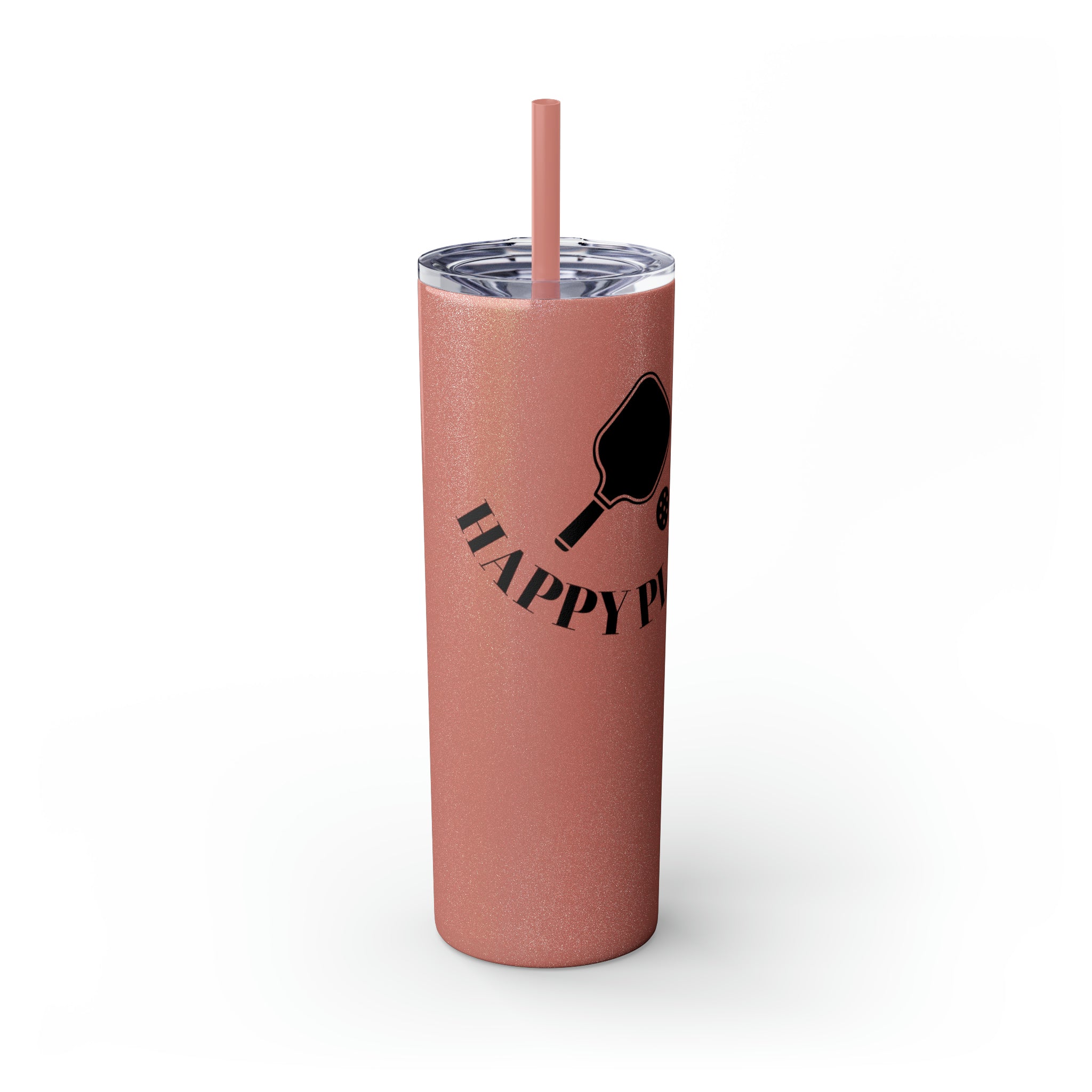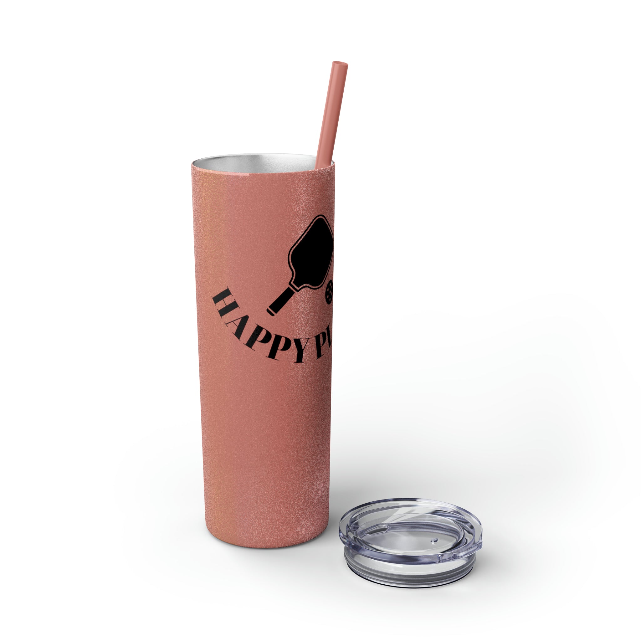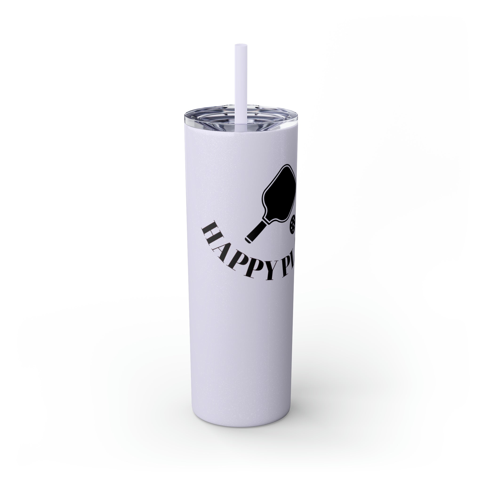 The Maars pickleball skinny tumbler keeps your drinks hot for 12h and cold for 24h, making it the perfect sipping companion all year round. With 20oz capacity, these tumblers come in a matte or glossy finish, and feature a tapered shape with a slim design for effortless carriage. The plastic press-on lid with color-matching straw makes for great practicality on the go. Show off your love of pickleball, in style.
