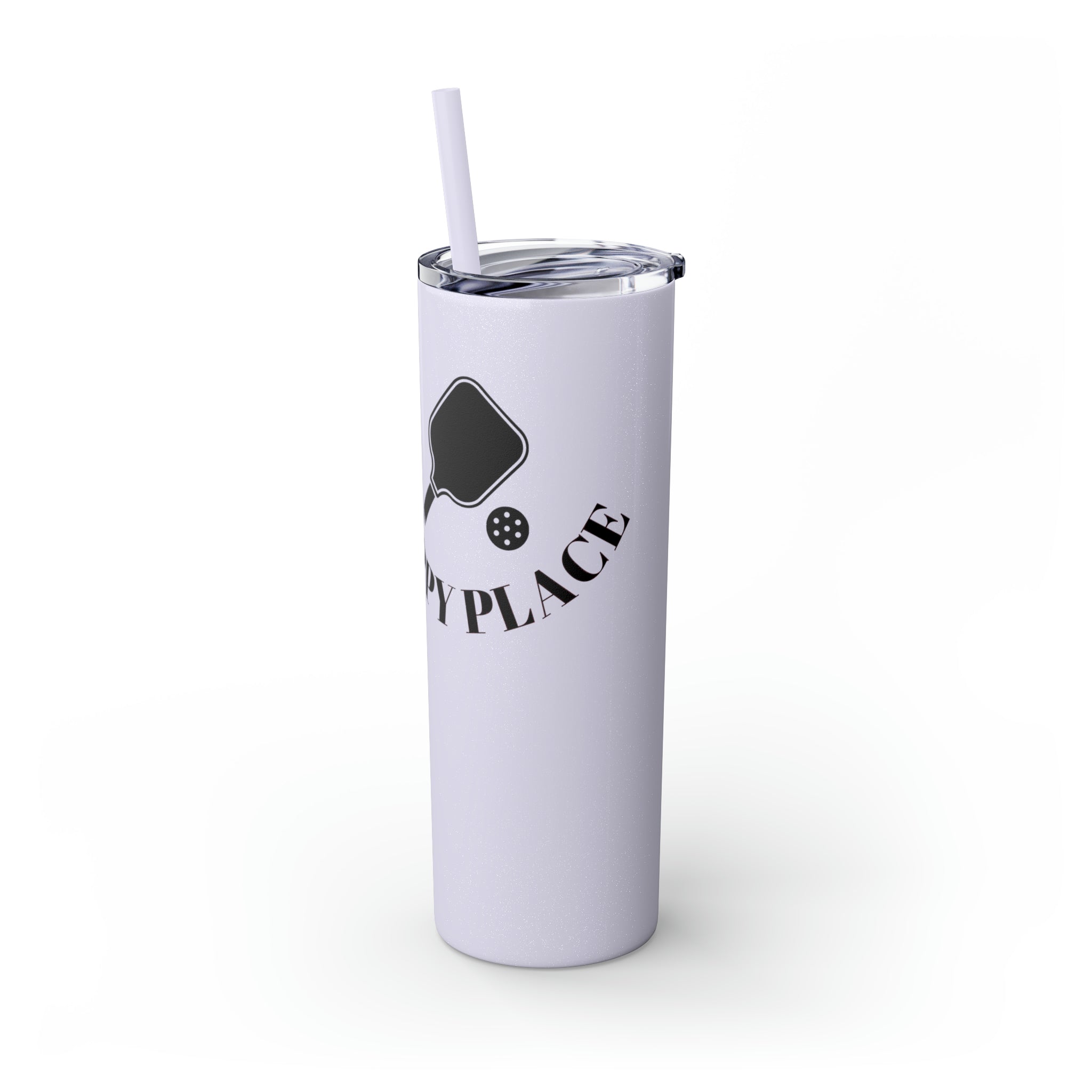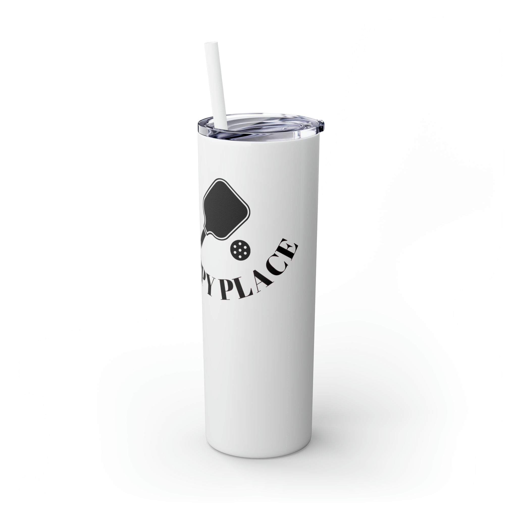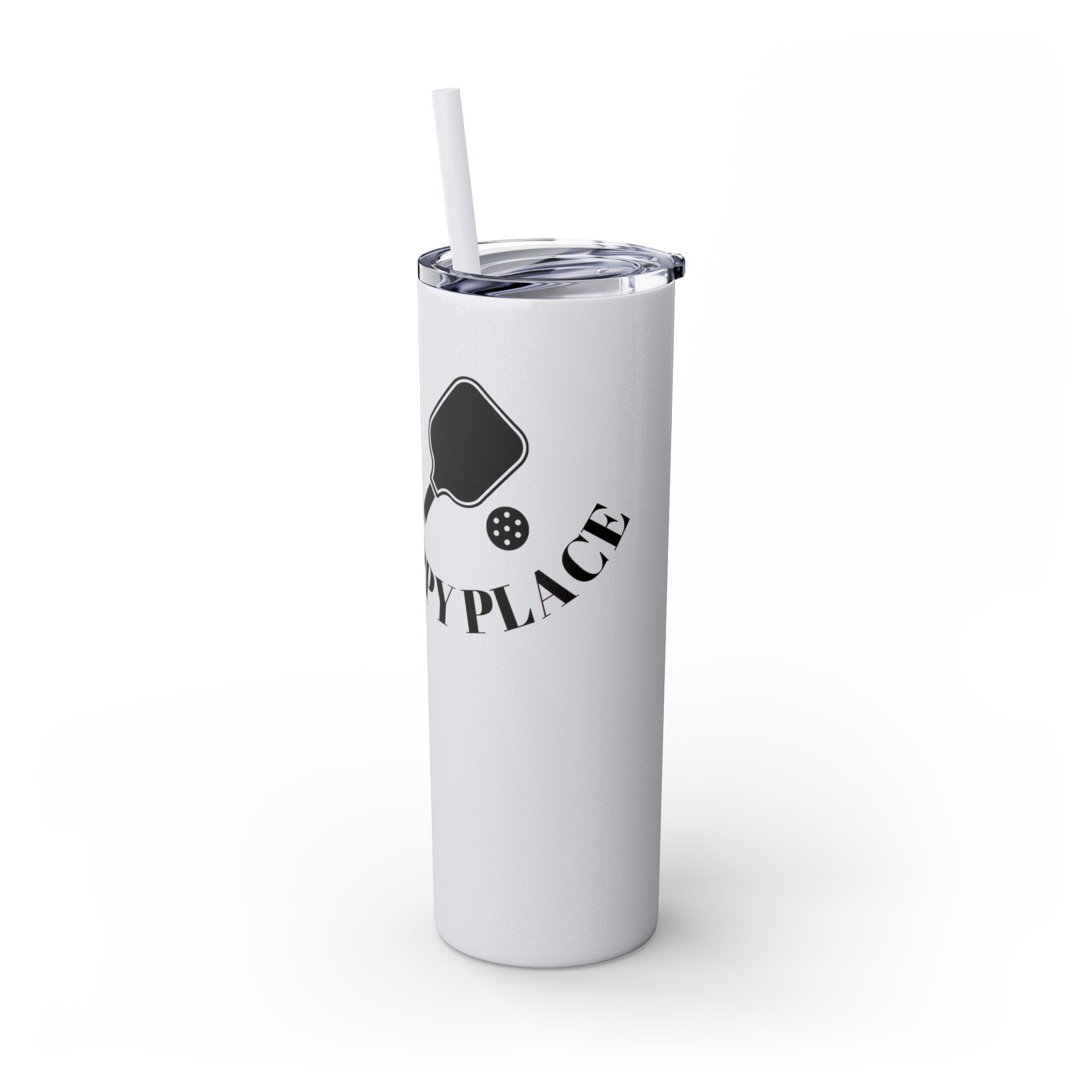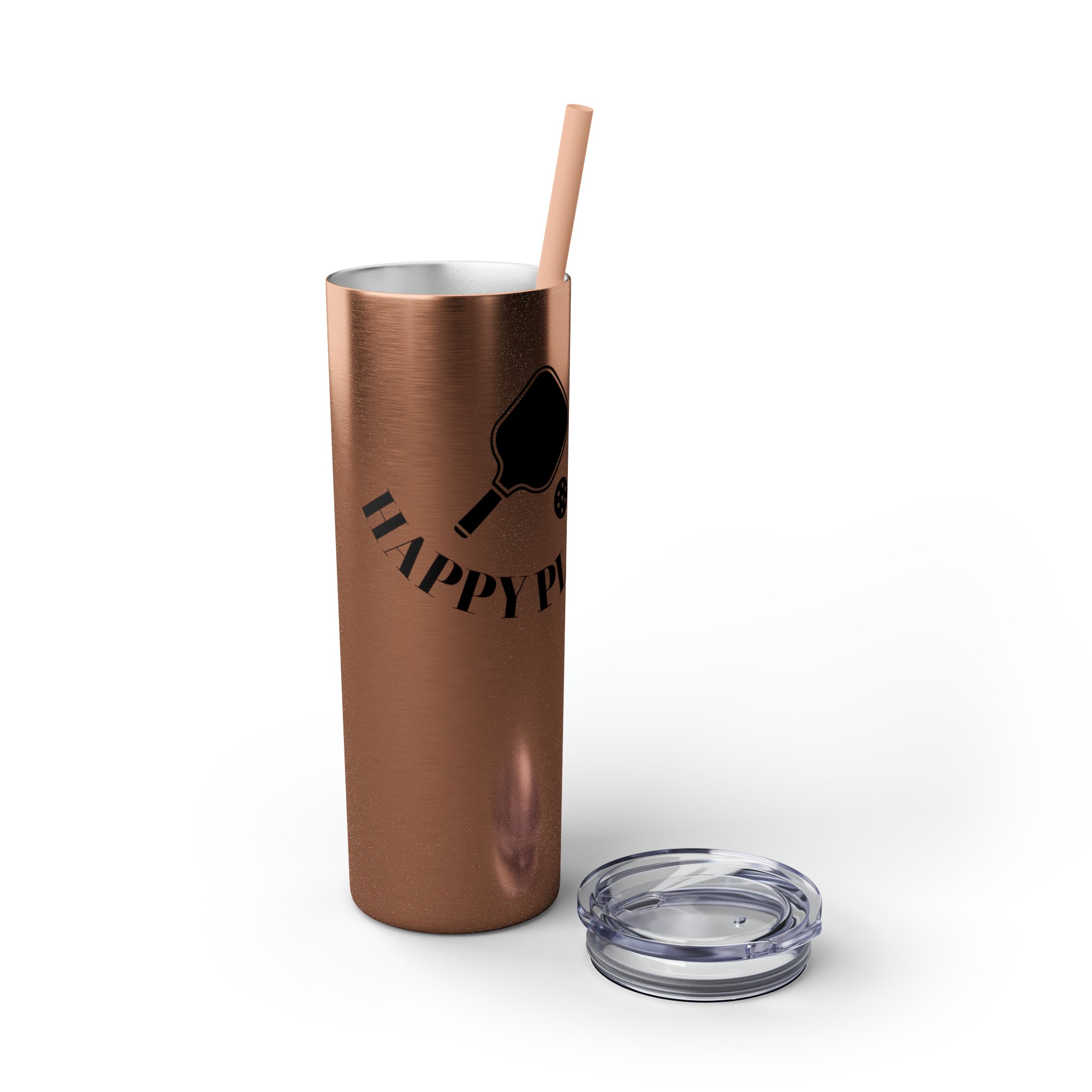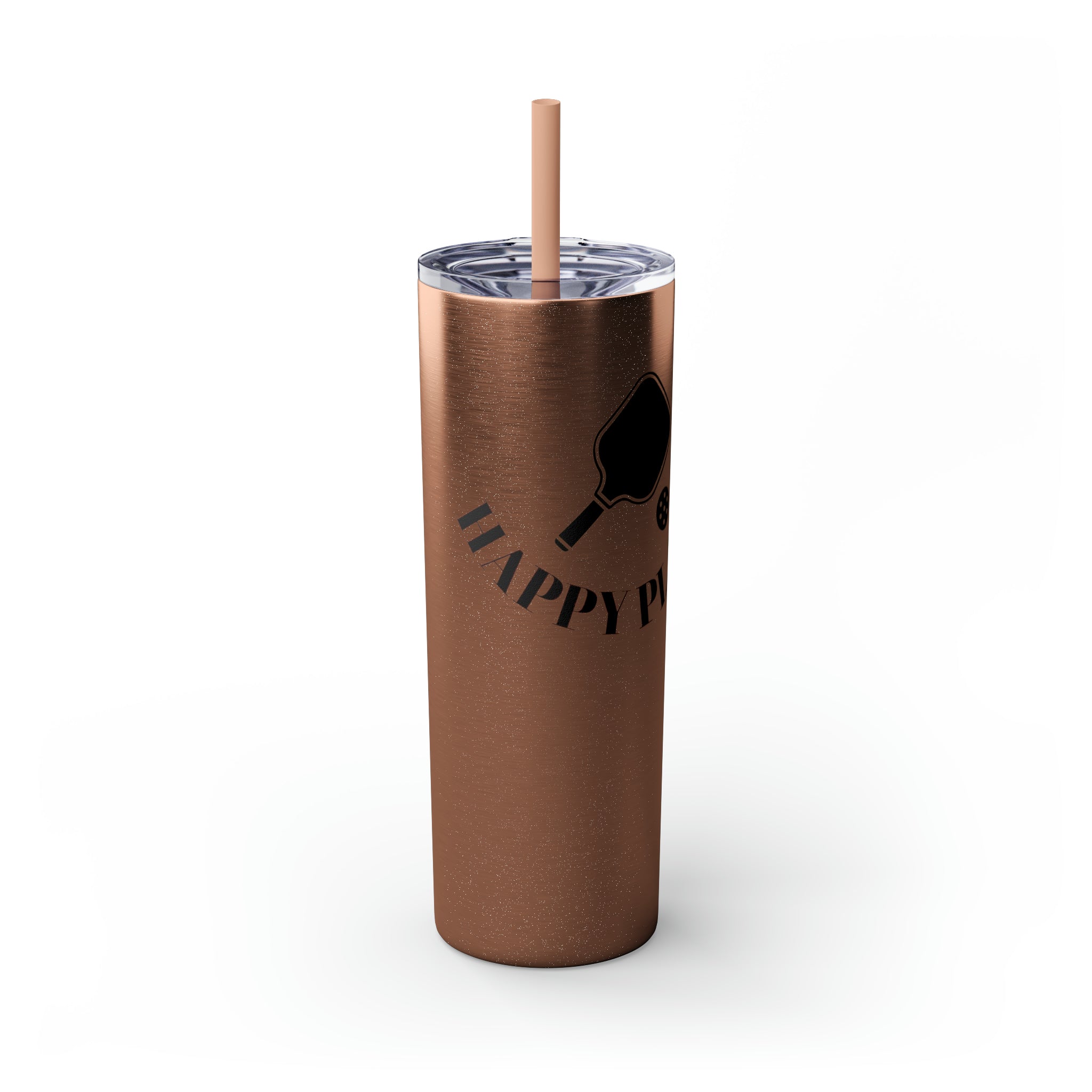 The Maars pickleball skinny tumbler keeps your drinks hot for 12h and cold for 24h, making it the perfect sipping companion all year round. With 20oz capacity, these tumblers come in a matte or glossy finish, and feature a tapered shape with a slim design for effortless carriage. The plastic press-on lid with color-matching straw makes for great practicality on the go. Show off your love of pickleball, in style.