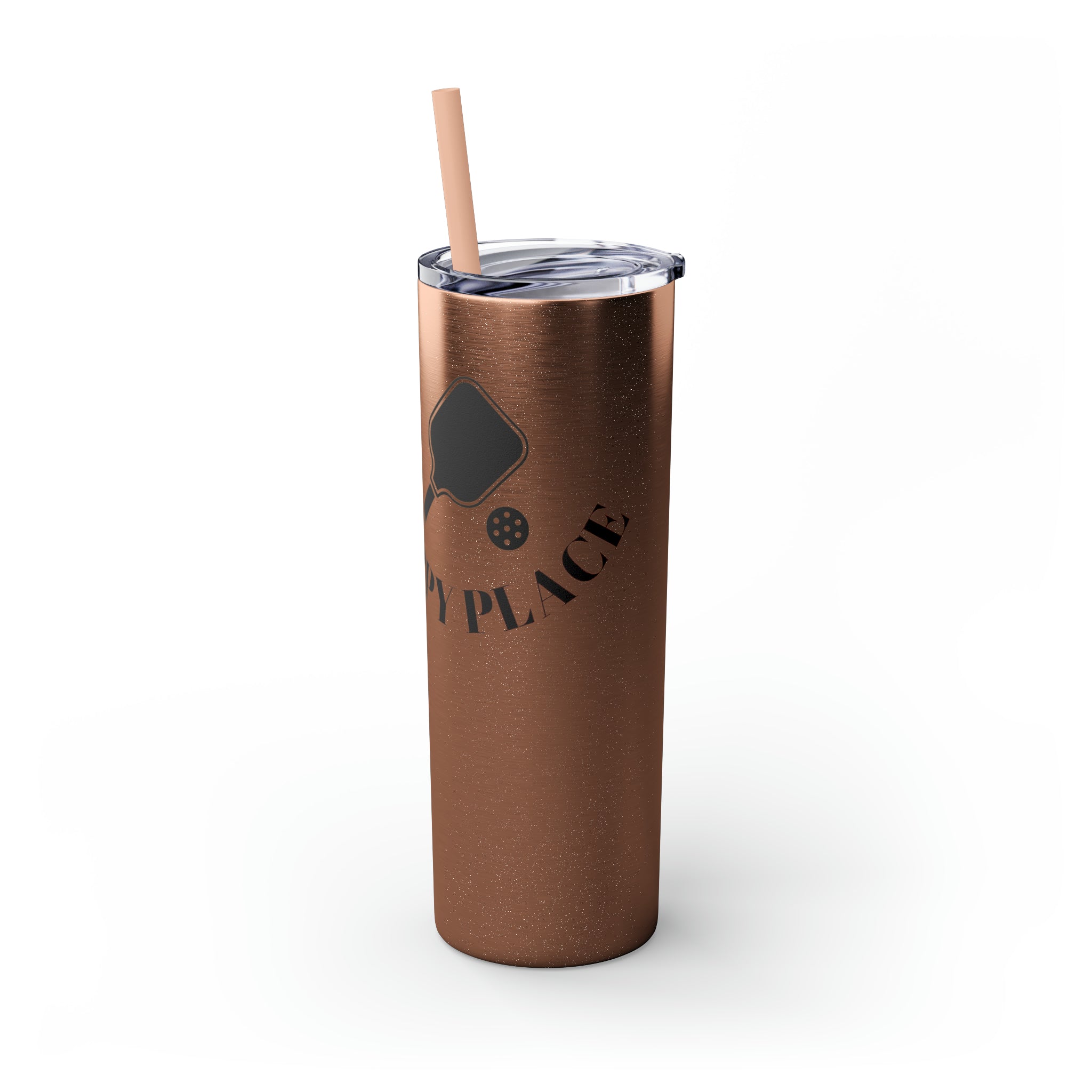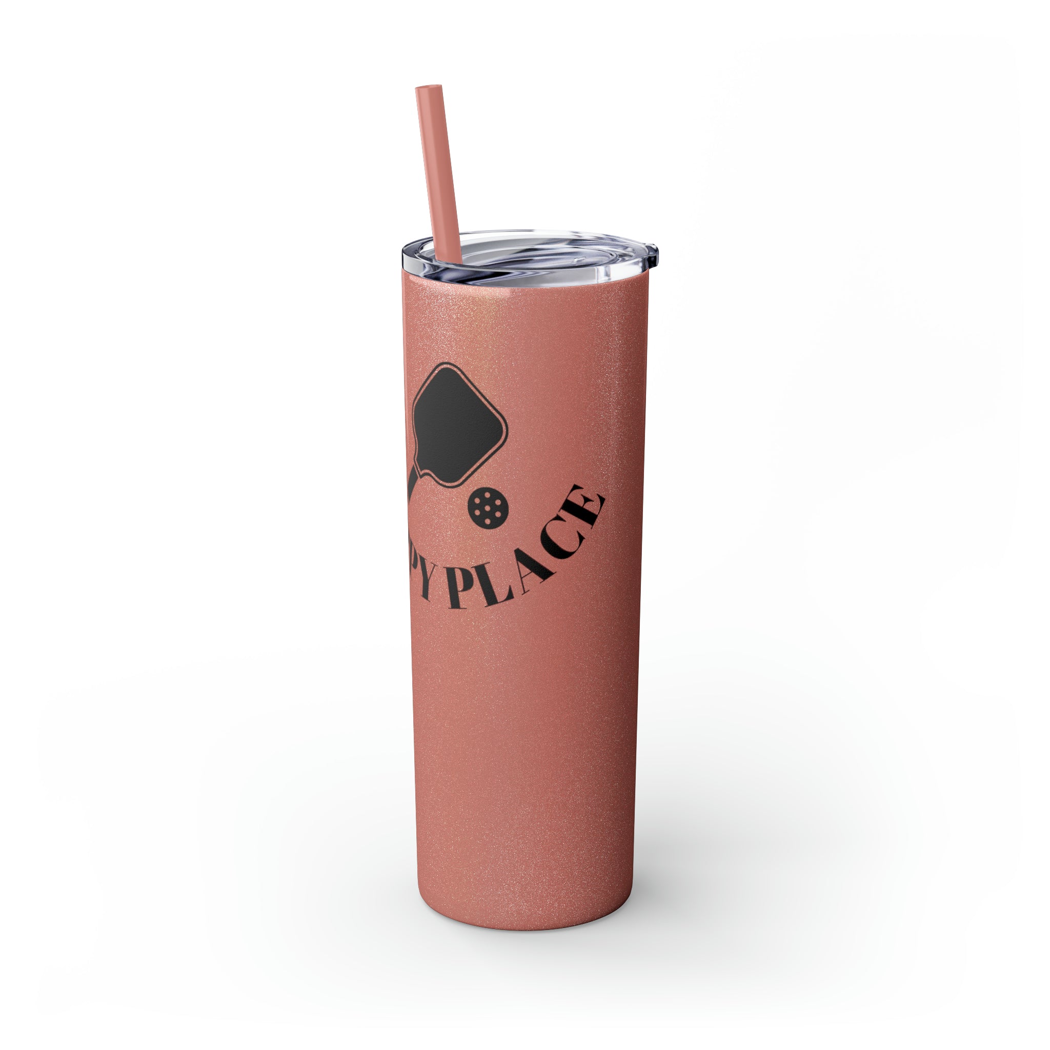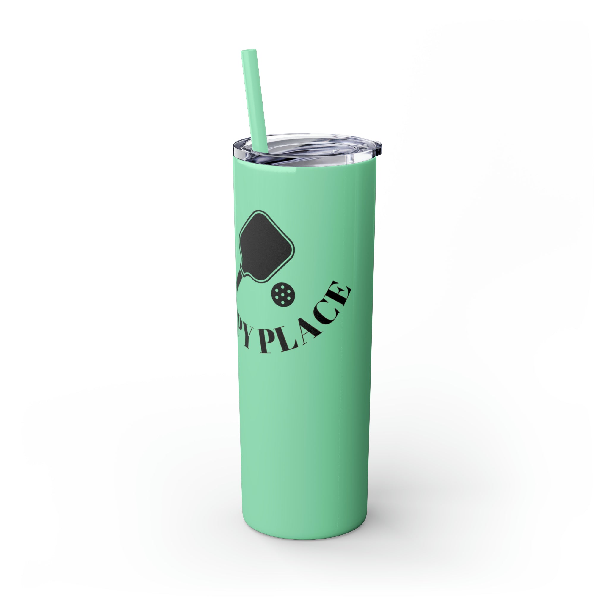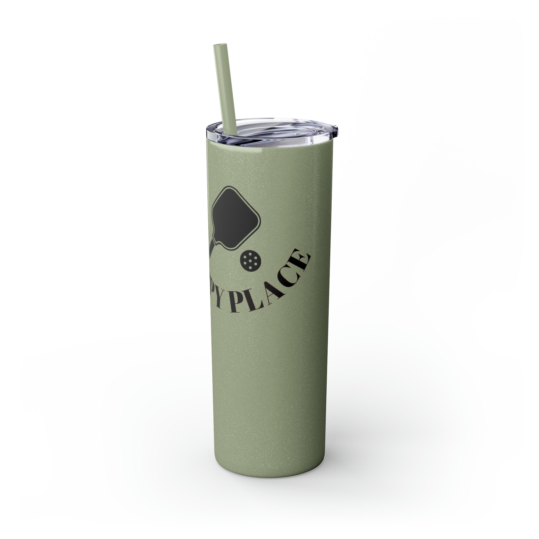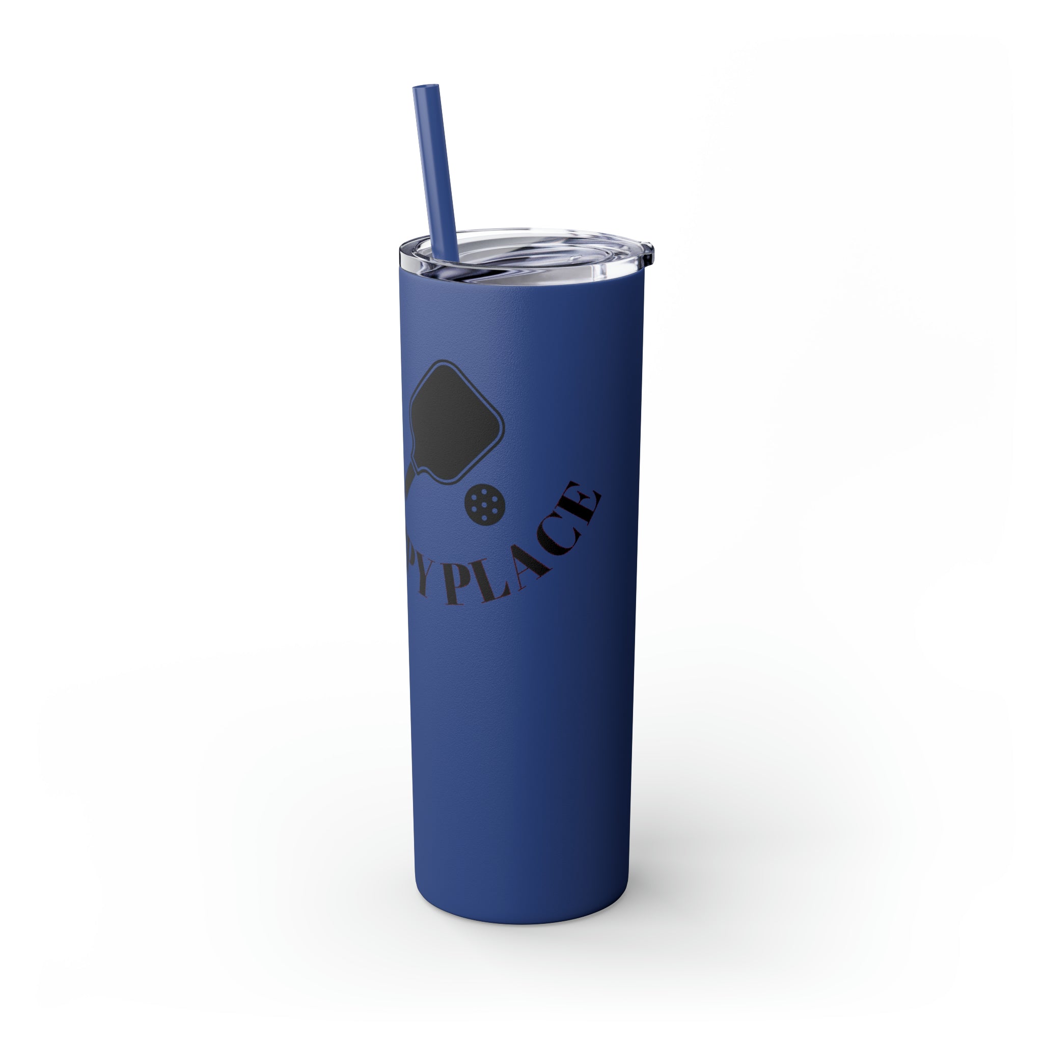 The Maars pickleball skinny tumbler keeps your drinks hot for 12h and cold for 24h, making it the perfect sipping companion all year round. With 20oz capacity, these tumblers come in a matte or glossy finish, and feature a tapered shape with a slim design for effortless carriage. The plastic press-on lid with color-matching straw makes for great practicality on the go. Show off your love of pickleball, in style.