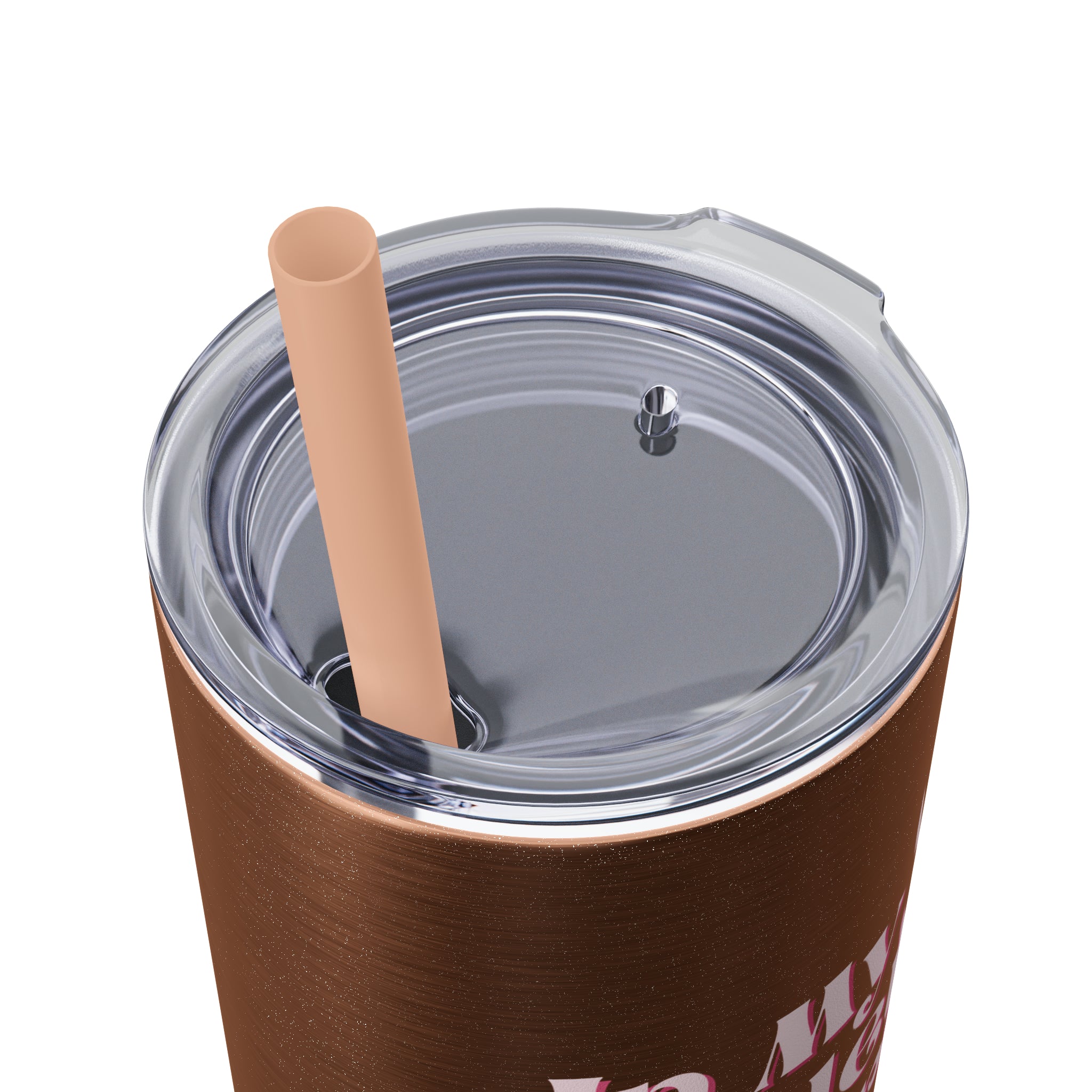 - Stainless steel cup with plastic press-on lid with color-matching straw