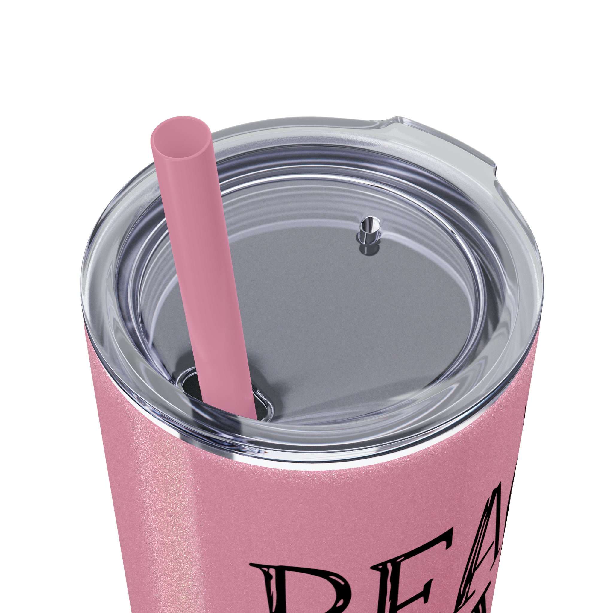 The Maars pickleball skinny tumbler keeps your drinks hot for 12h and cold for 24h, making it the perfect sipping companion all year round. With 20oz capacity, these tumblers come in a matte or glossy finish, and feature a tapered shape with a slim design for effortless carriage. The plastic press-on lid with color-matching straw makes for great practicality on the go. Show off your love of pickleball, in style.