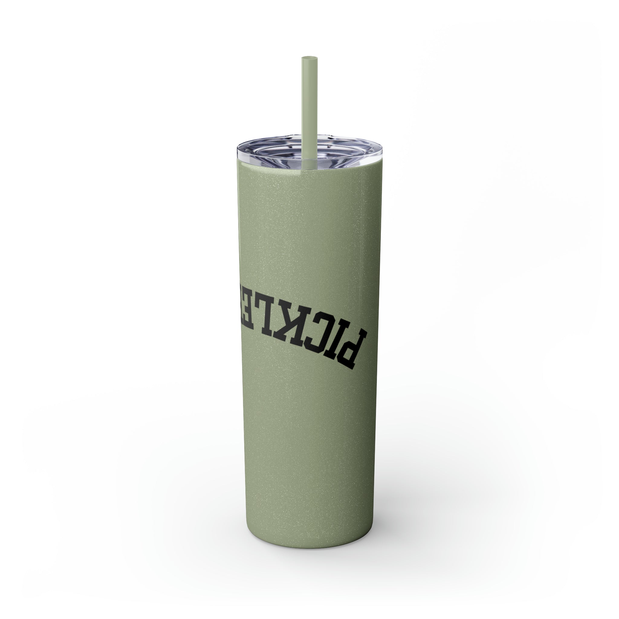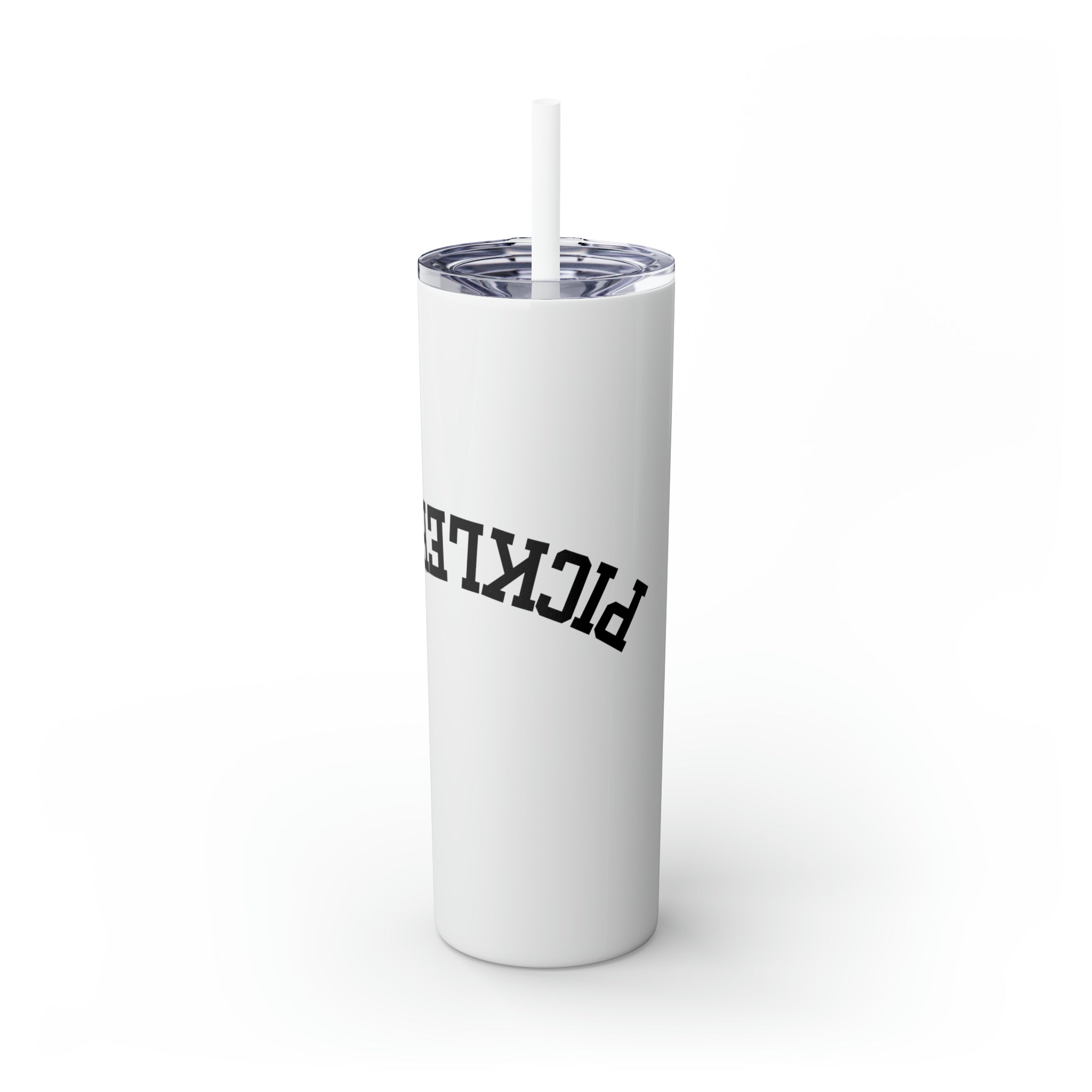Skinny Tumbler with Straw - Upside Down Pickleball
