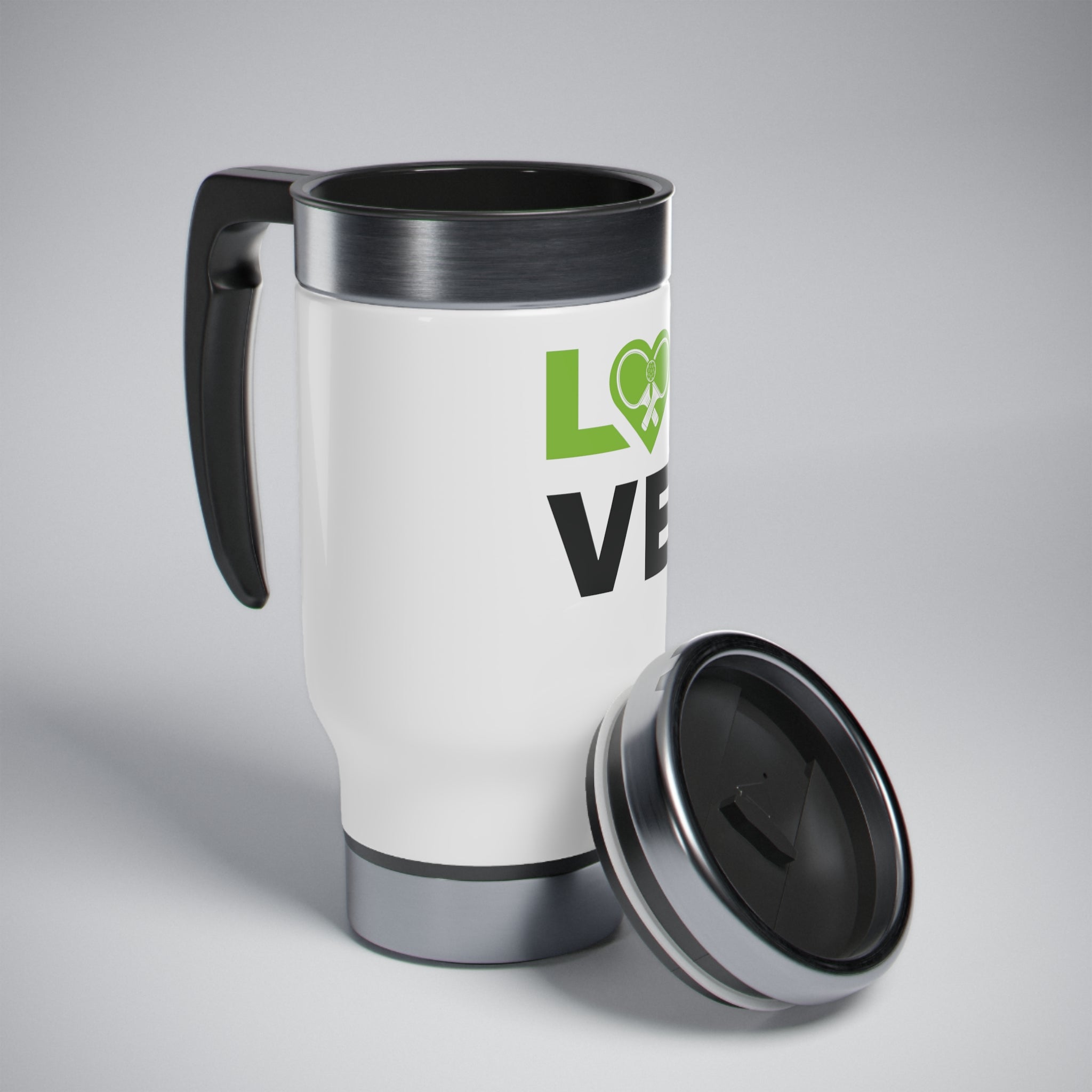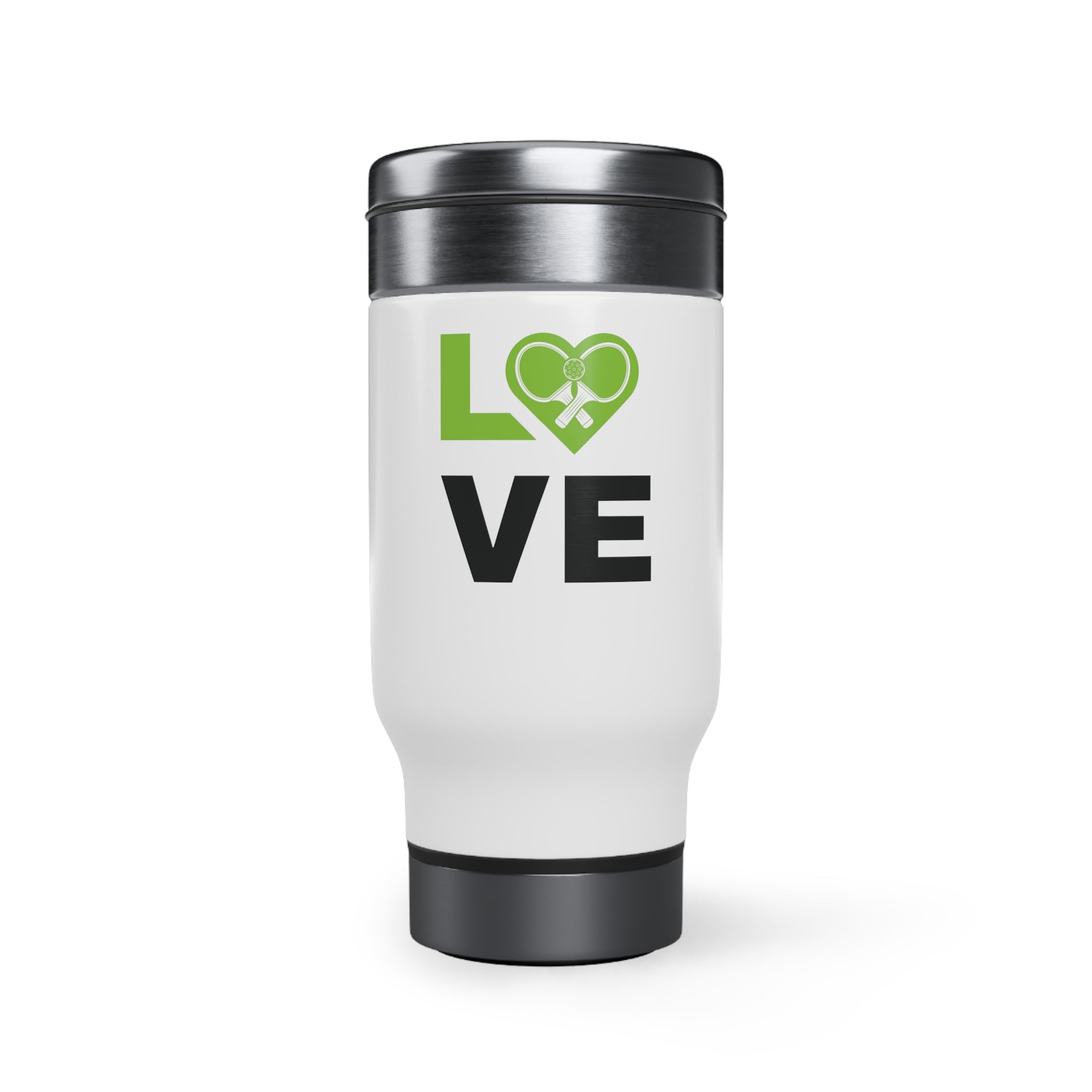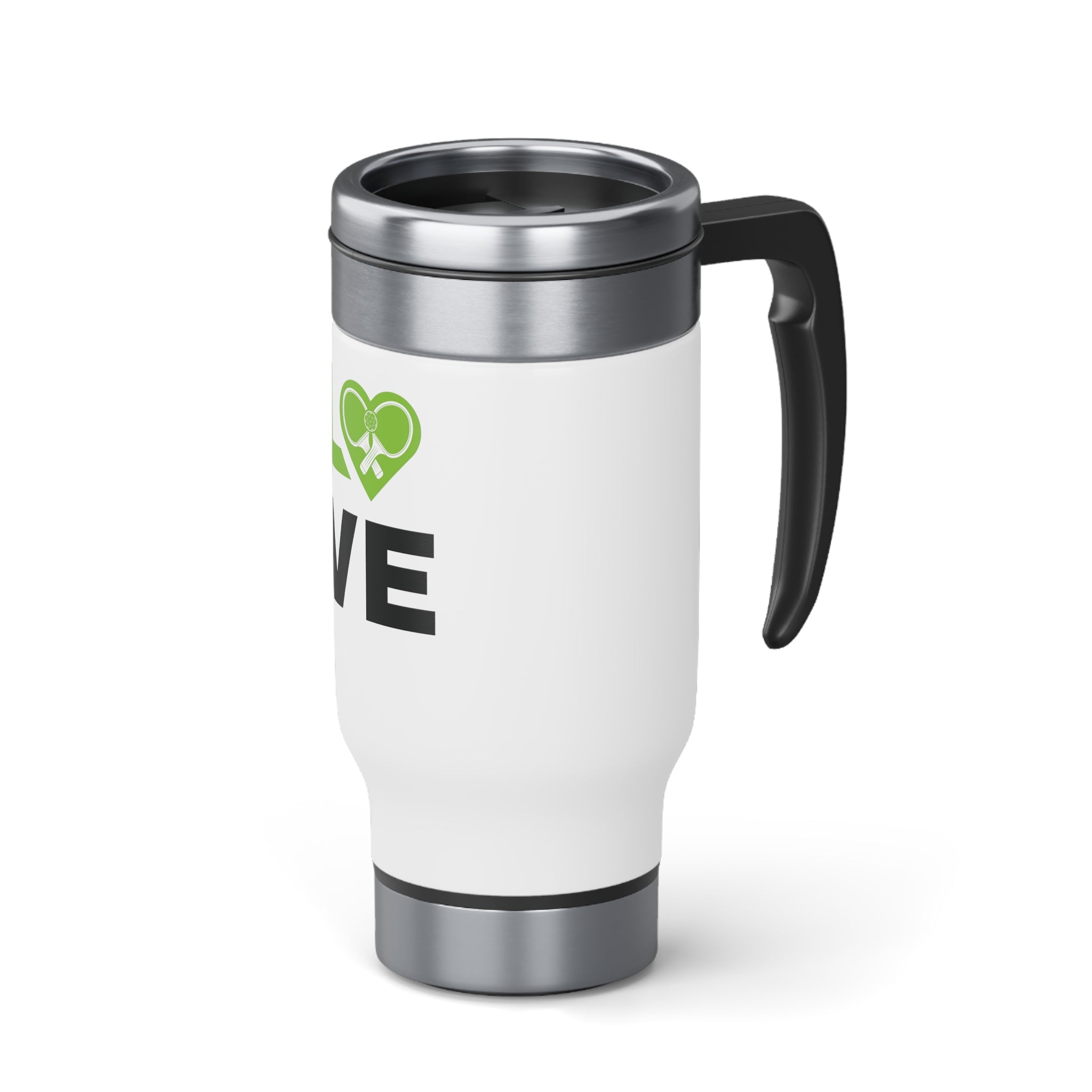 Stainless Steel Travel Mug with Handle, 14oz - Love Pickleball