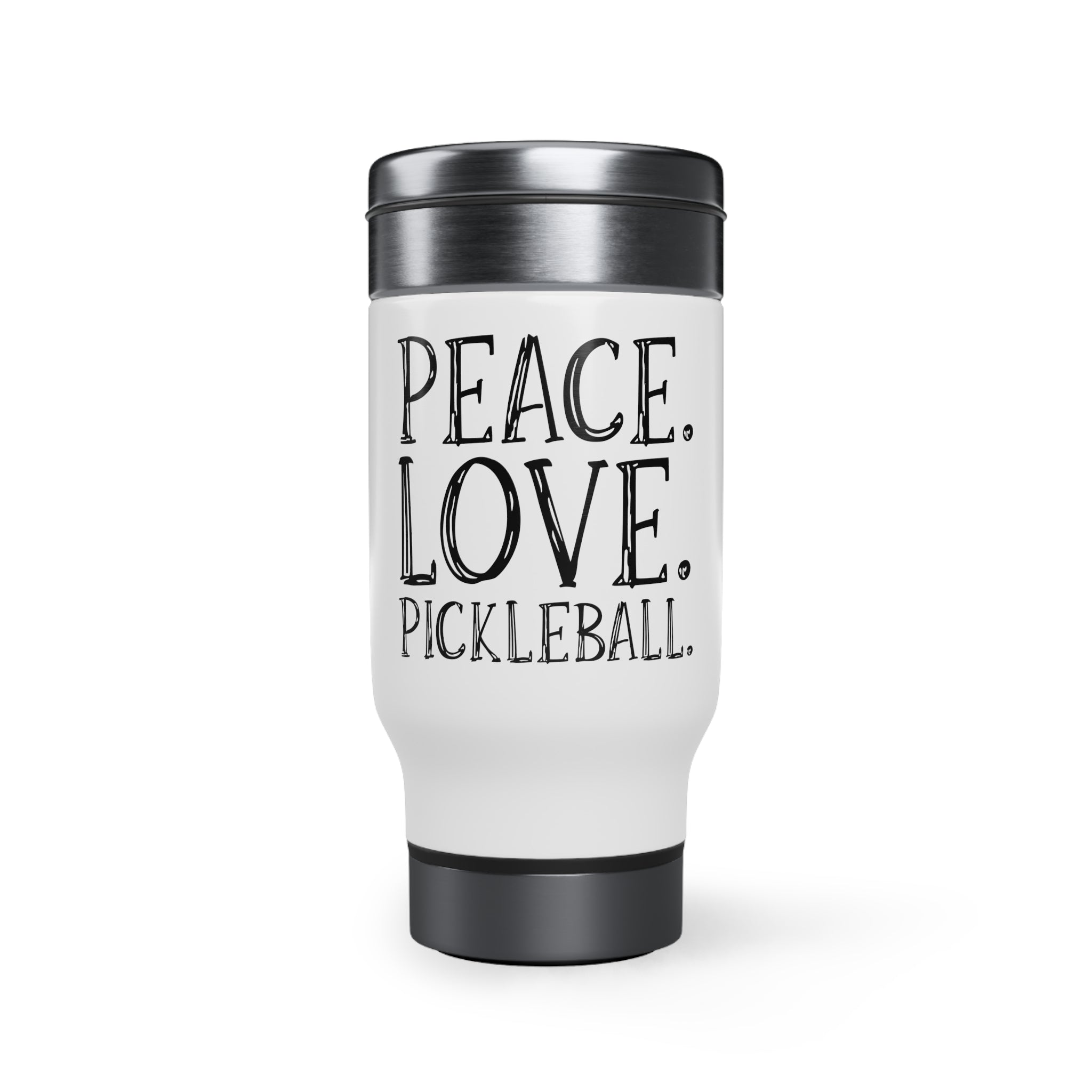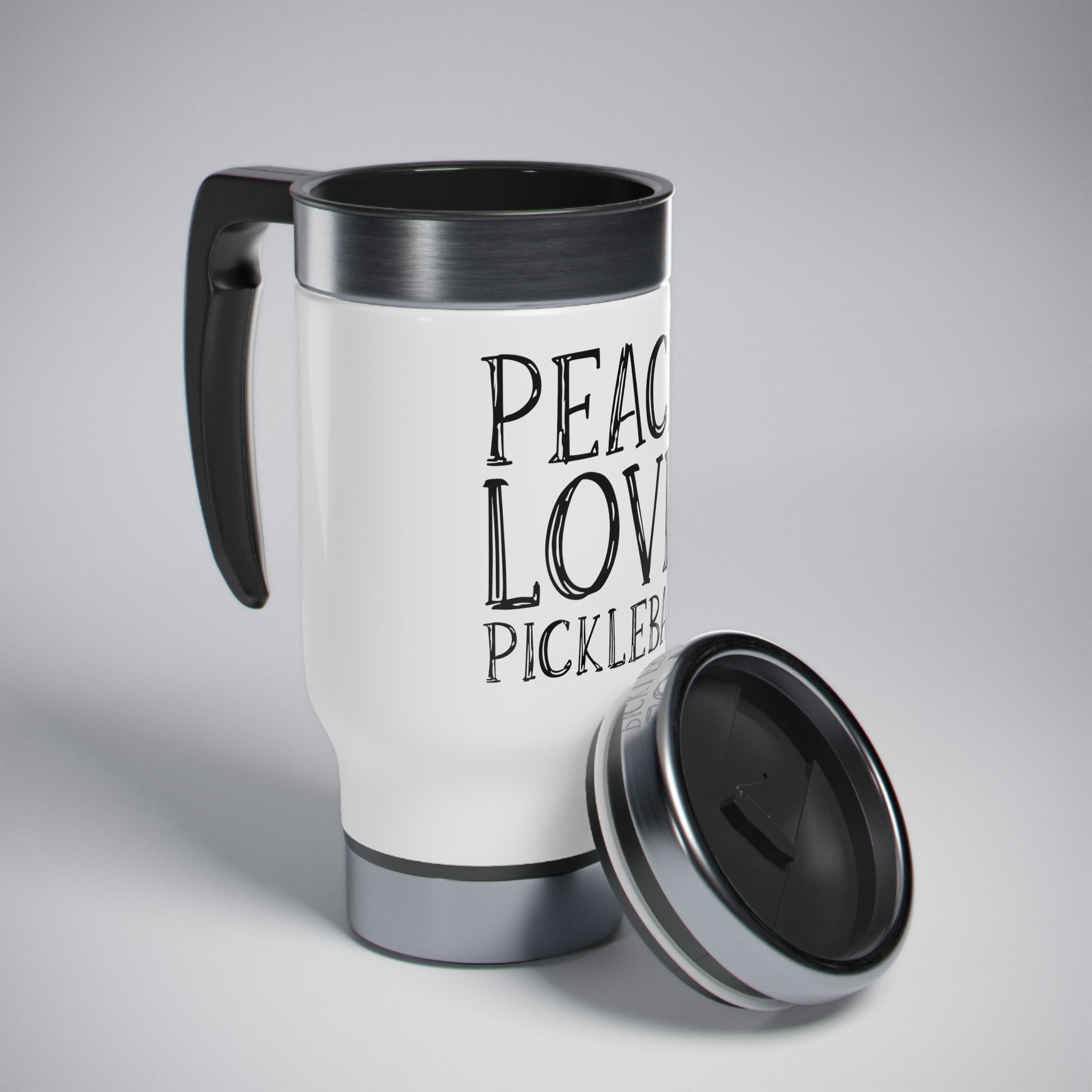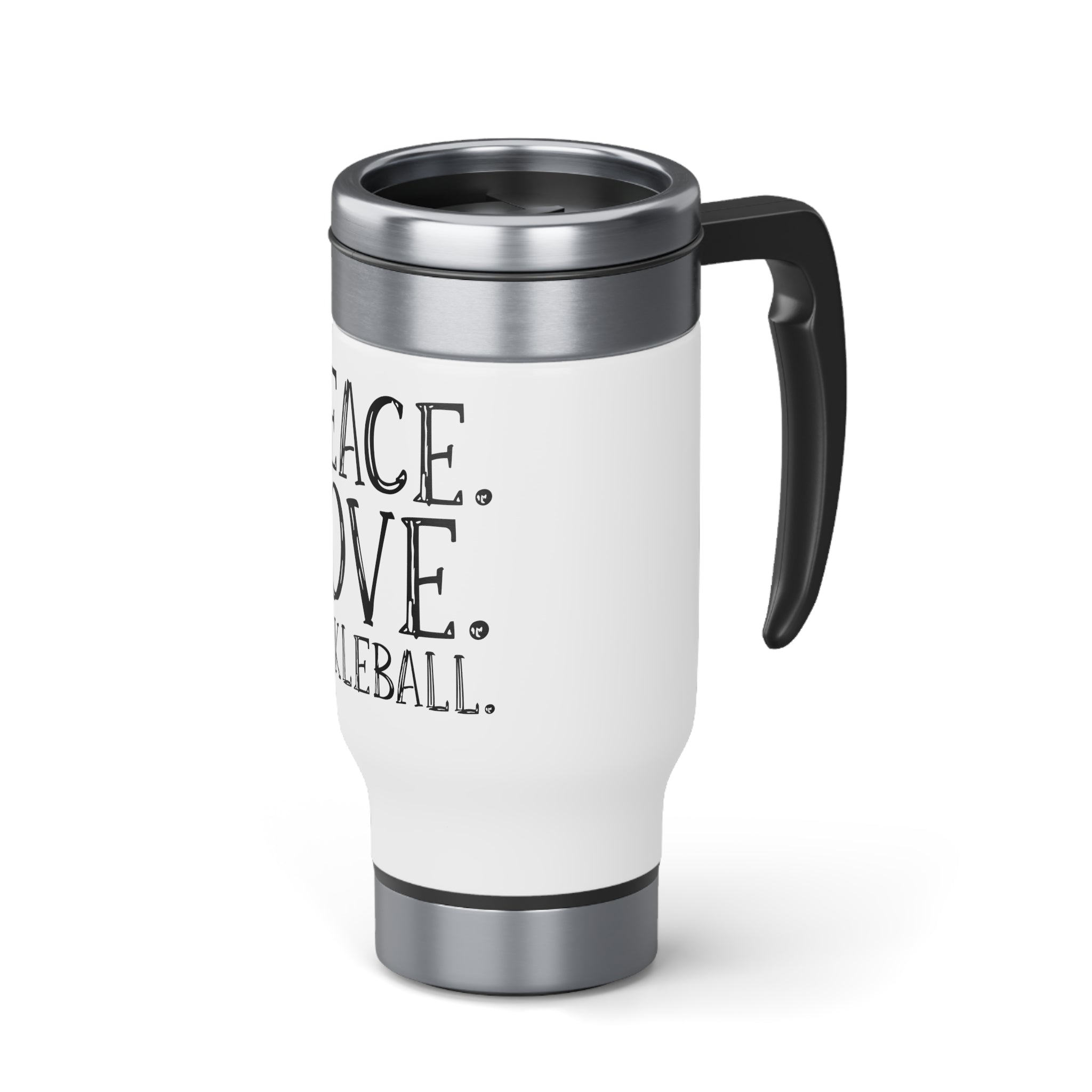 Stainless Steel Travel Mug with Handle, 14oz - Peace. Love. Pickleball.