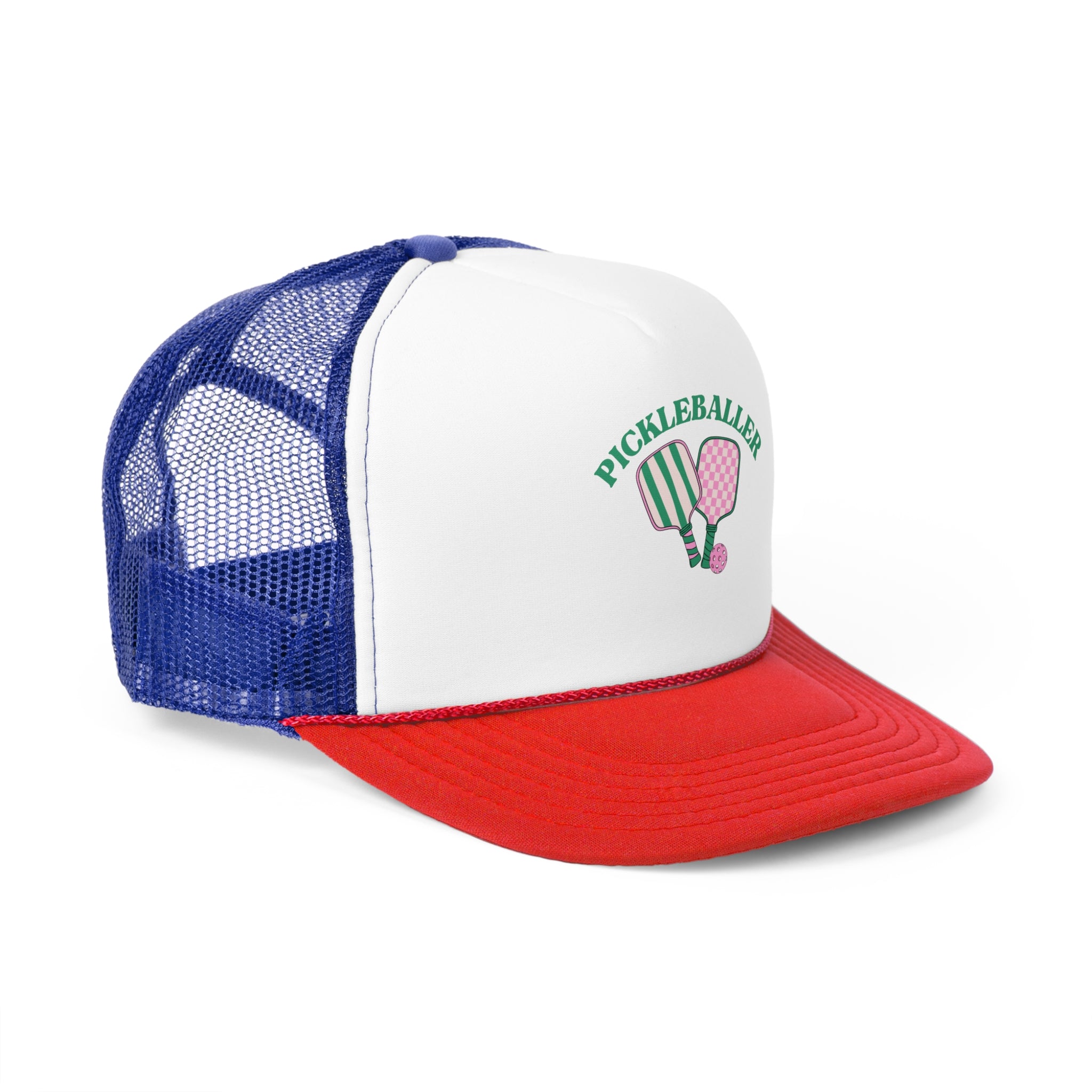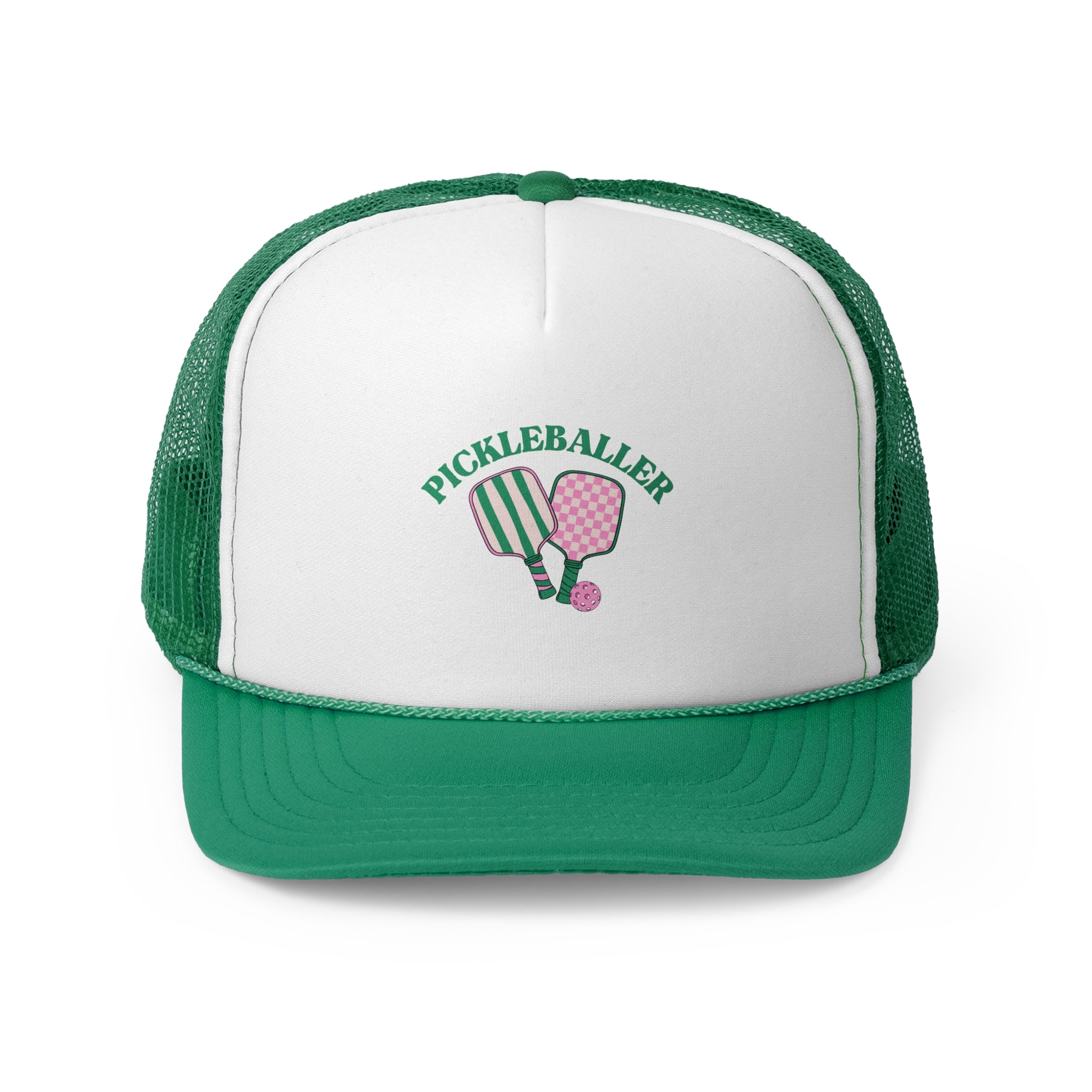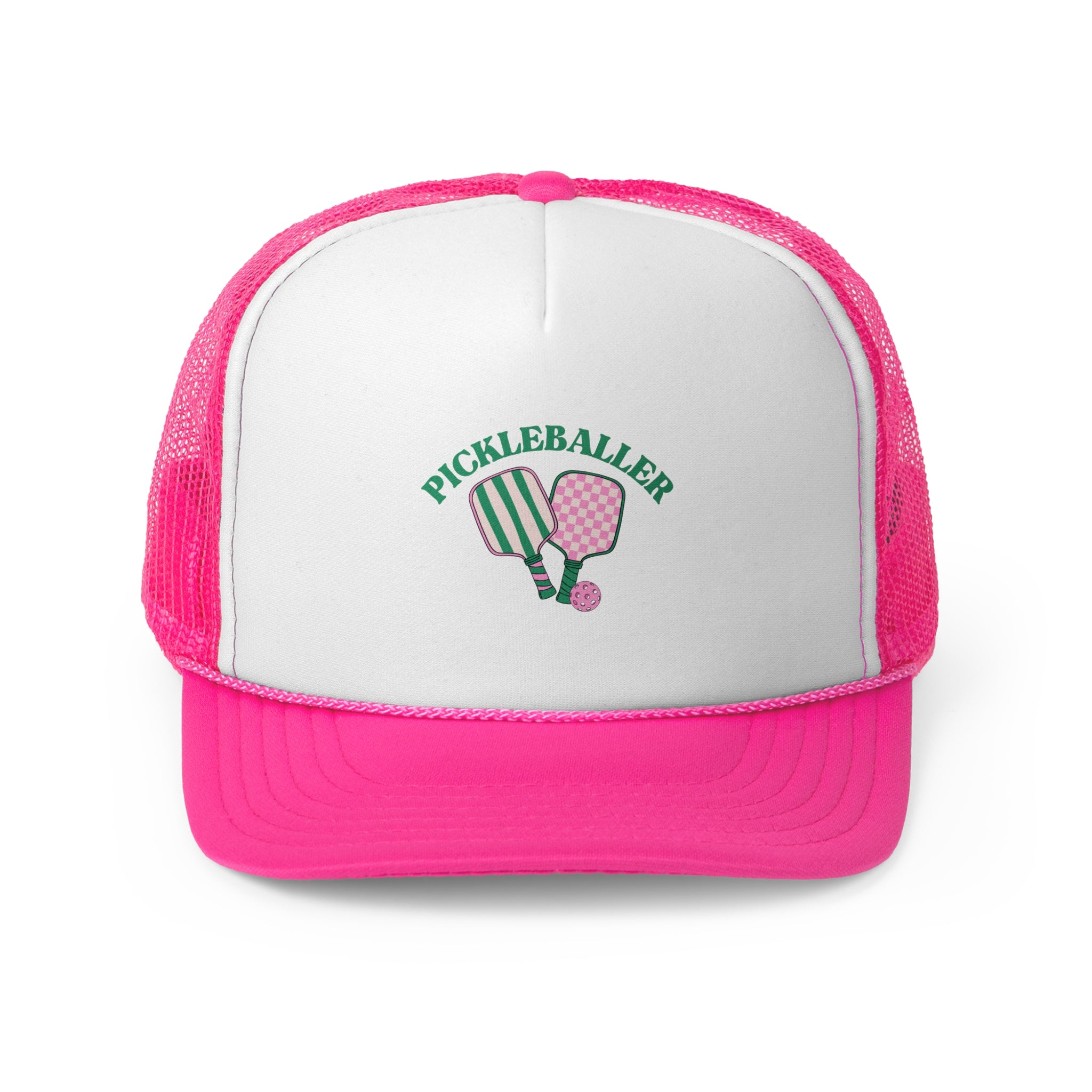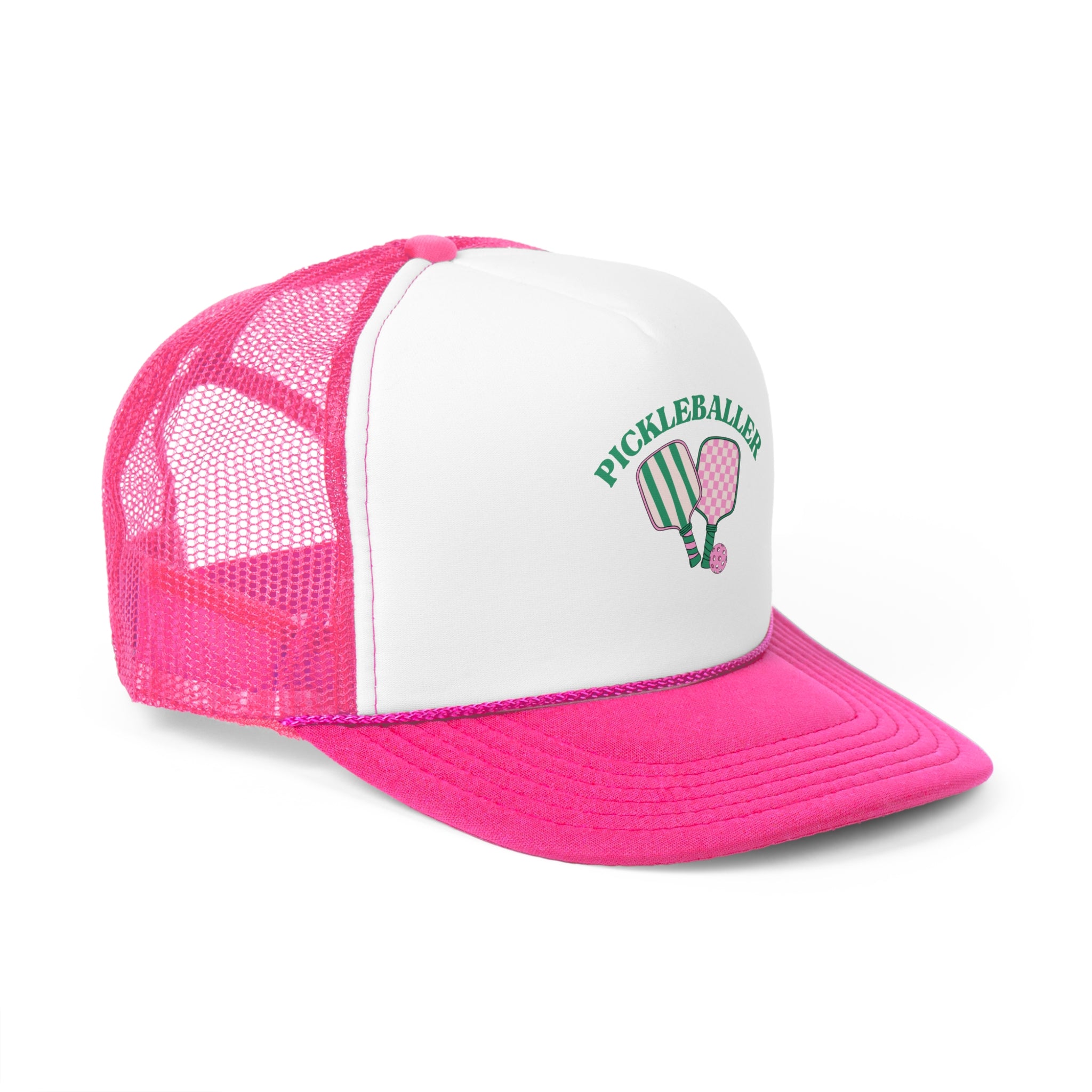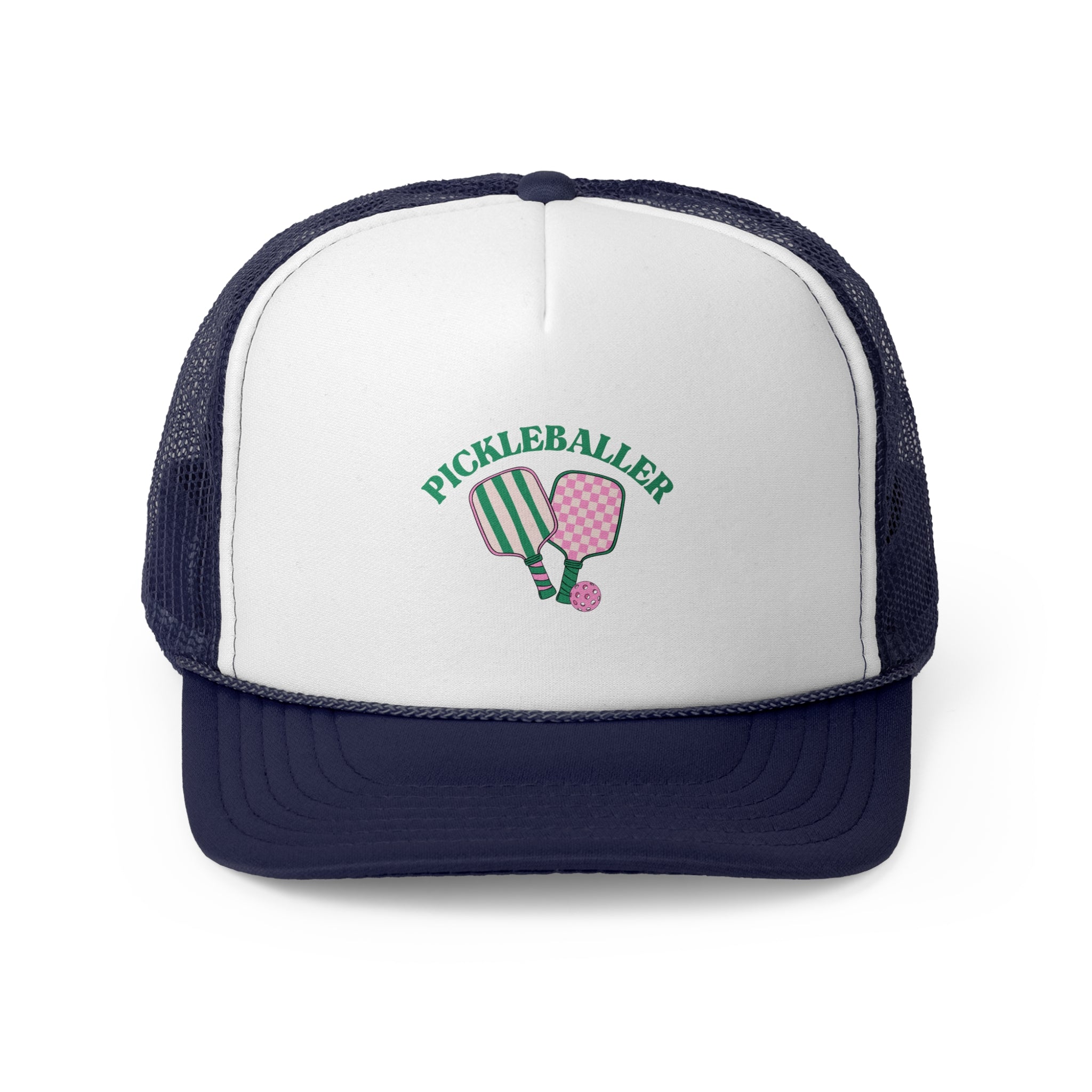 Get ready to rock your pickleball passion in this fun and stylish trucker cap! Whether you're serving up aces or just hanging with your pickleball crew, this hat has you covered. With a breathable mesh back to keep things cool and a customizable front for all your favorite designs, it’s the perfect combo of comfort and personality. Trust us, once you put it on, you'll never want to take it off!