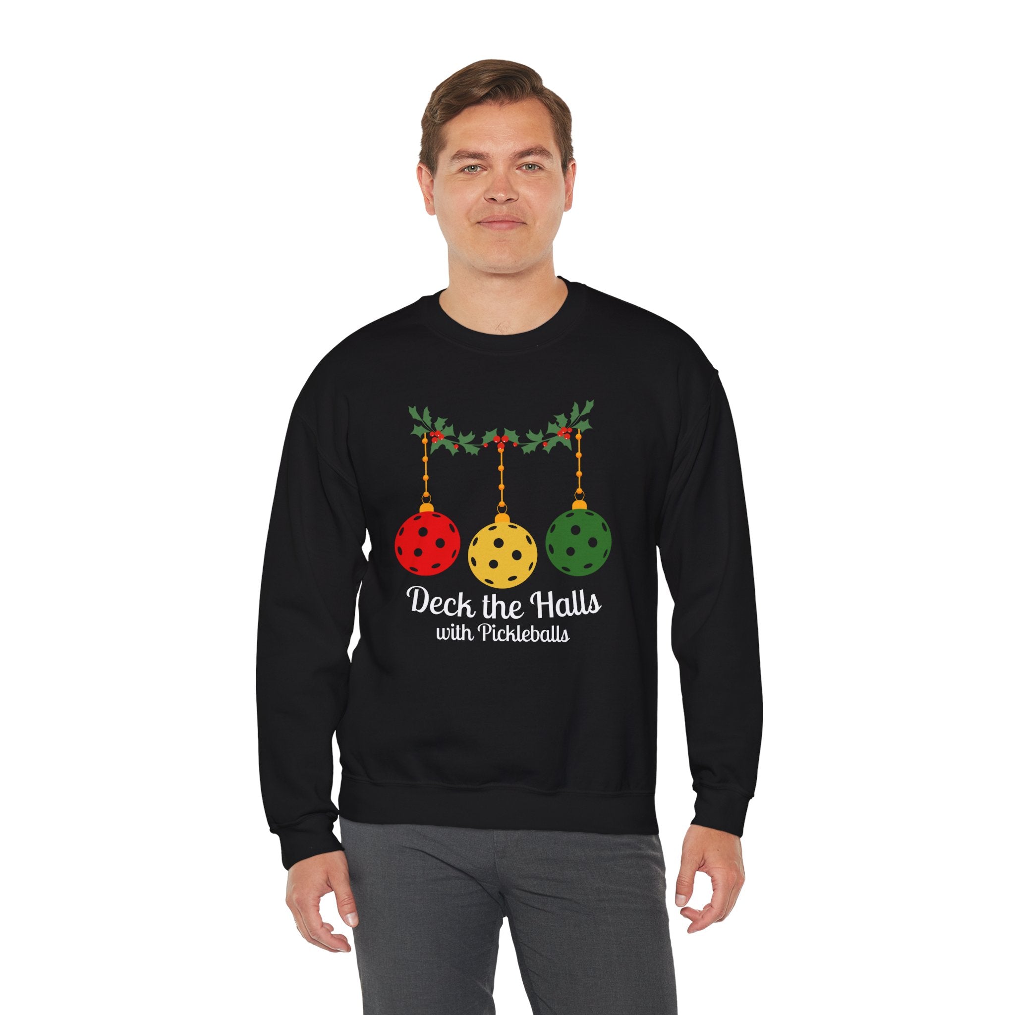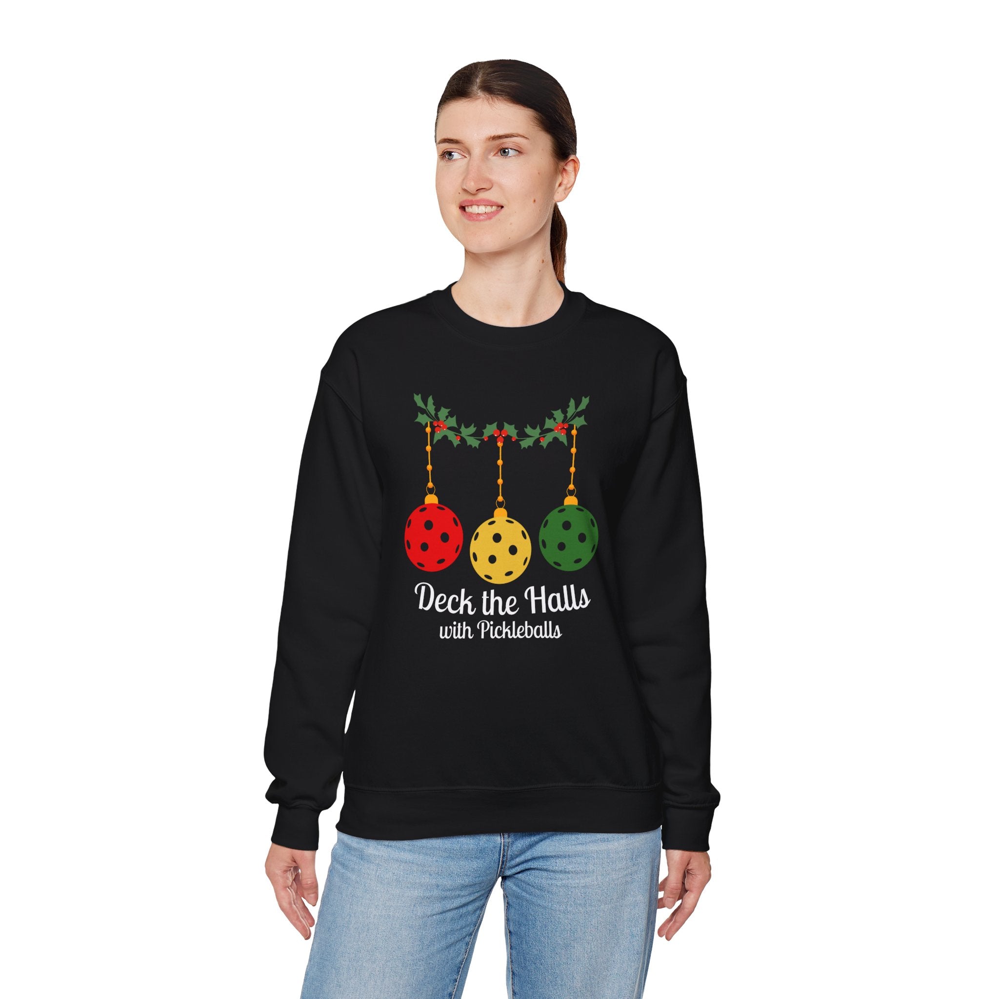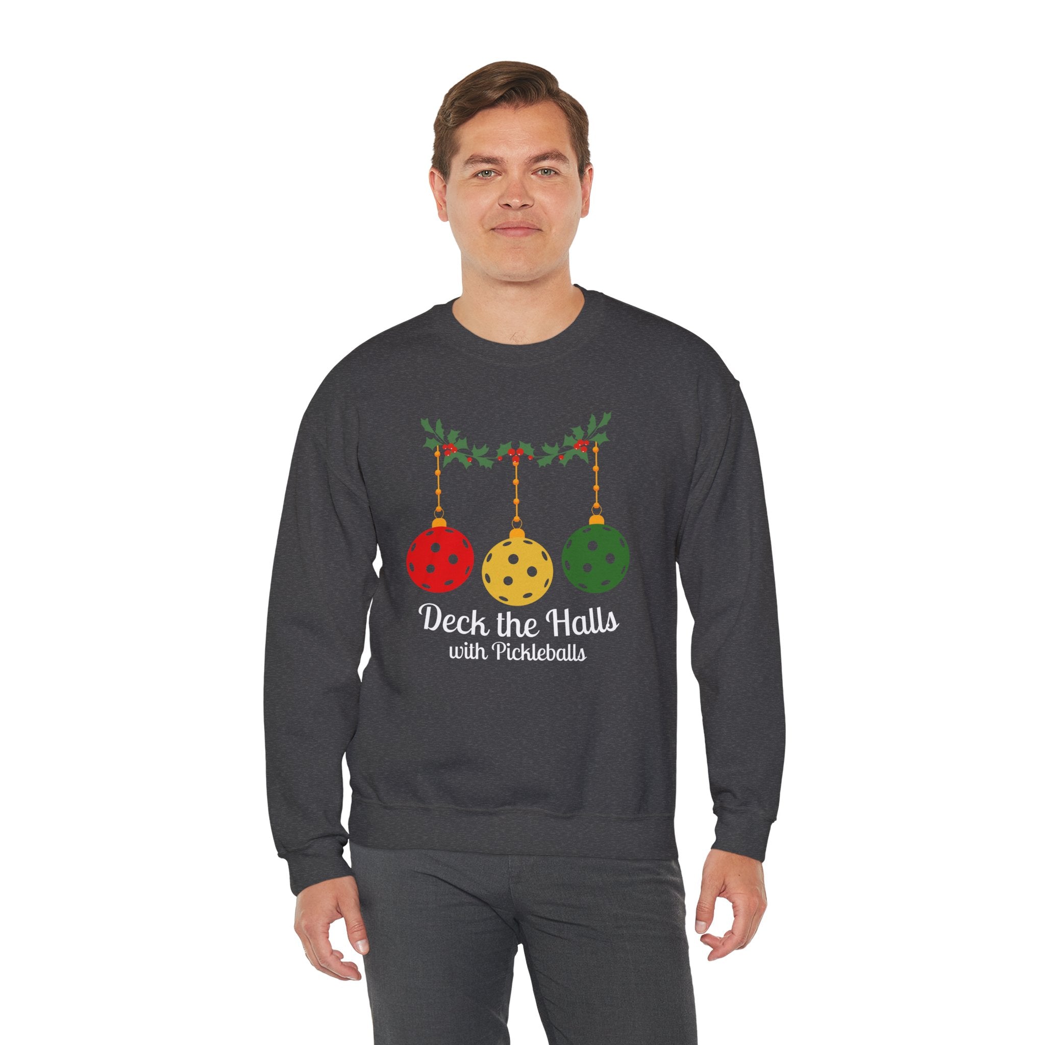 Christmas Pickleball Crewneck Sweatshirt - Deck the Halls with Pickleballs - Pickleball Sweatshirt for Women & Men