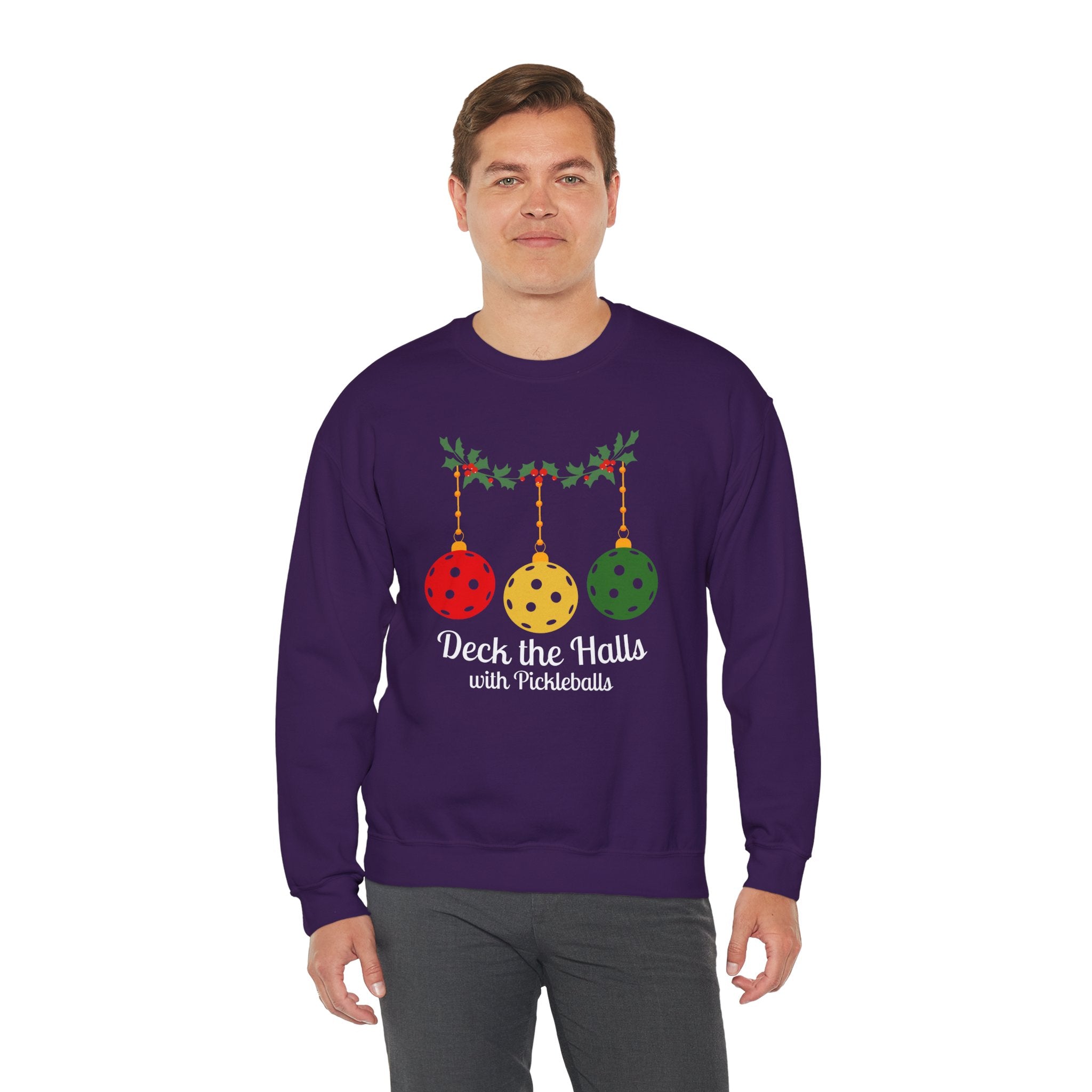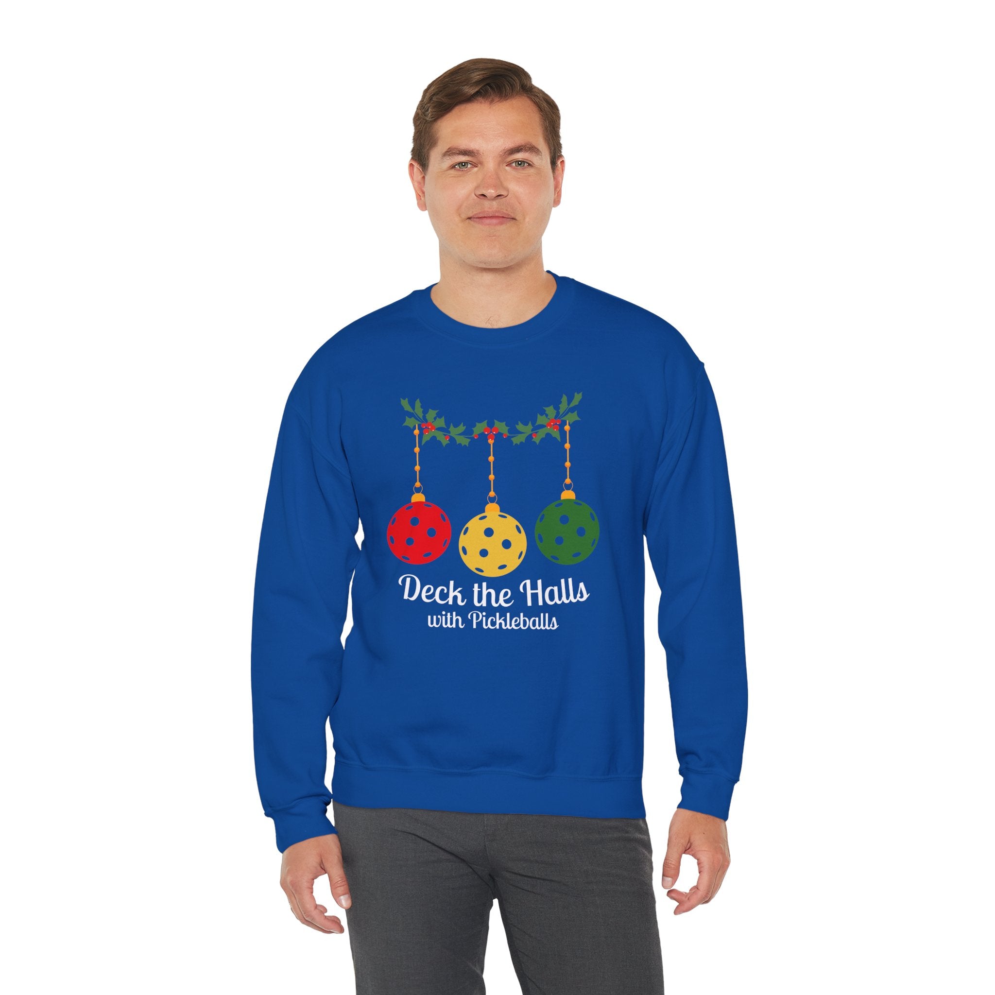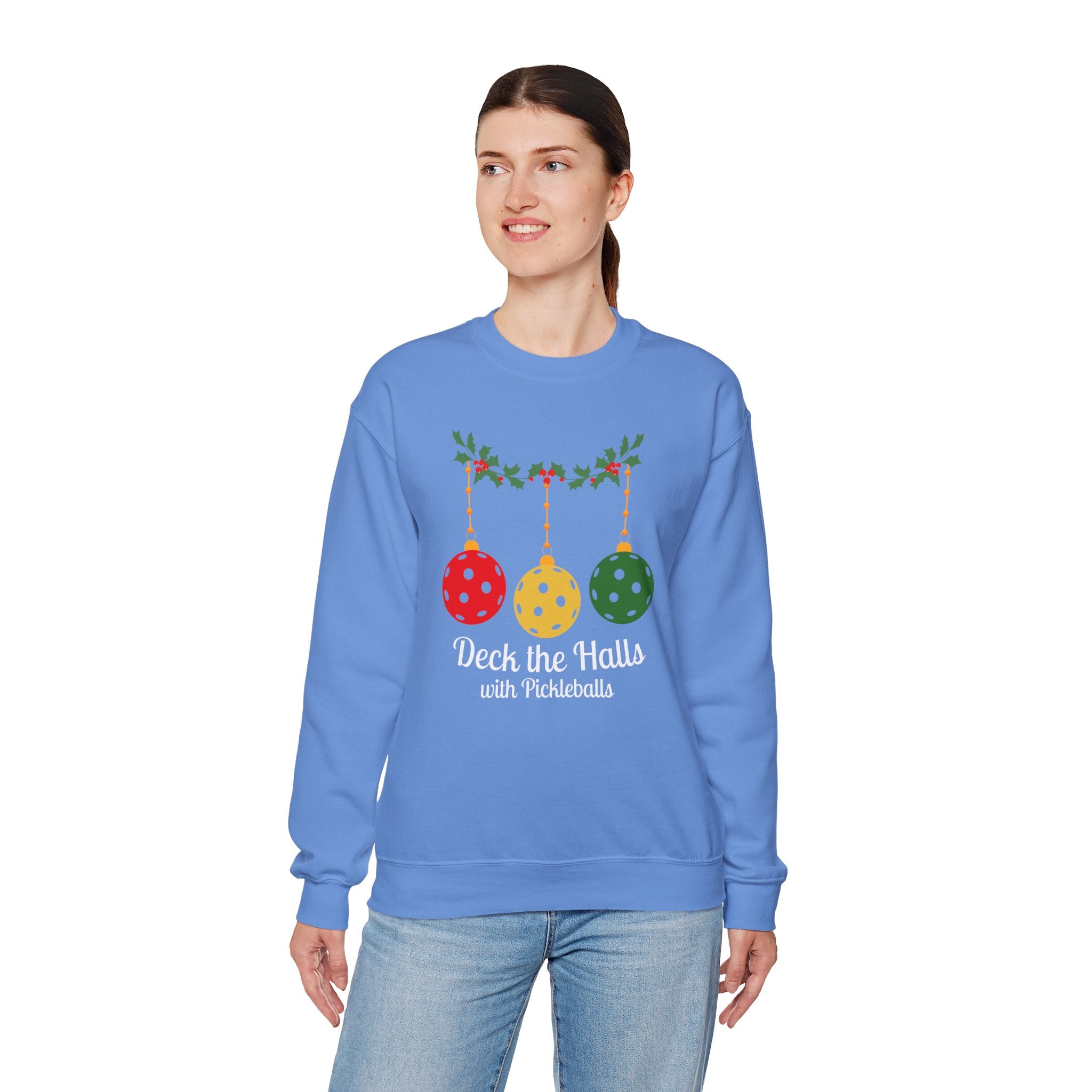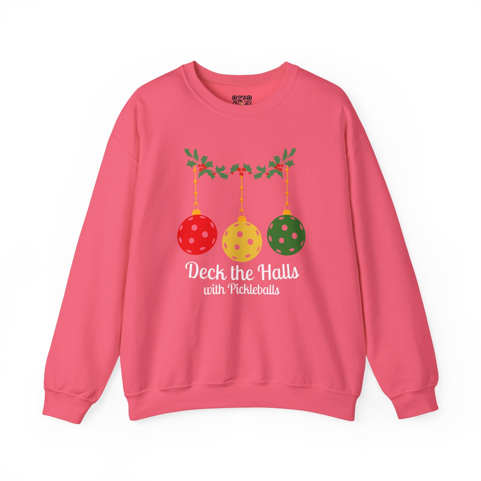 Christmas Pickleball Crewneck Sweatshirt - Deck the Halls with Pickleballs - Pickleball Sweatshirt for Women & Men