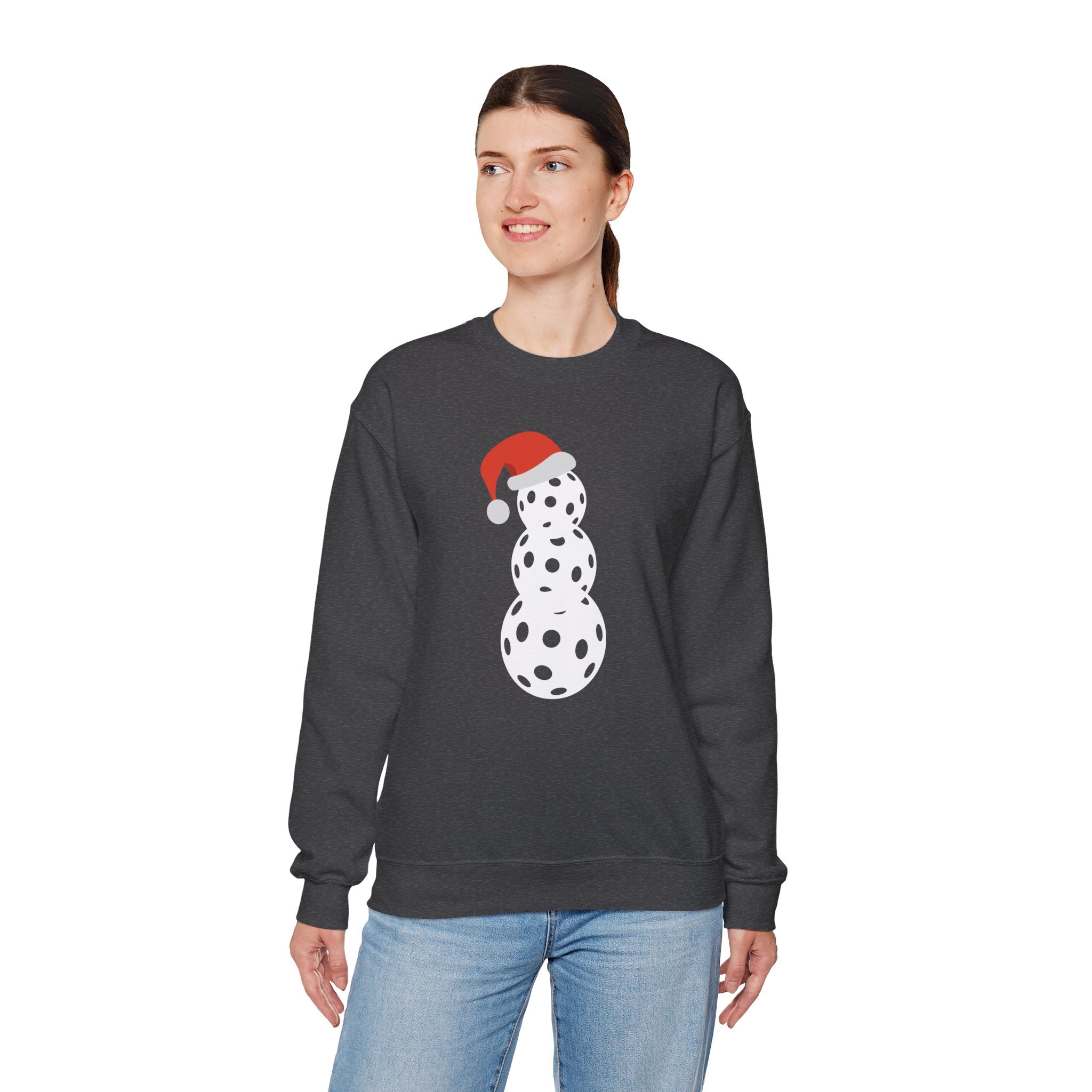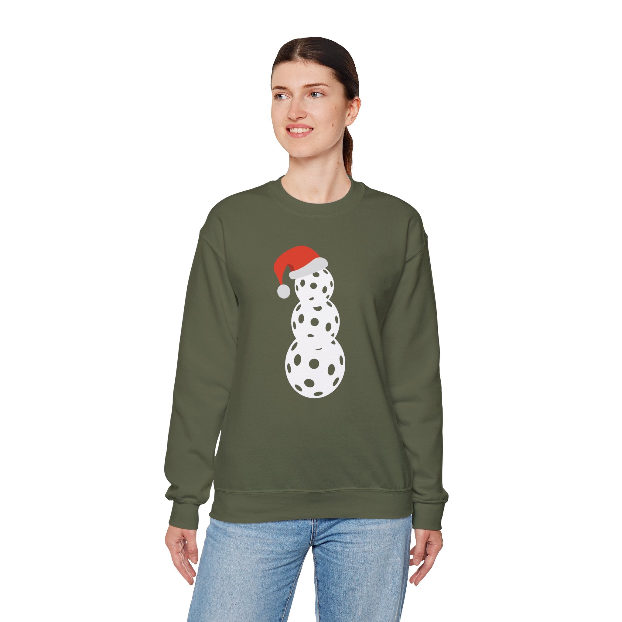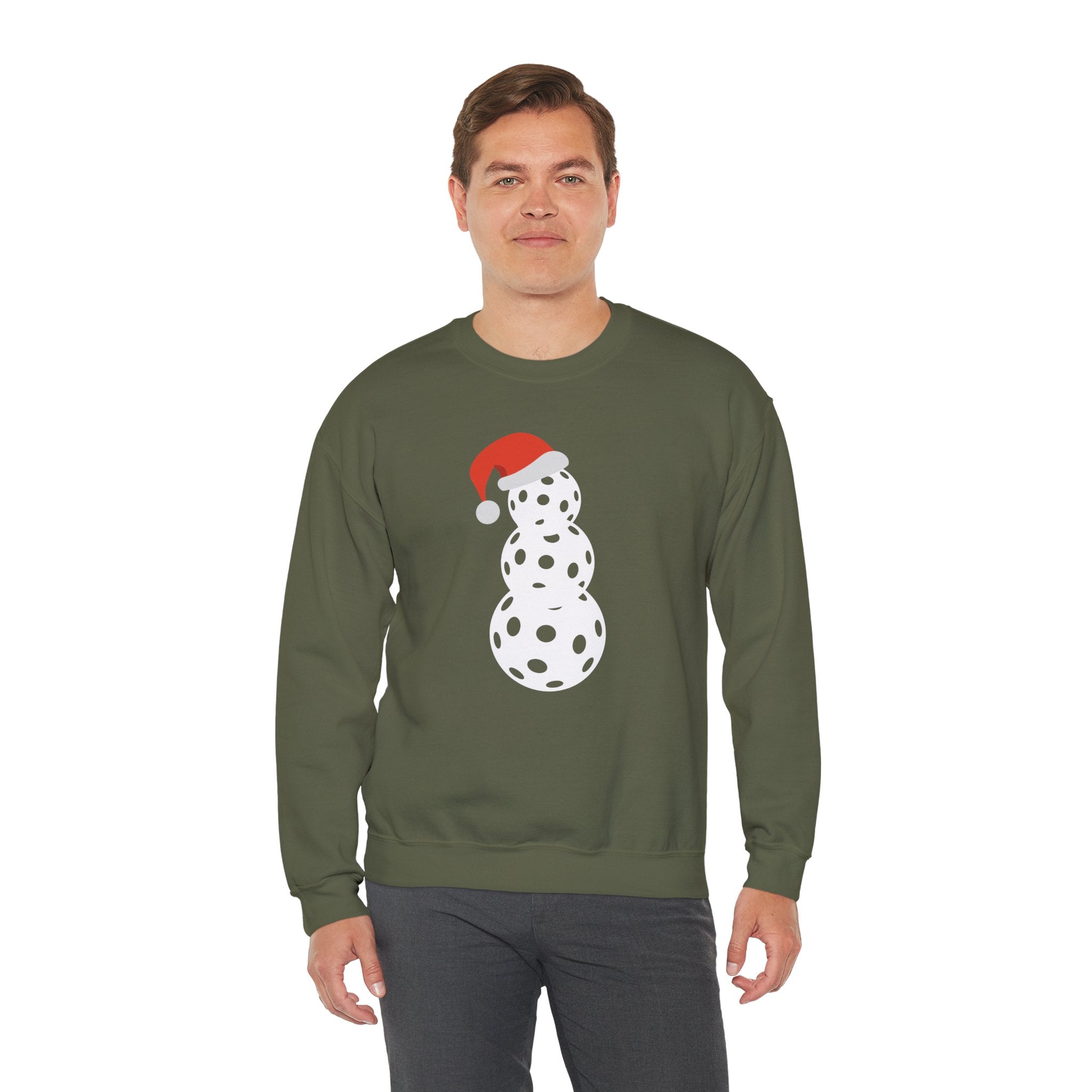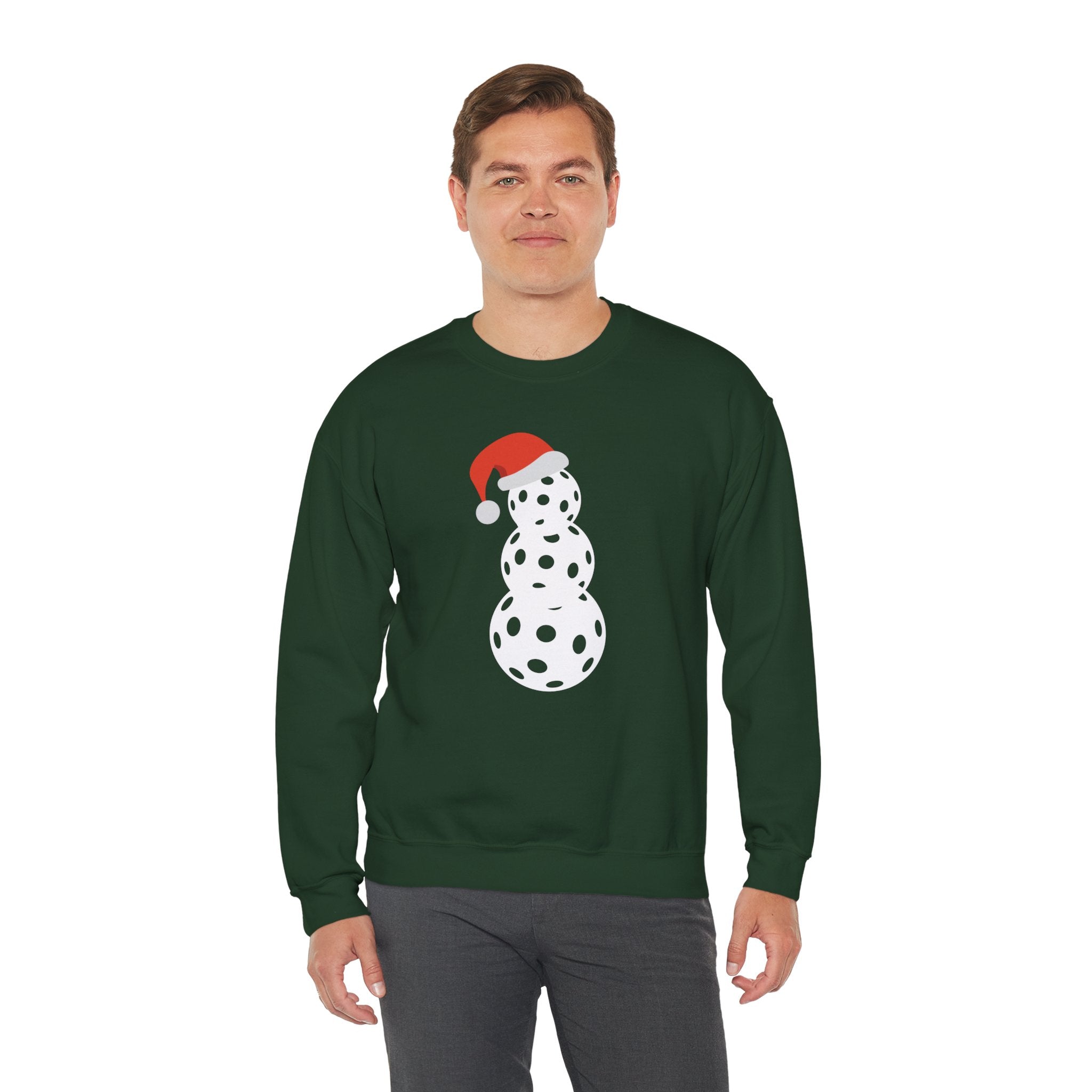 Christmas Pickleball Crewneck Sweatshirt - Snowman Made out of Pickleballs - Pickleball Sweatshirt for Women & Men