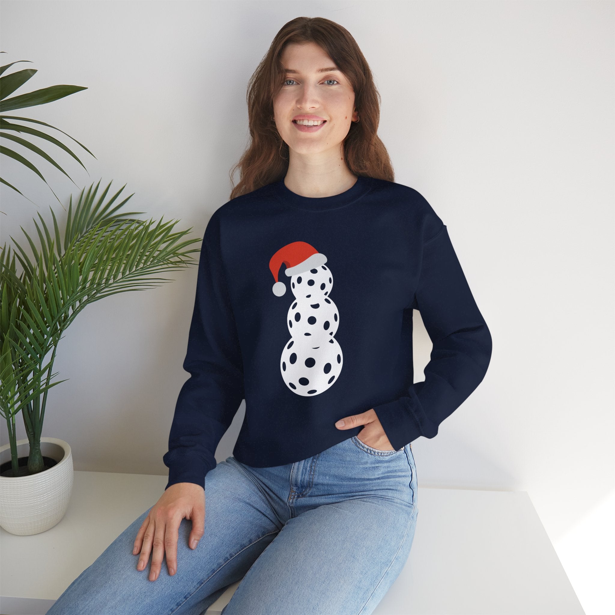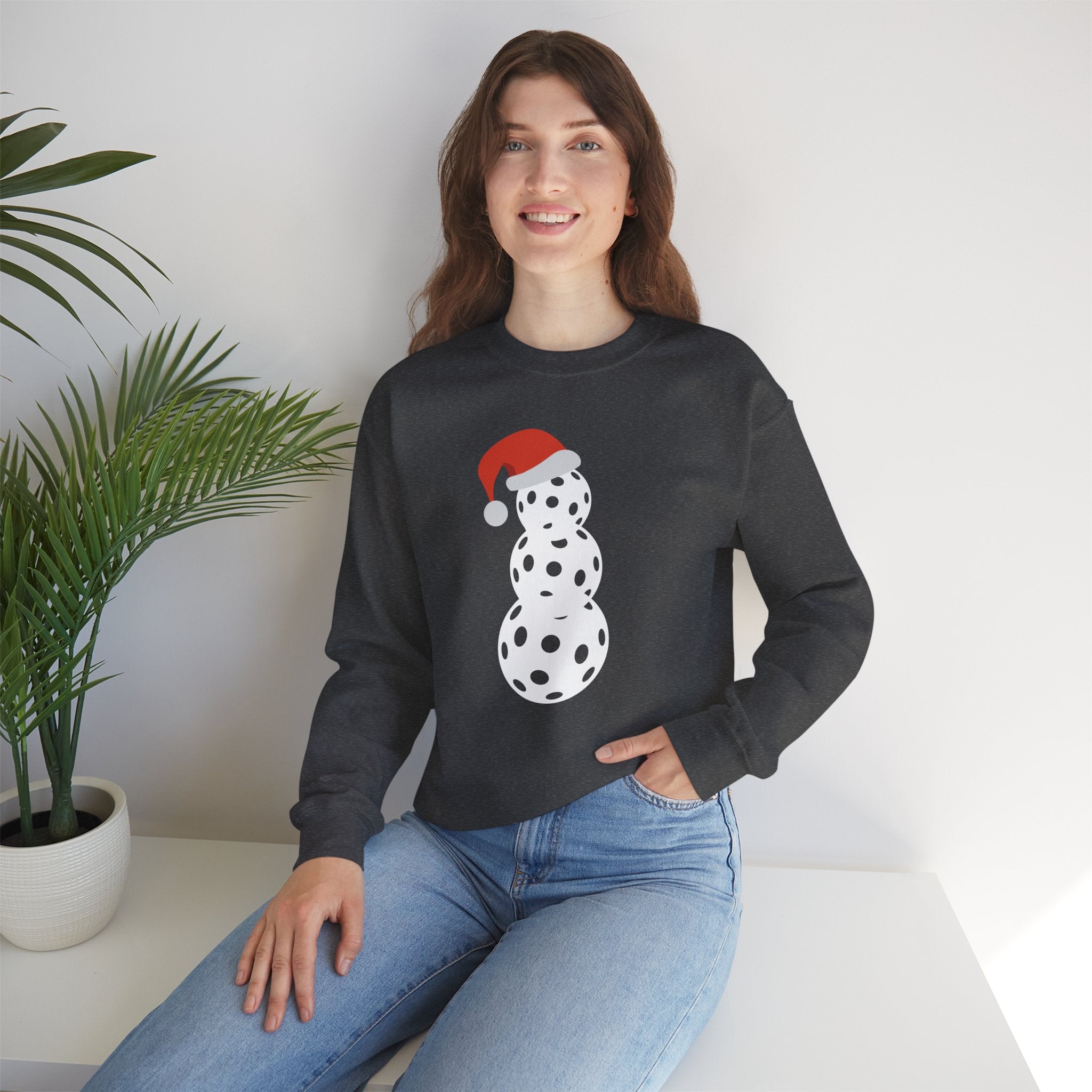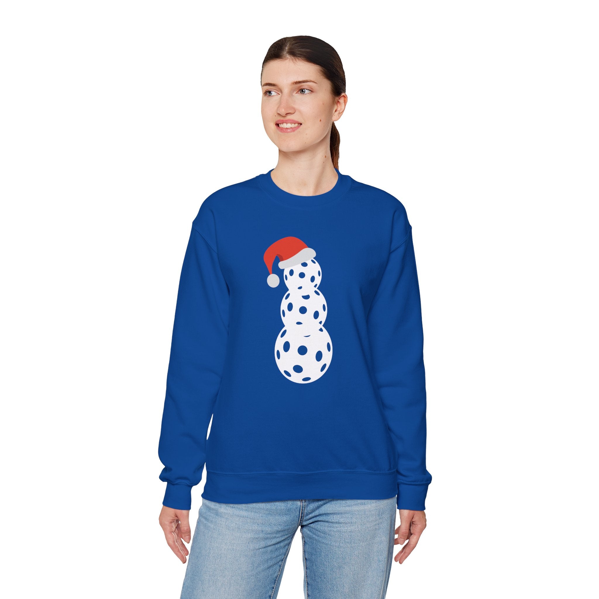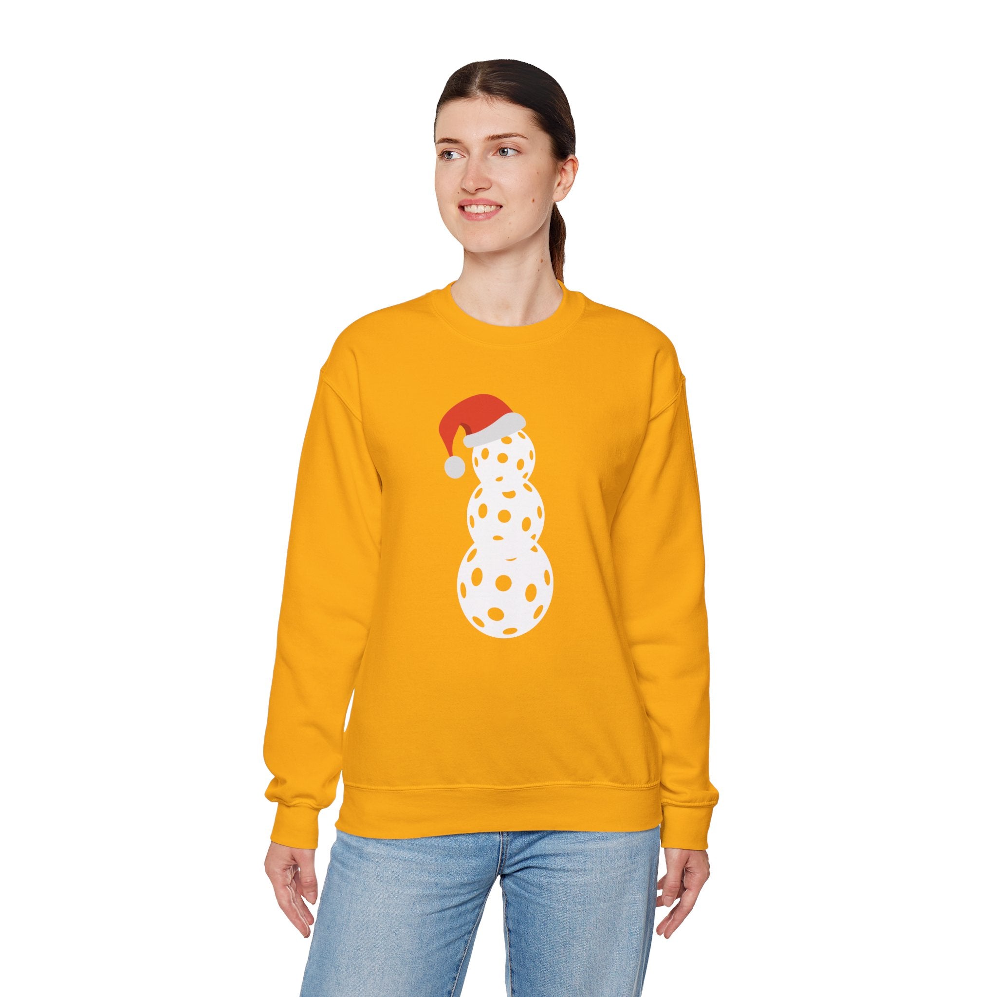 Christmas Pickleball Crewneck Sweatshirt - Snowman Made out of Pickleballs - Pickleball Sweatshirt for Women & Men