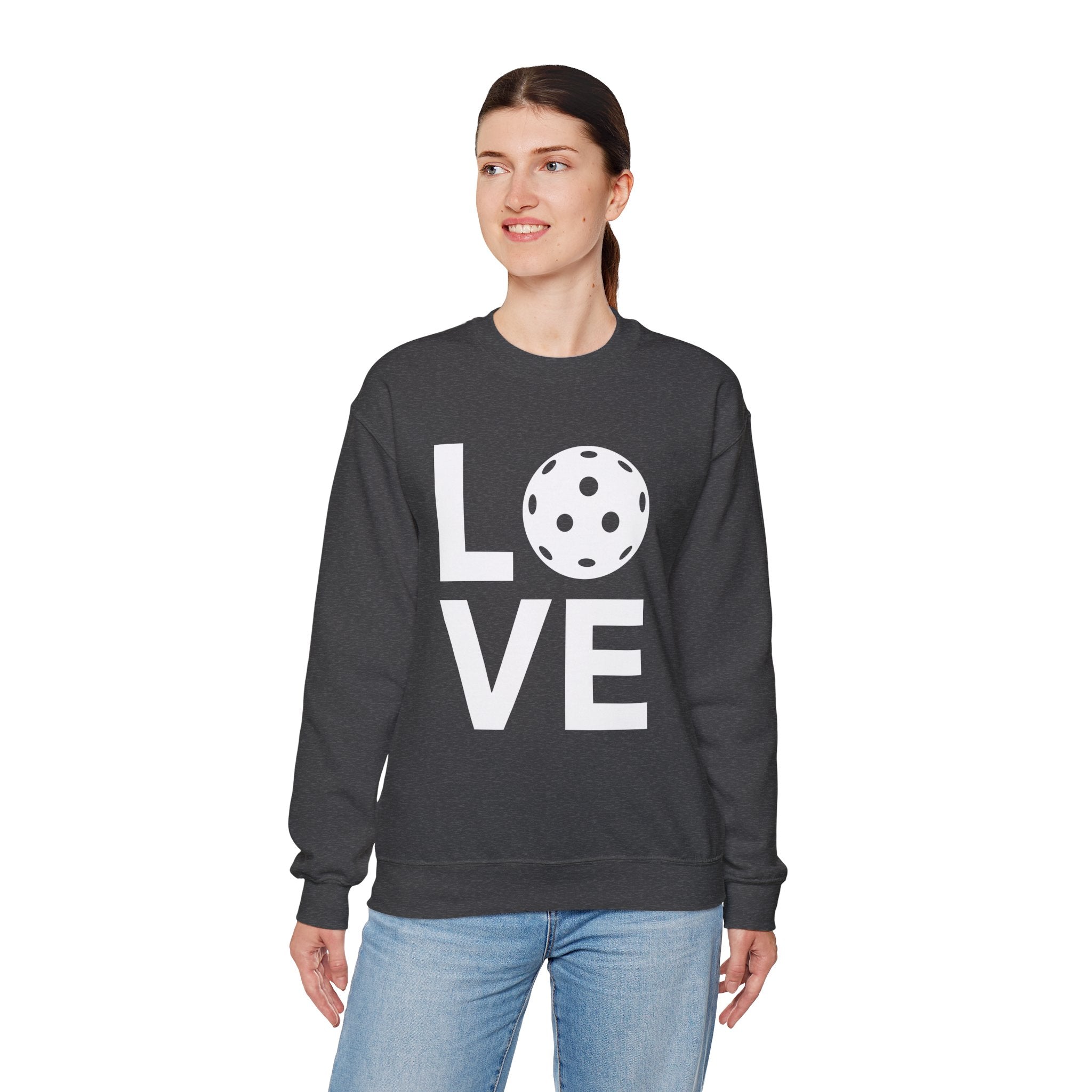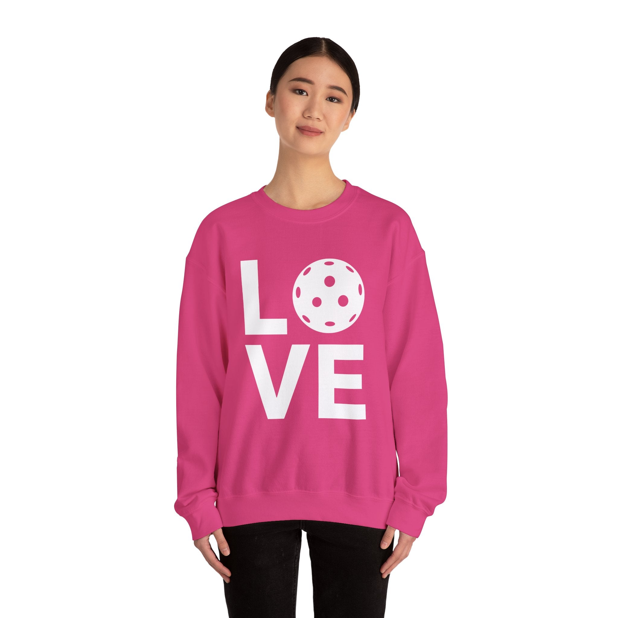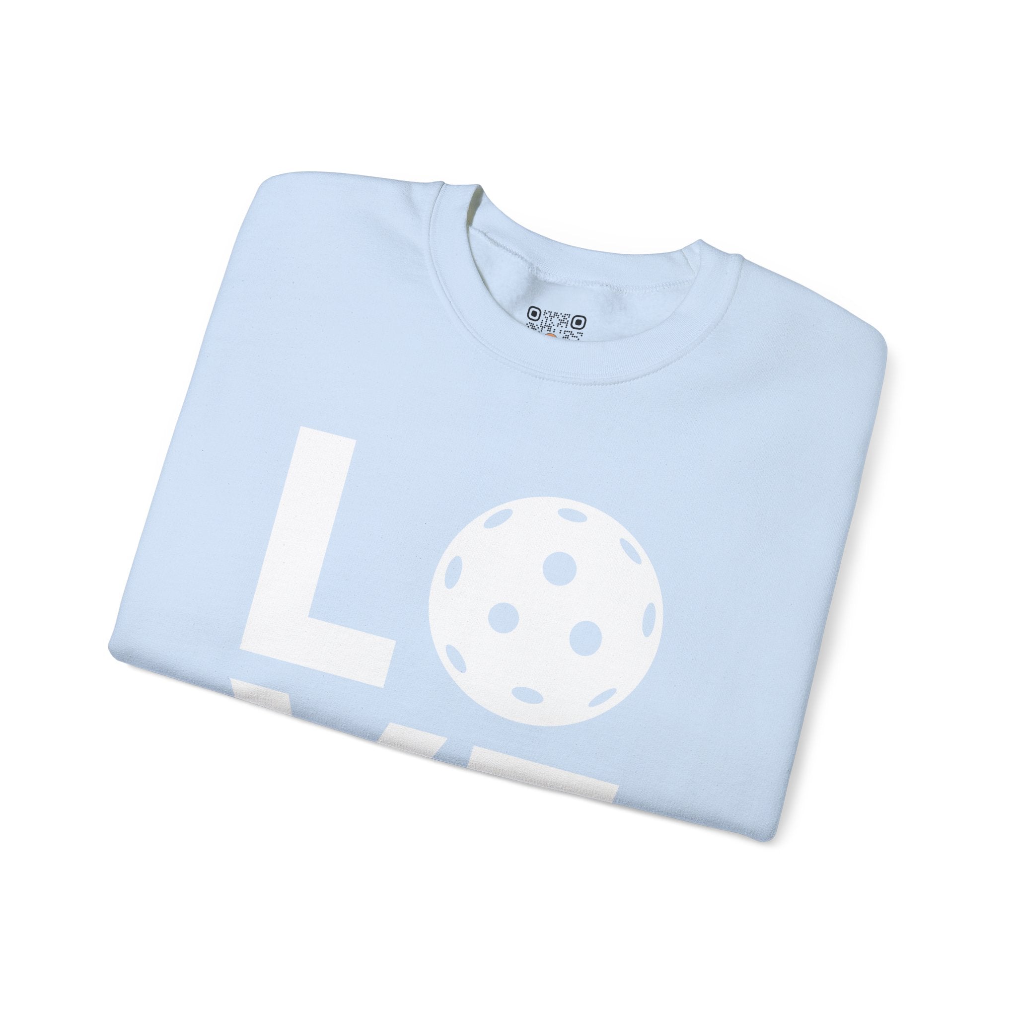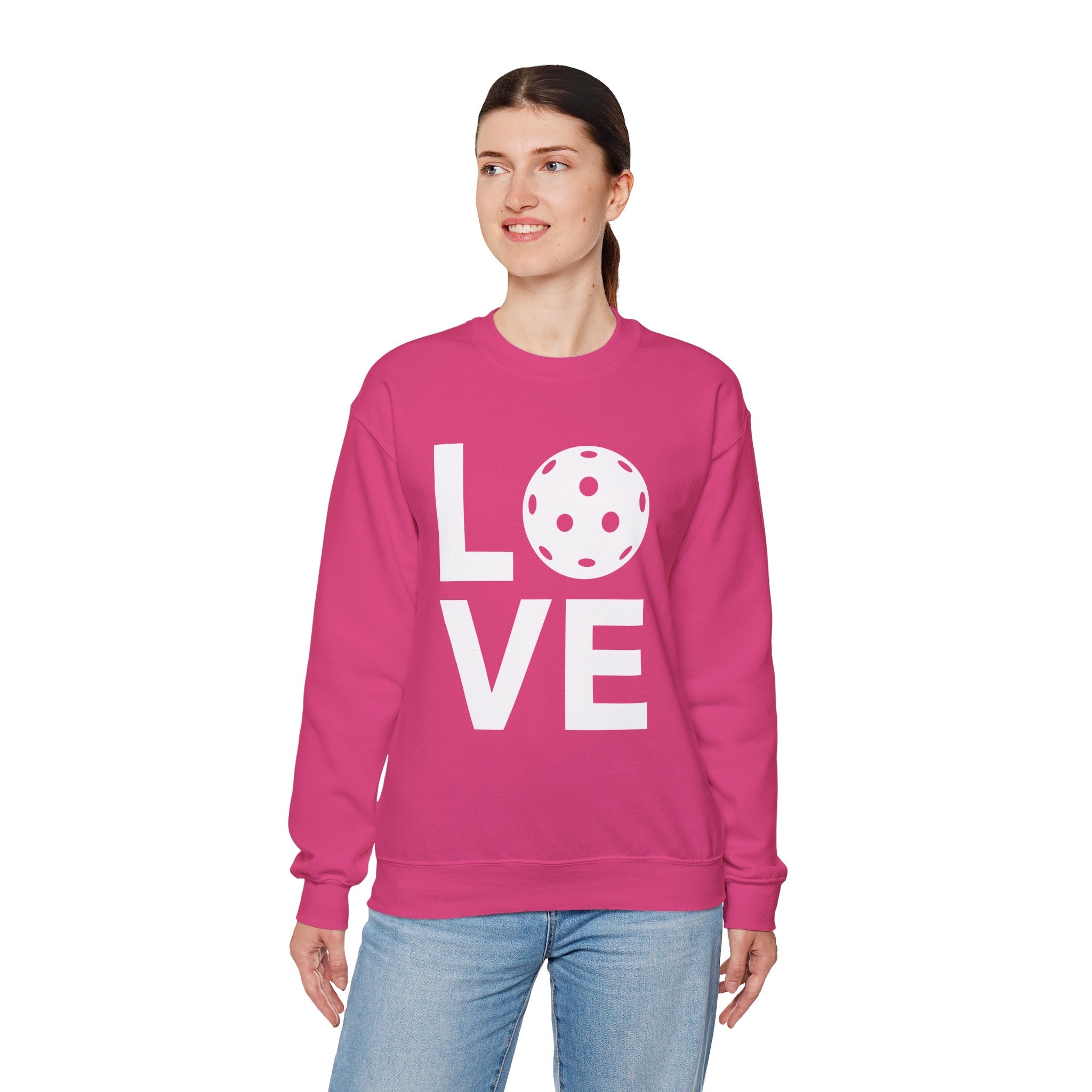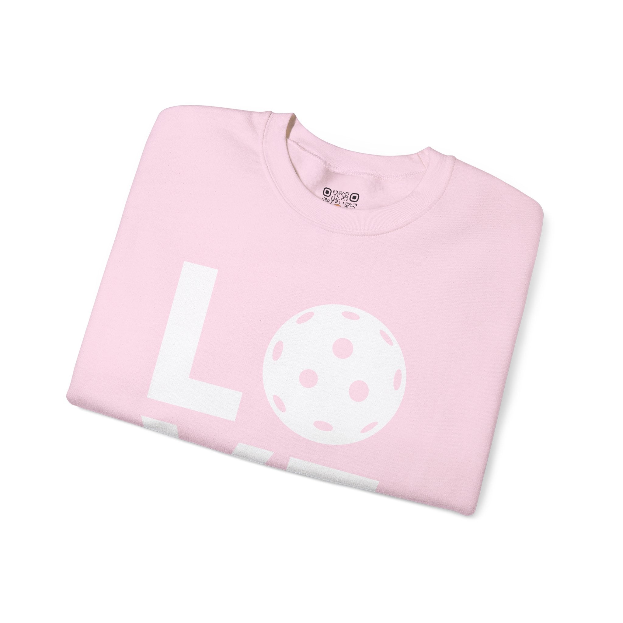 Pickleball Crewneck Sweatshirt - LOVE Pickleball with a White Pickleball - Pickleball Sweatshirt for Women & Men
