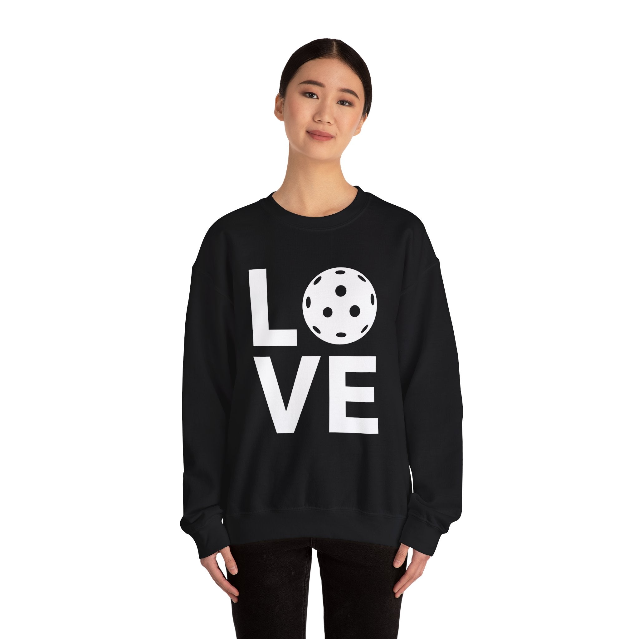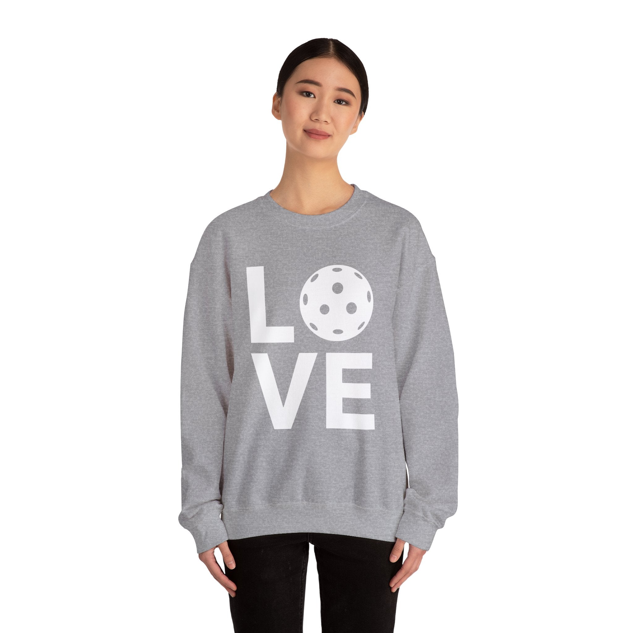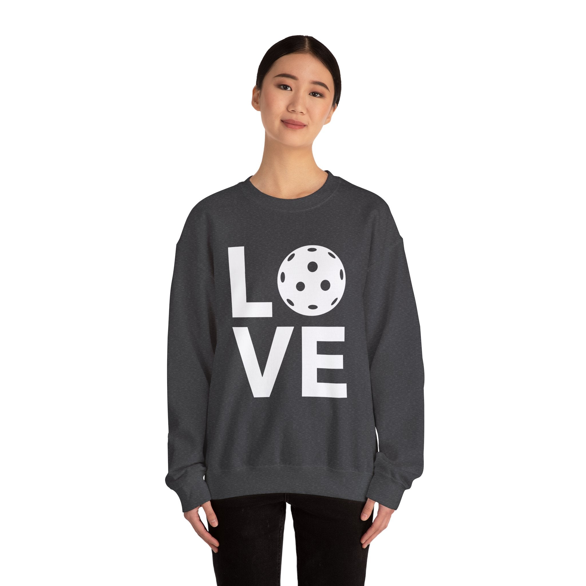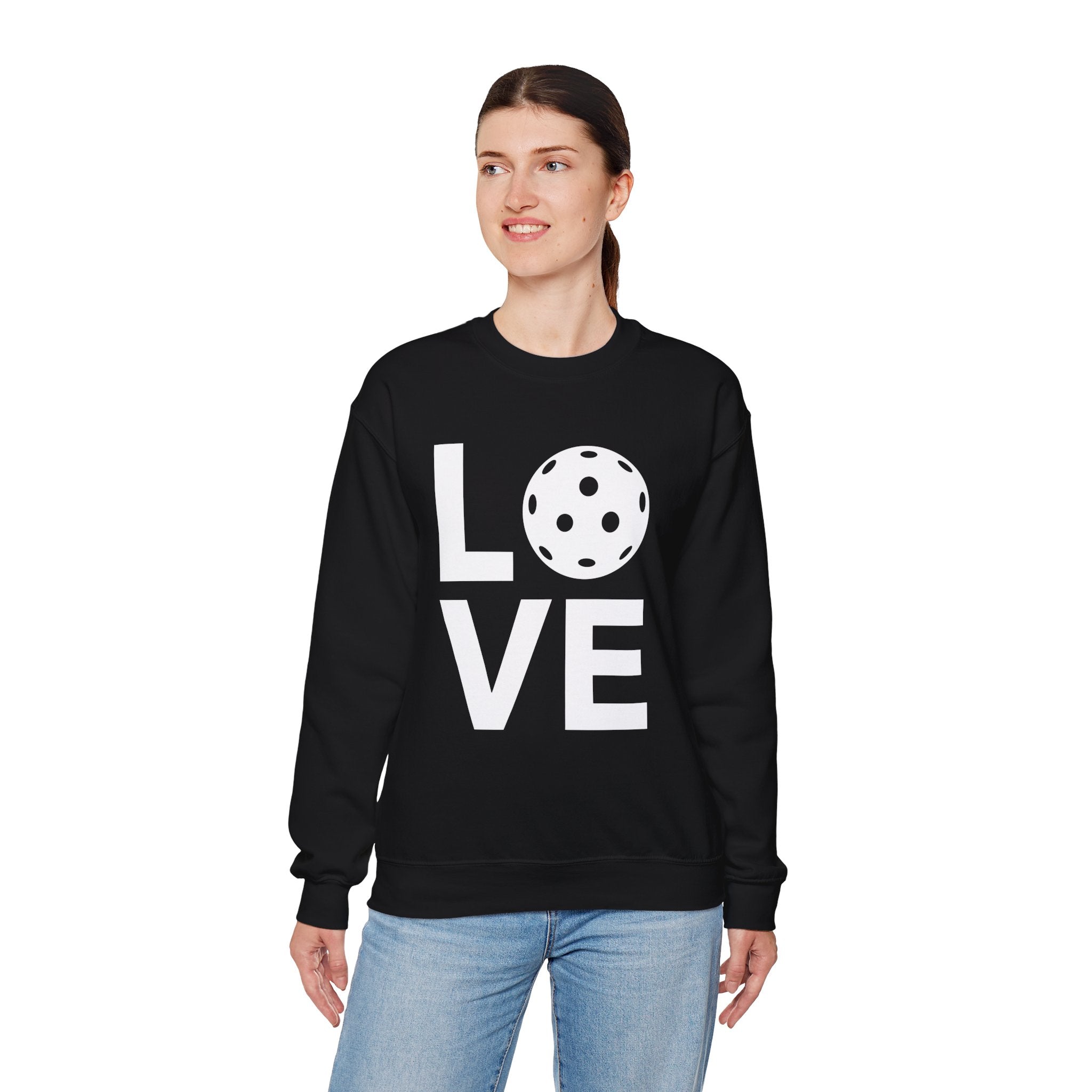 Pickleball Crewneck Sweatshirt - LOVE Pickleball with a White Pickleball - Pickleball Sweatshirt for Women & Men