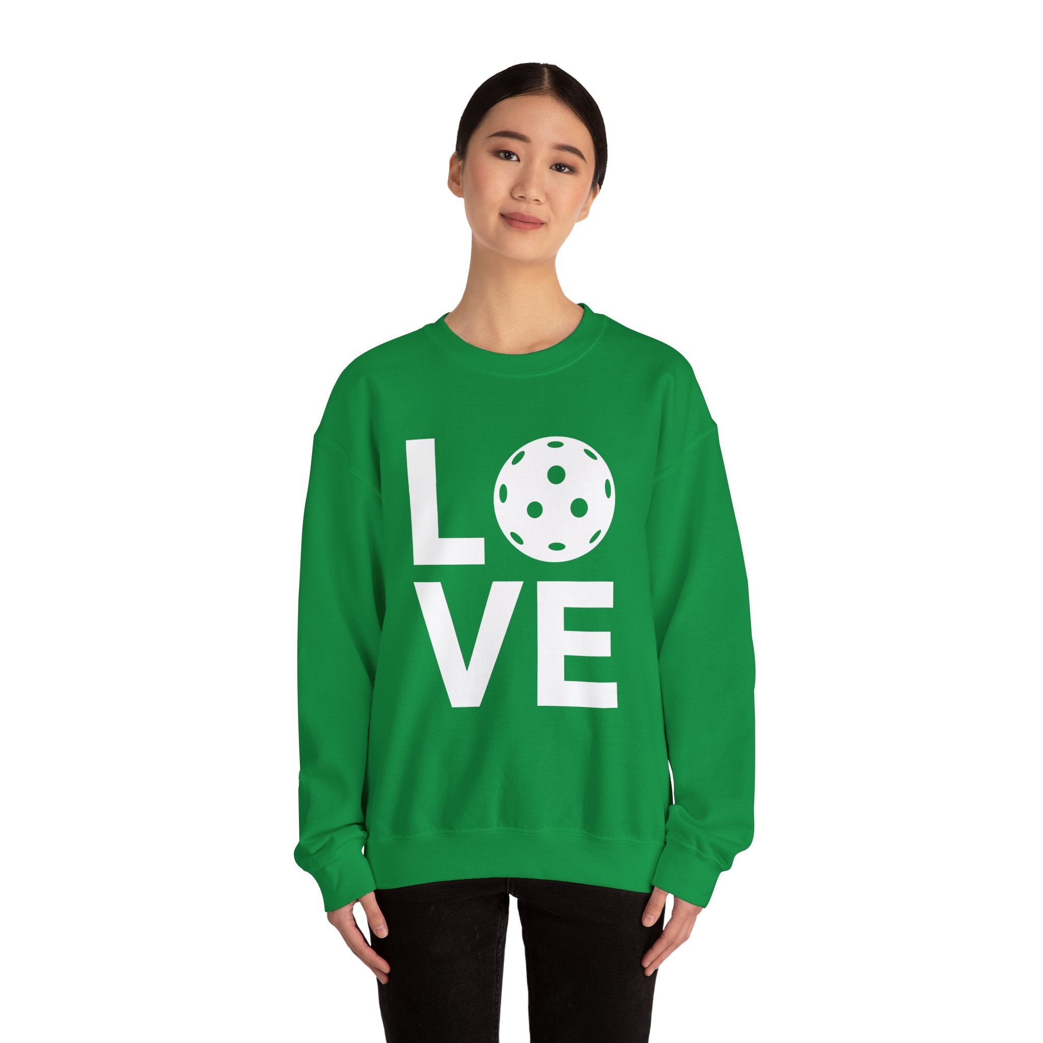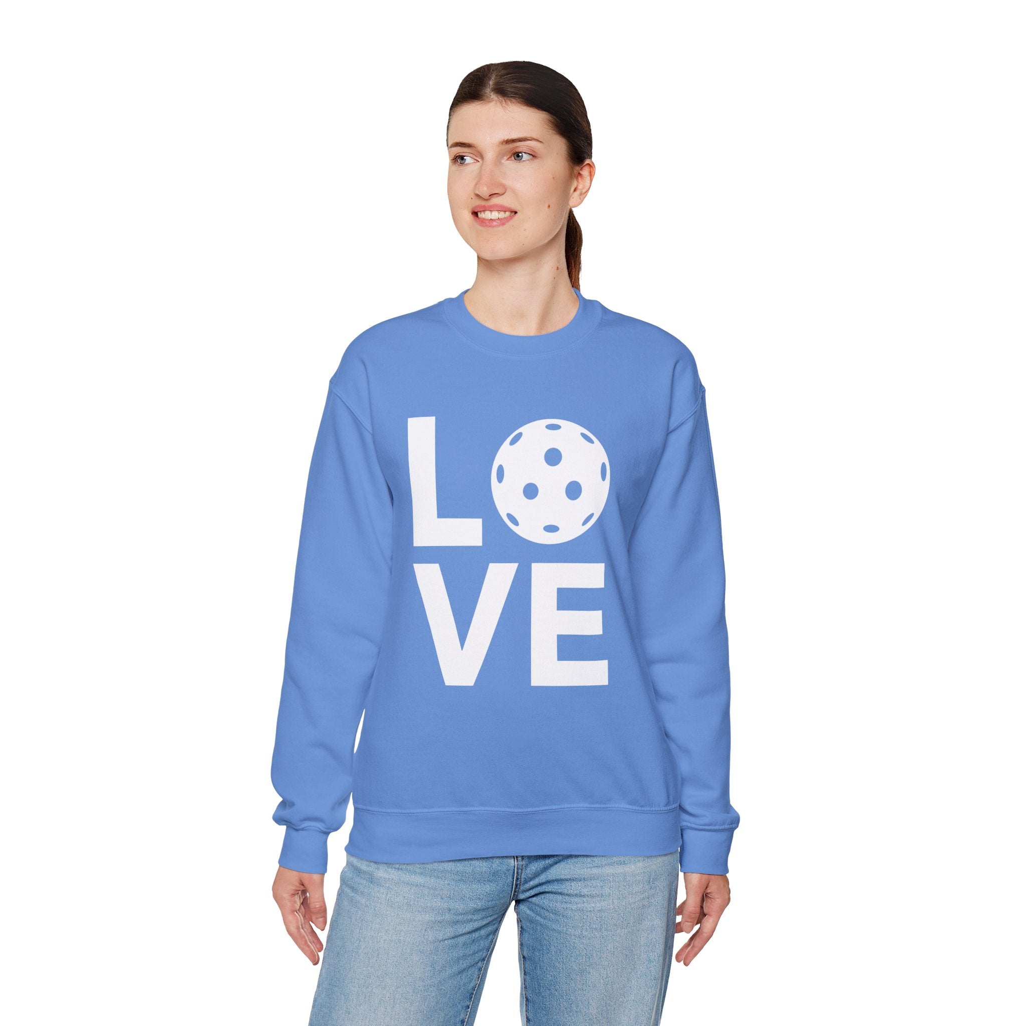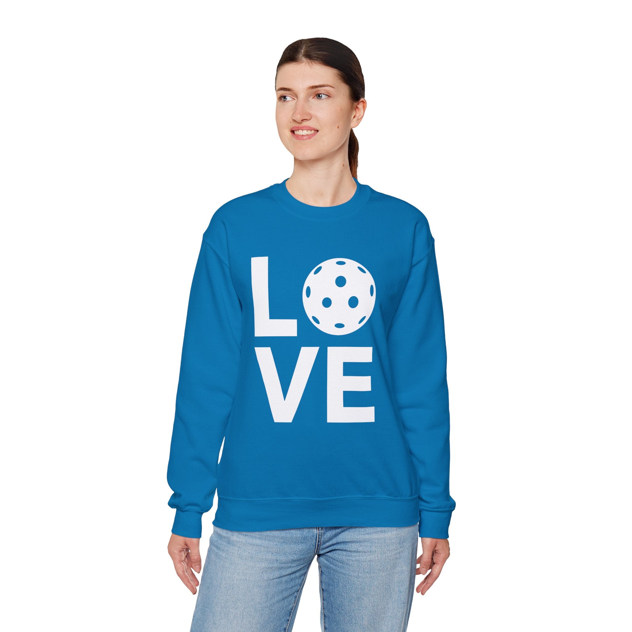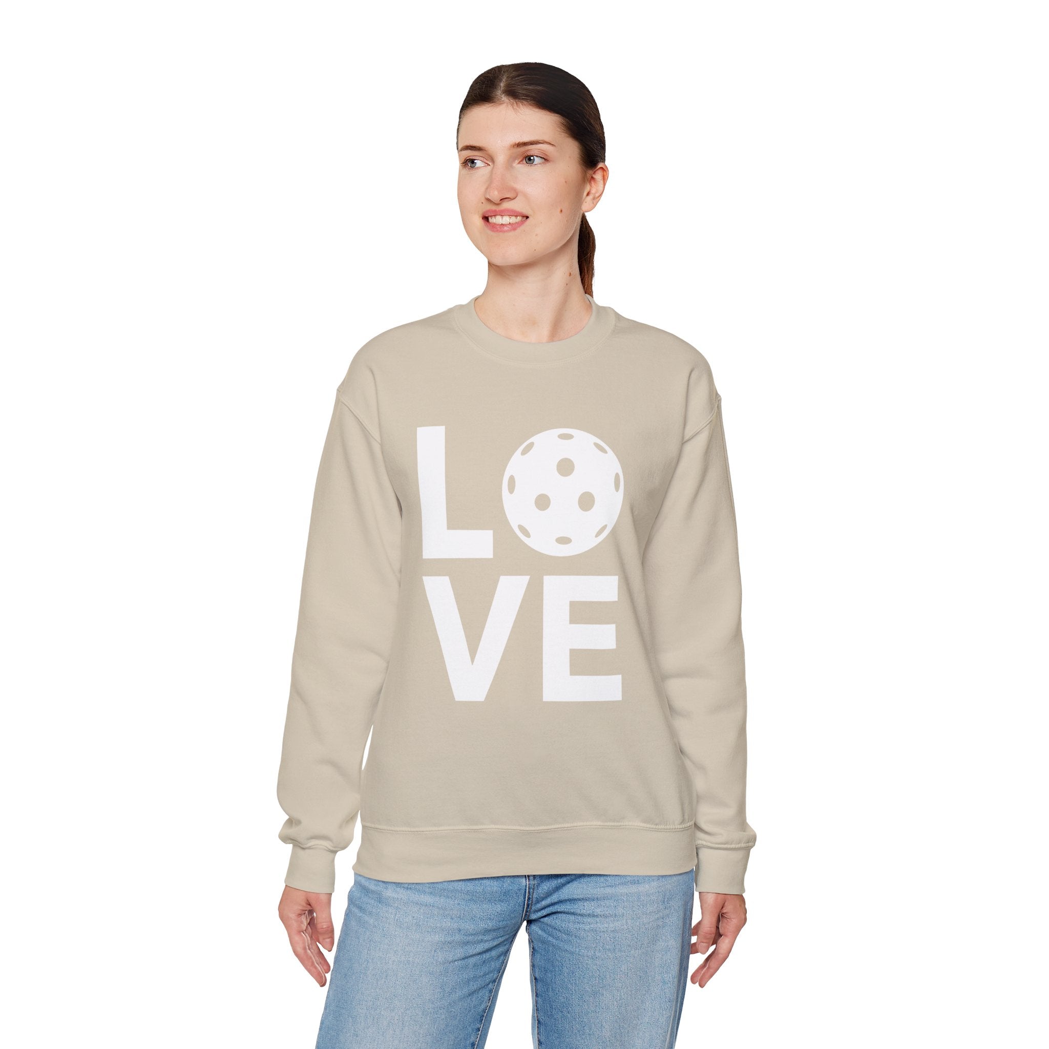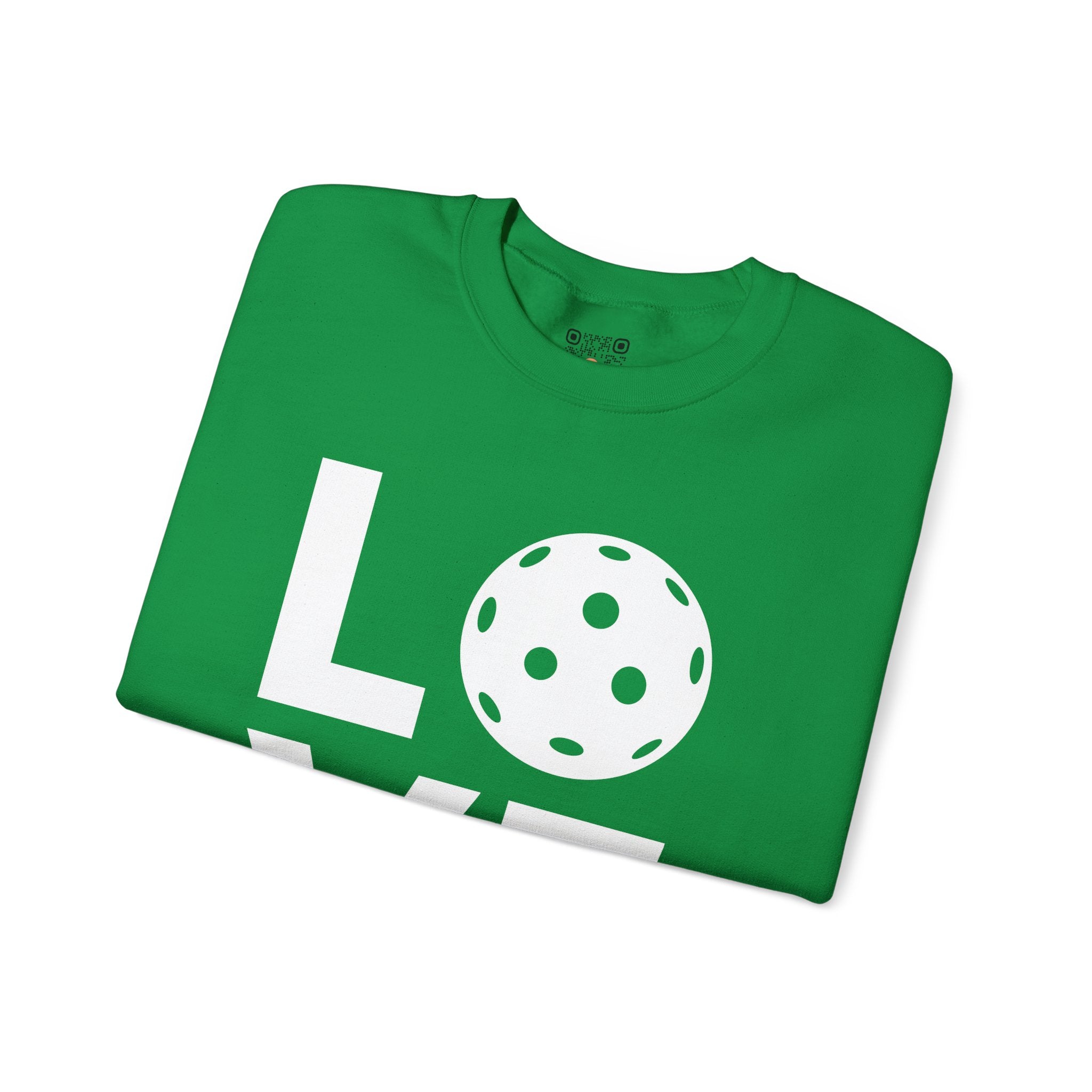 Pickleball Crewneck Sweatshirt - LOVE Pickleball with a White Pickleball - Pickleball Sweatshirt for Women & Men