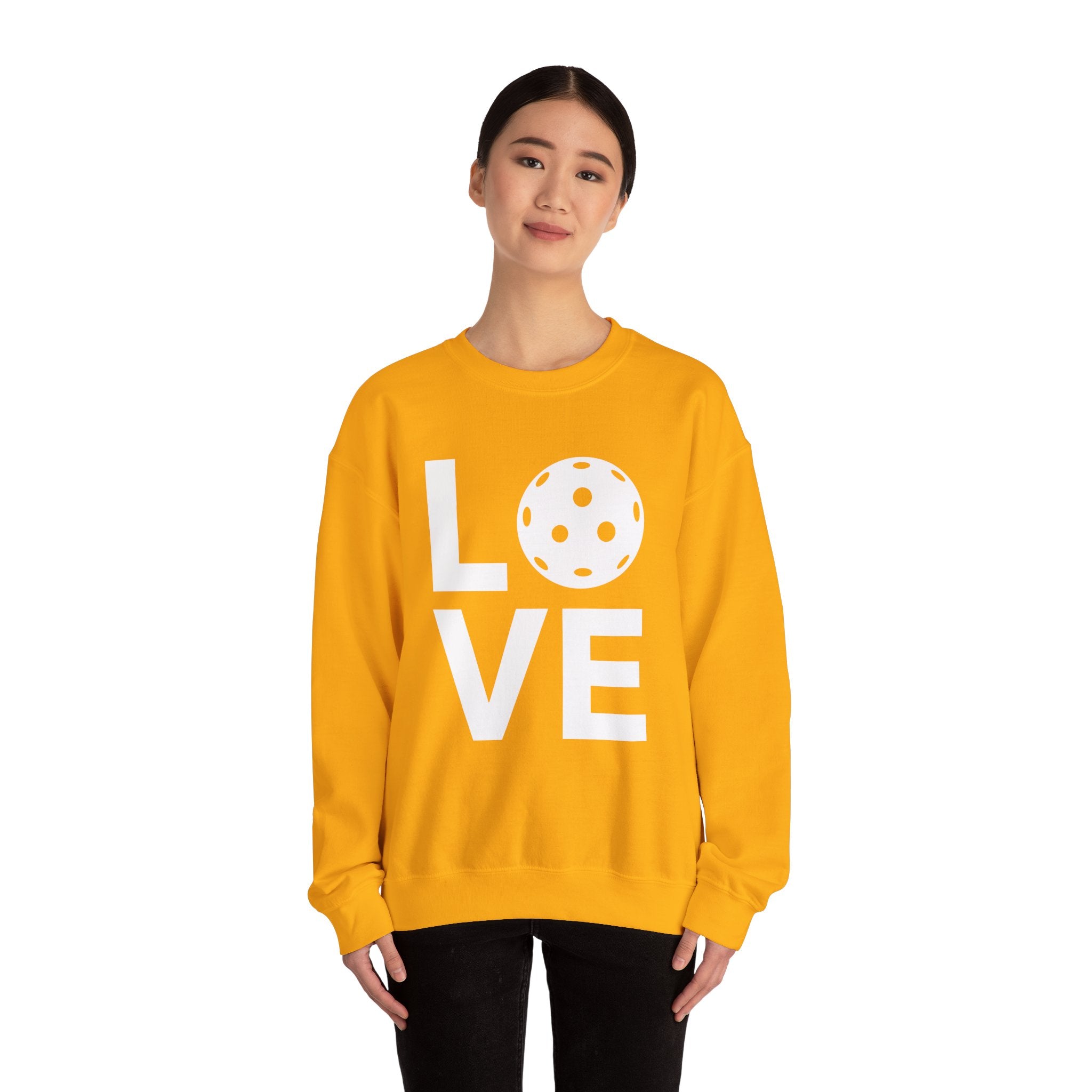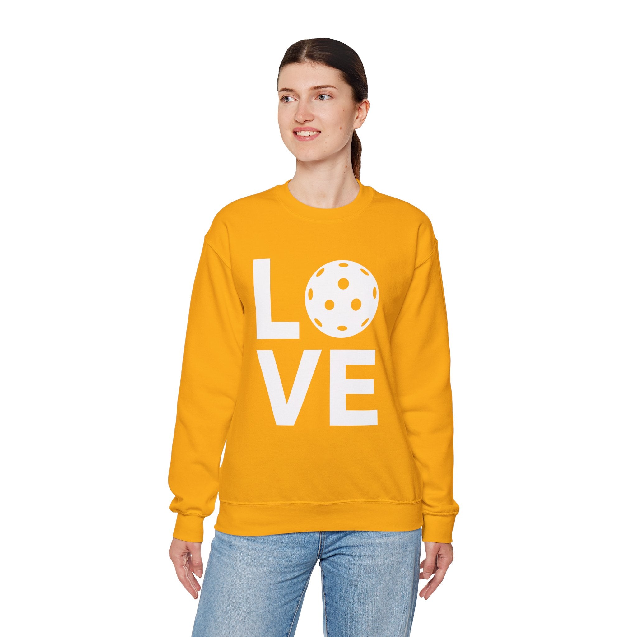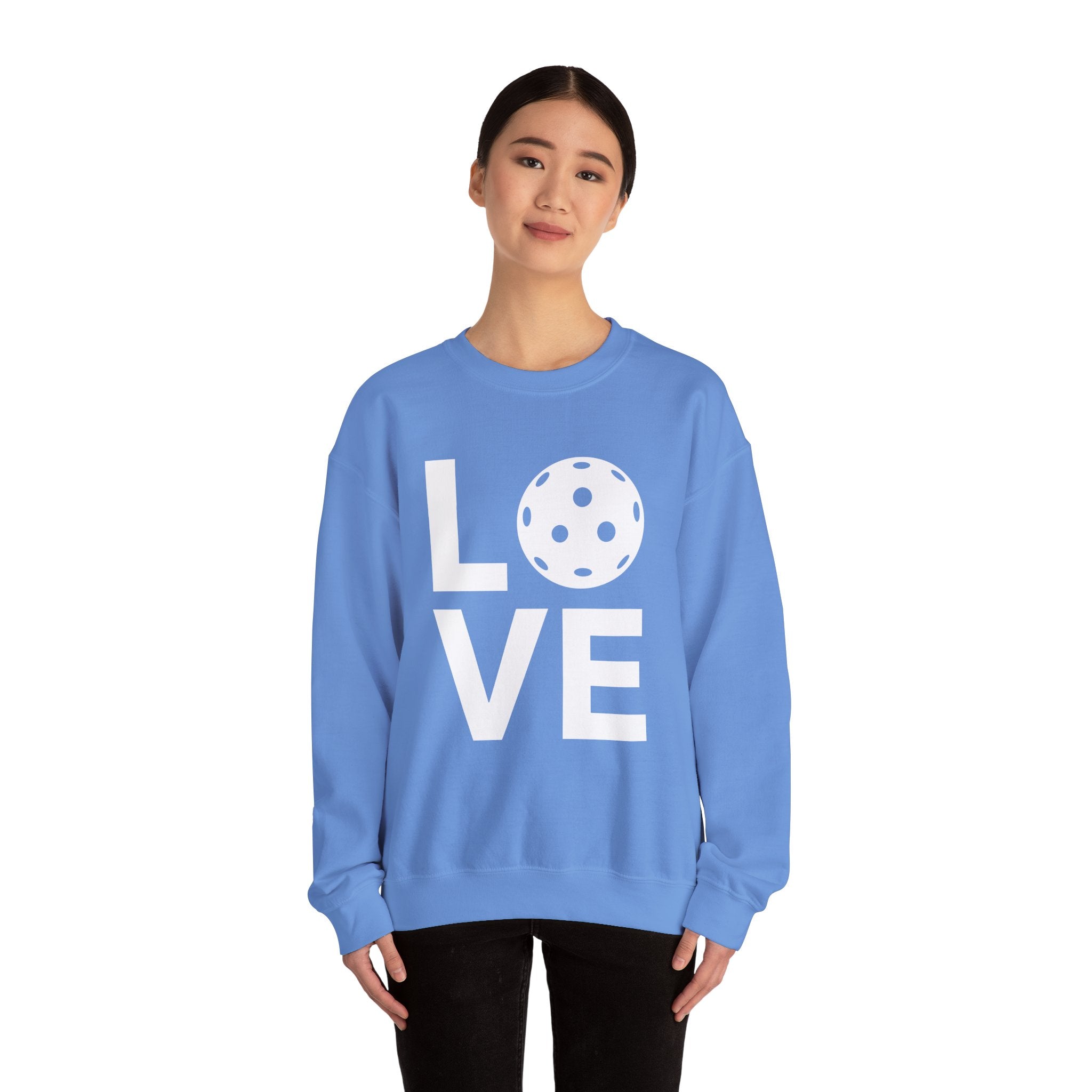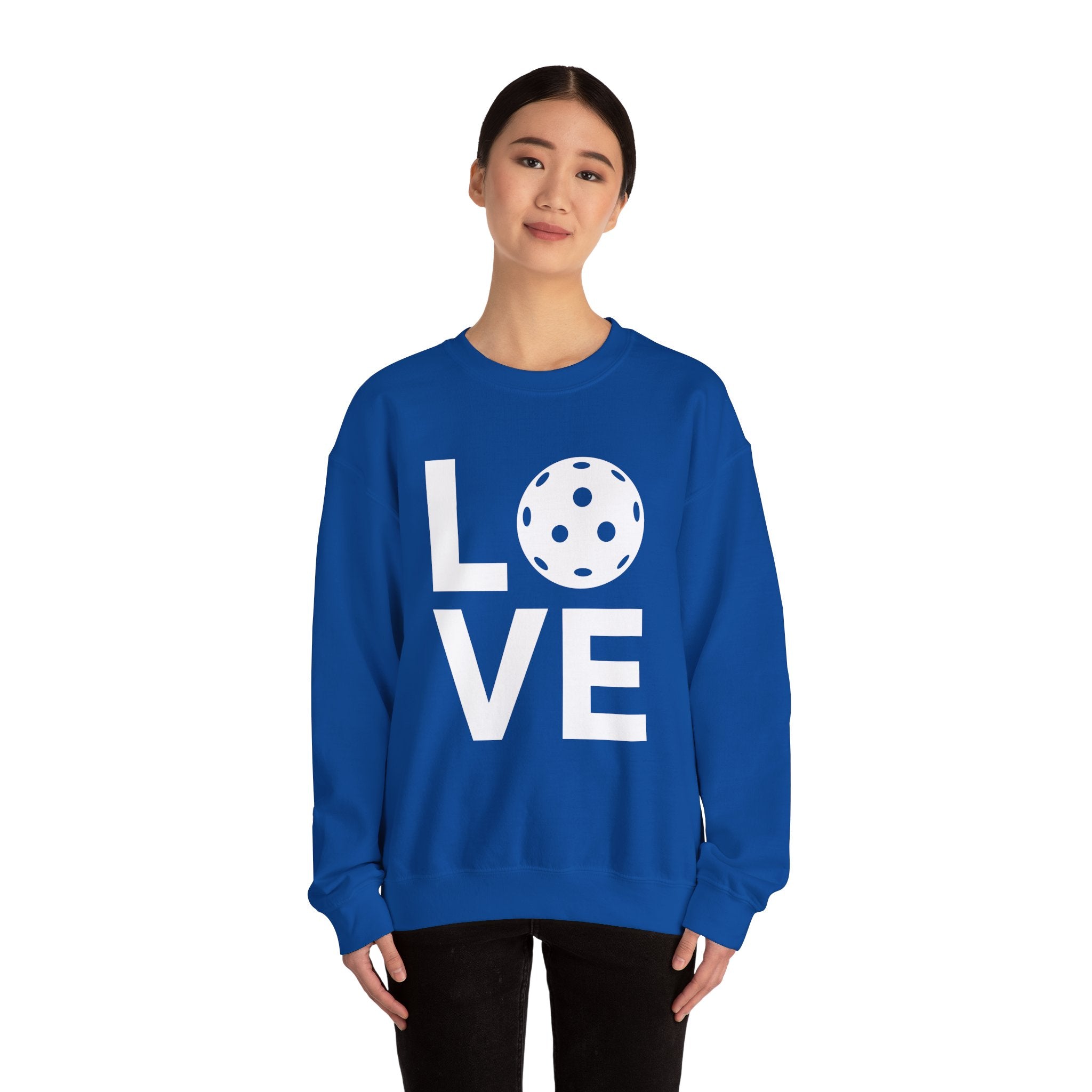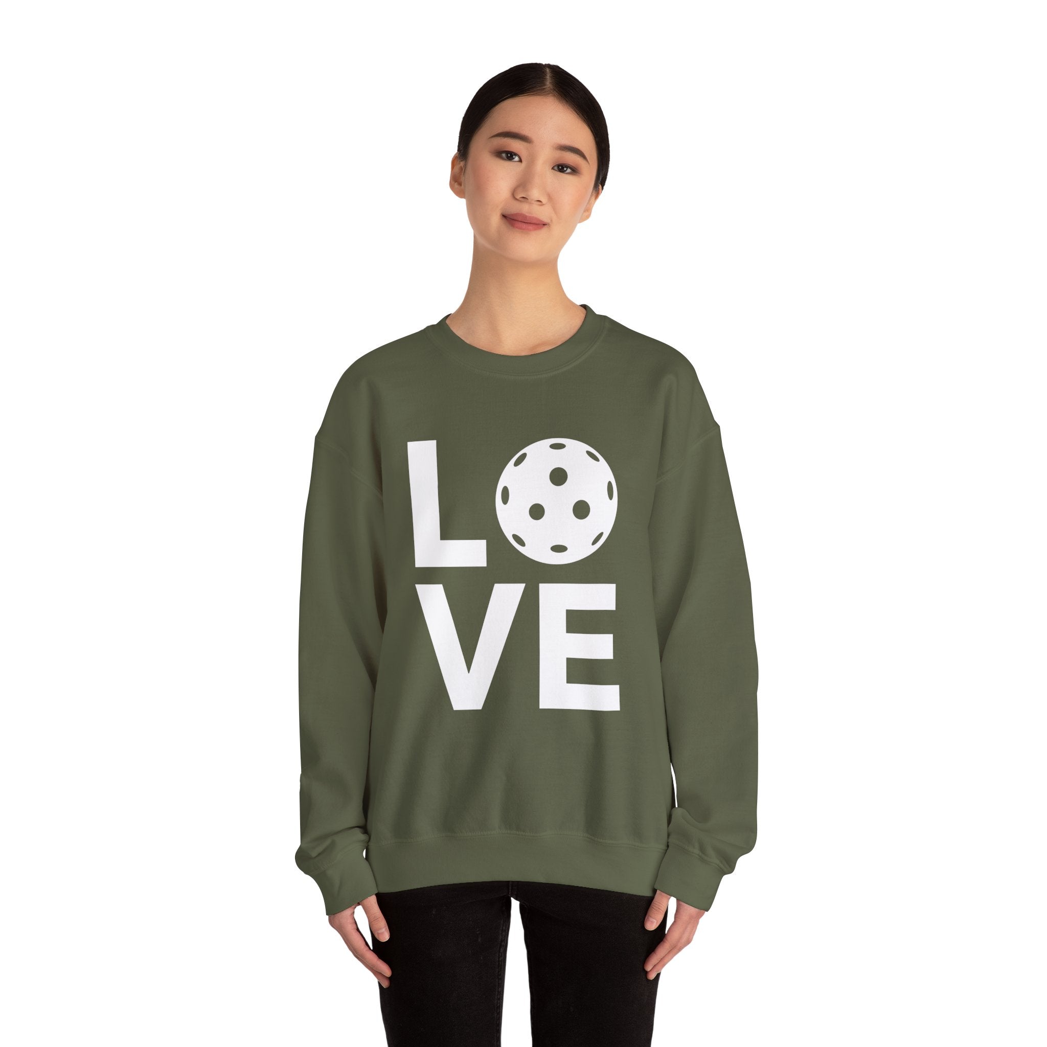 Pickleball Crewneck Sweatshirt - LOVE Pickleball with a White Pickleball - Pickleball Sweatshirt for Women & Men