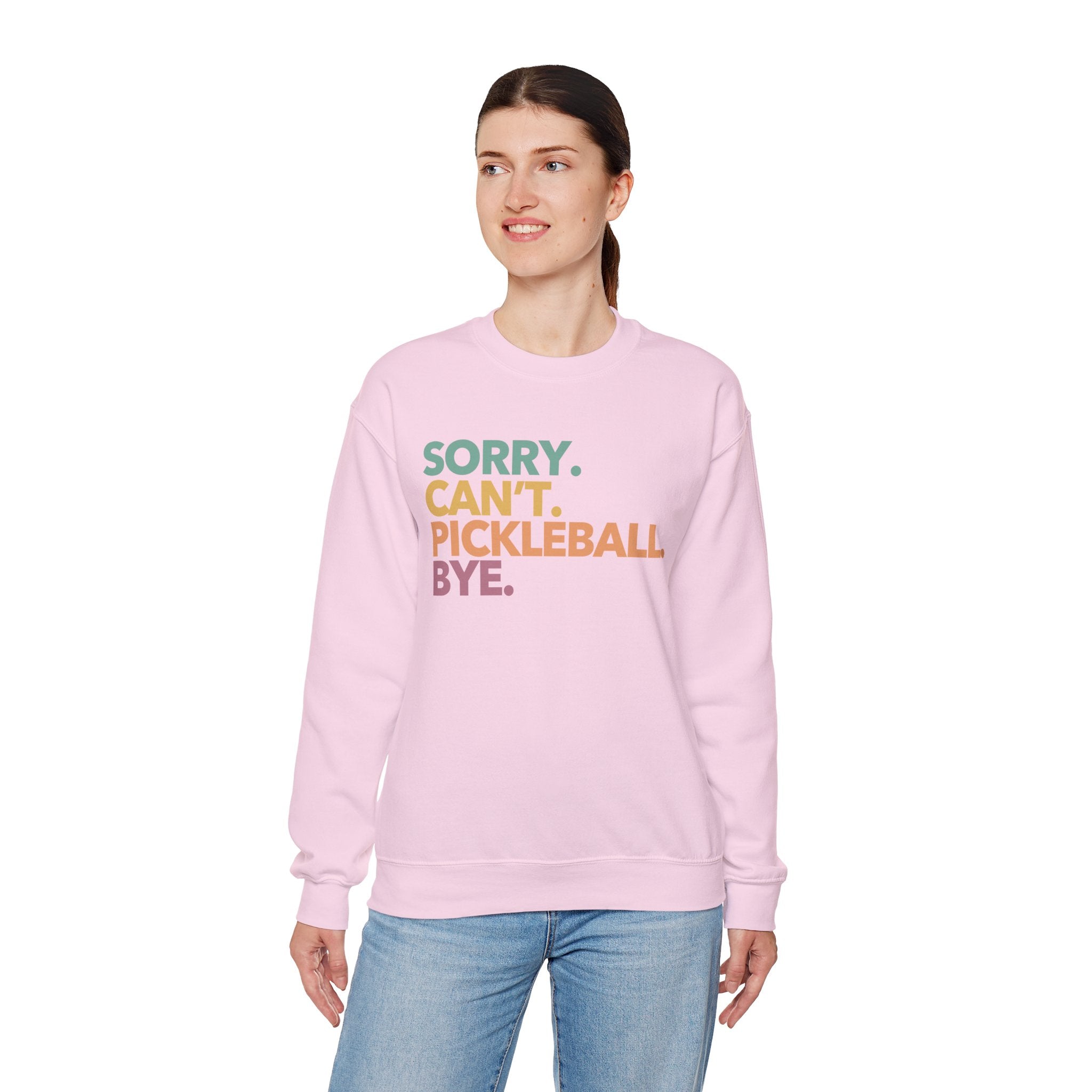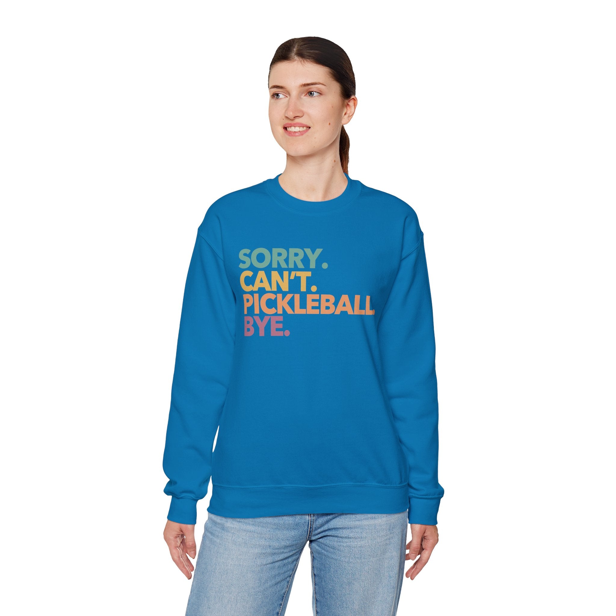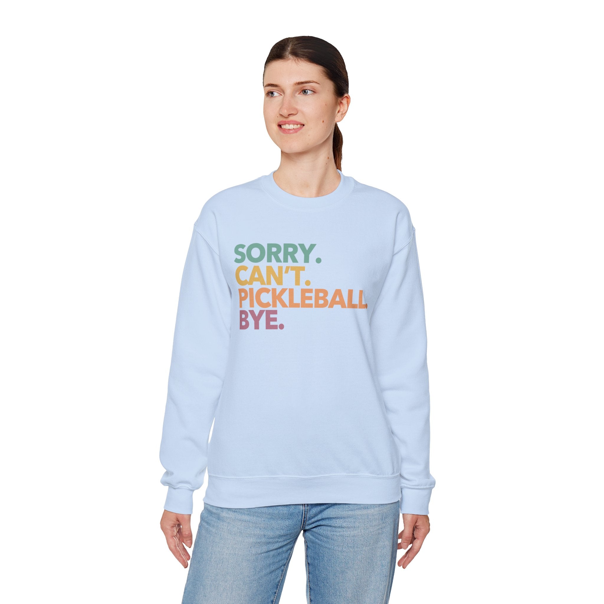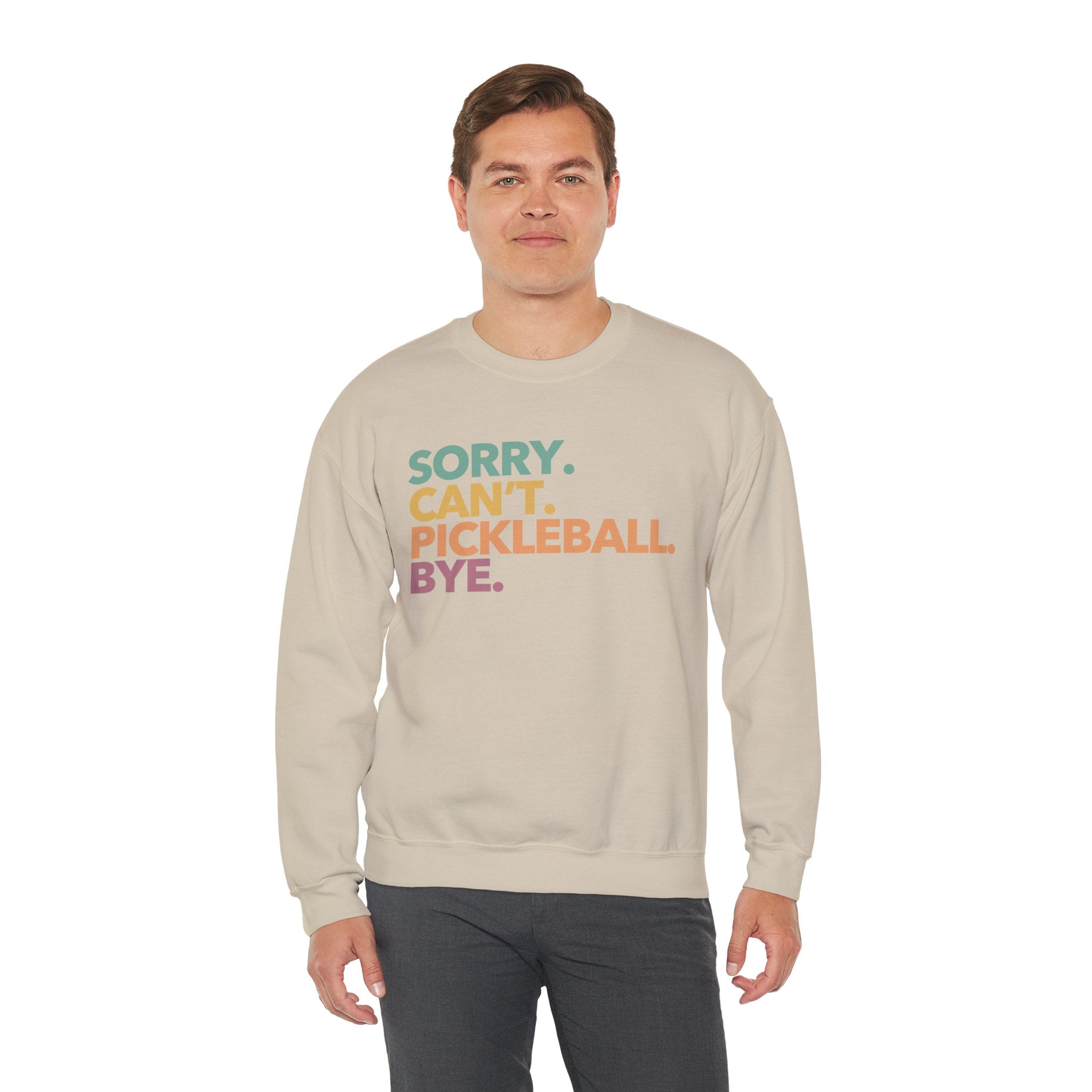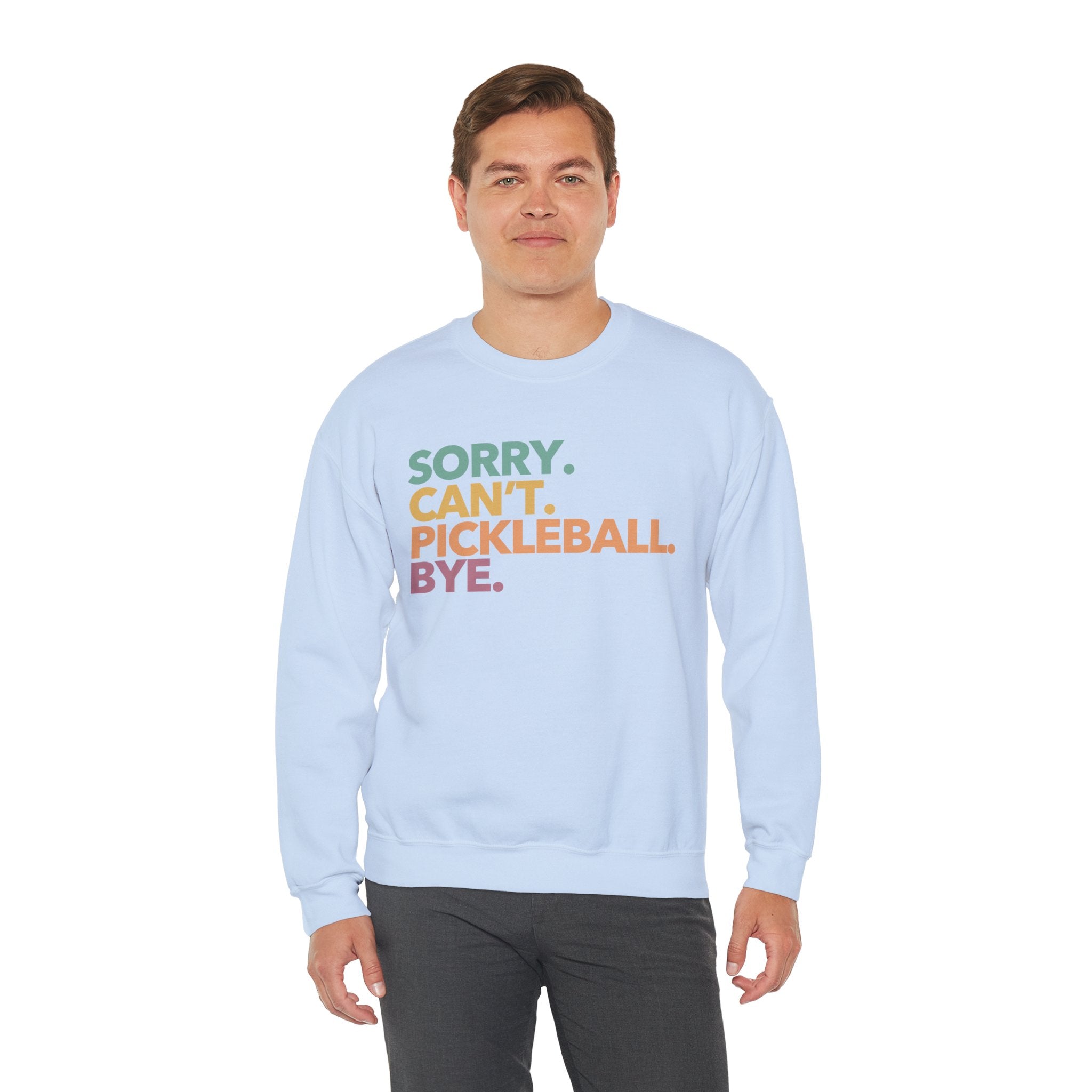 Pickleball Crewneck Sweatshirt - Colorful 'Sorry. Can't. Pickleball. Bye.' - Pickleball Sweatshirt for Women & Men