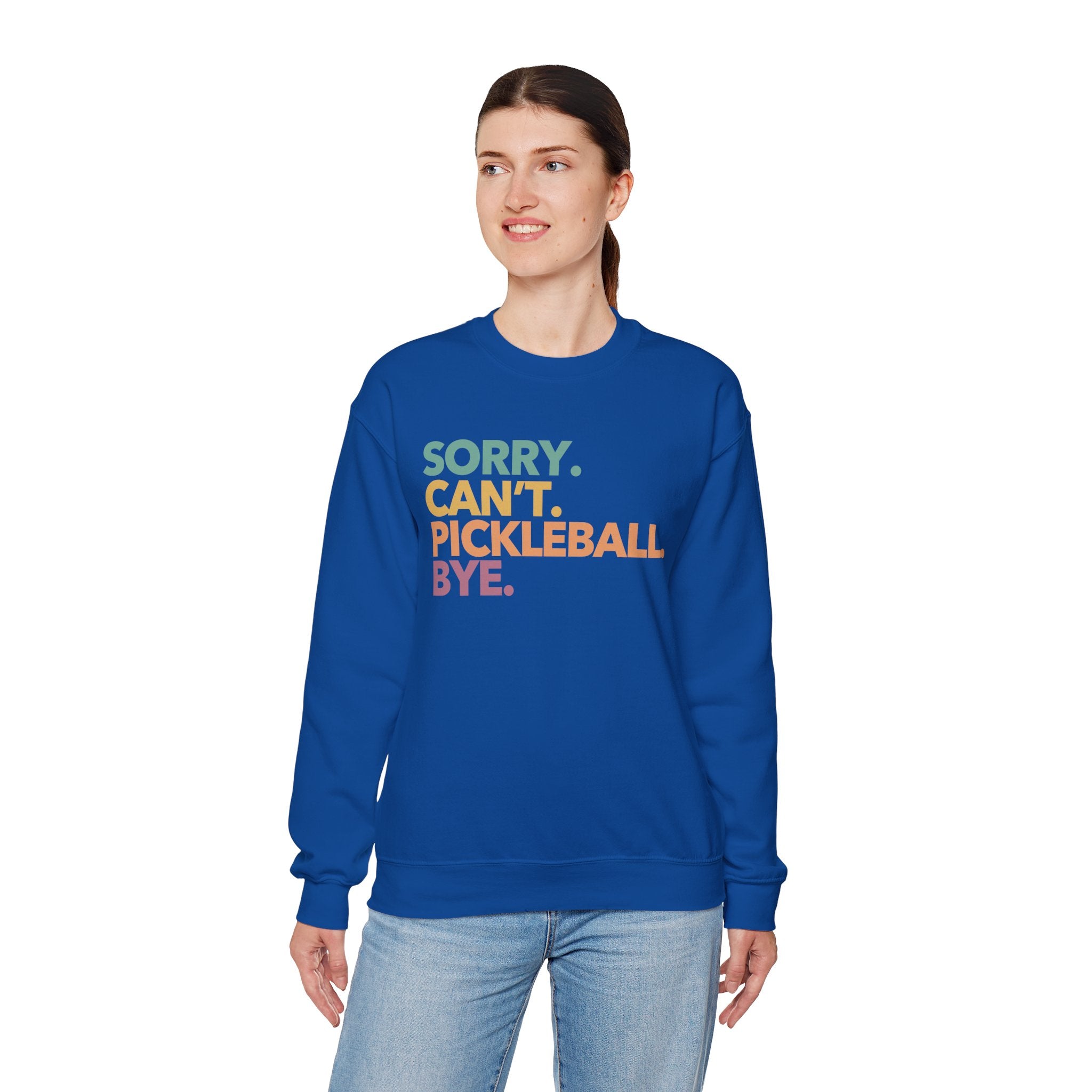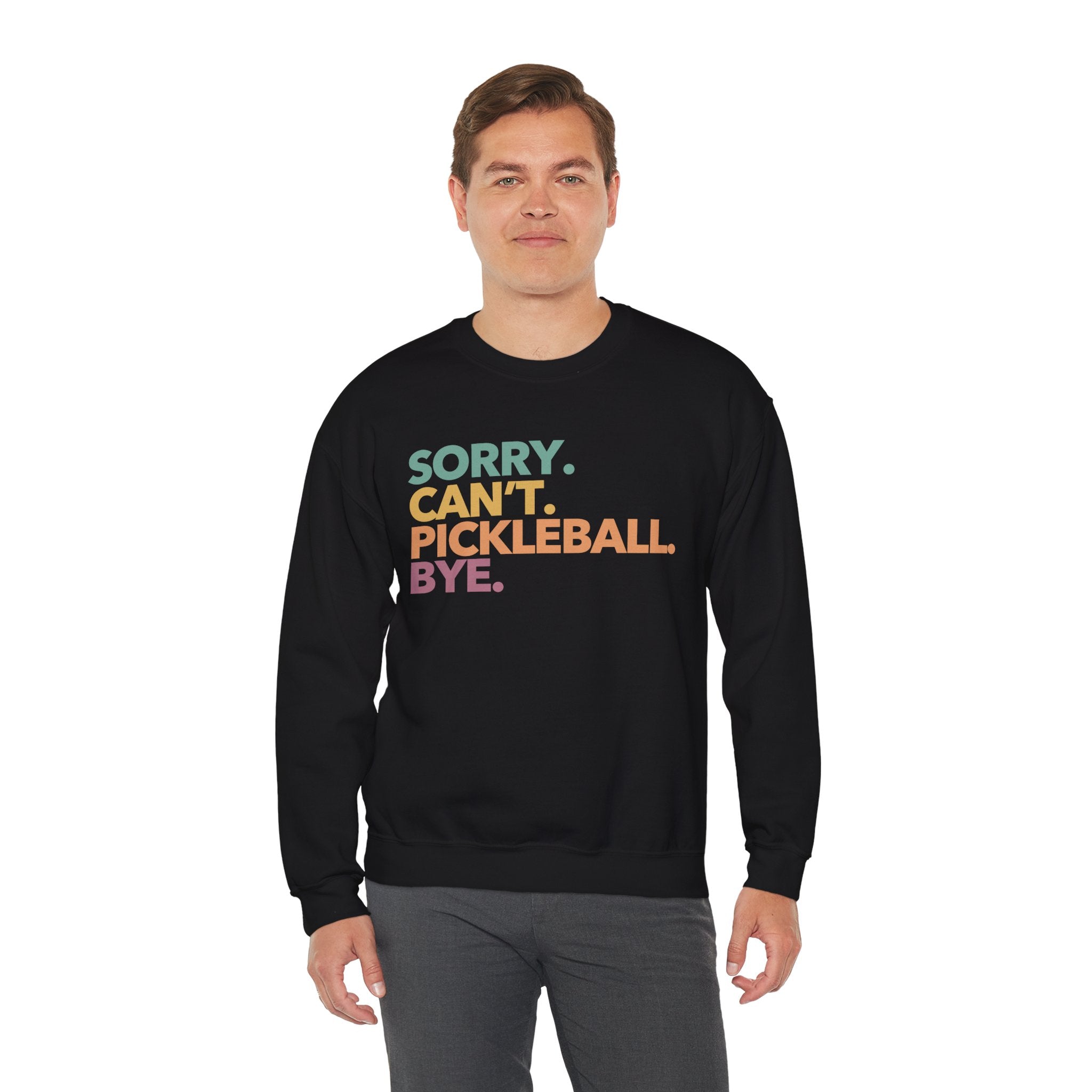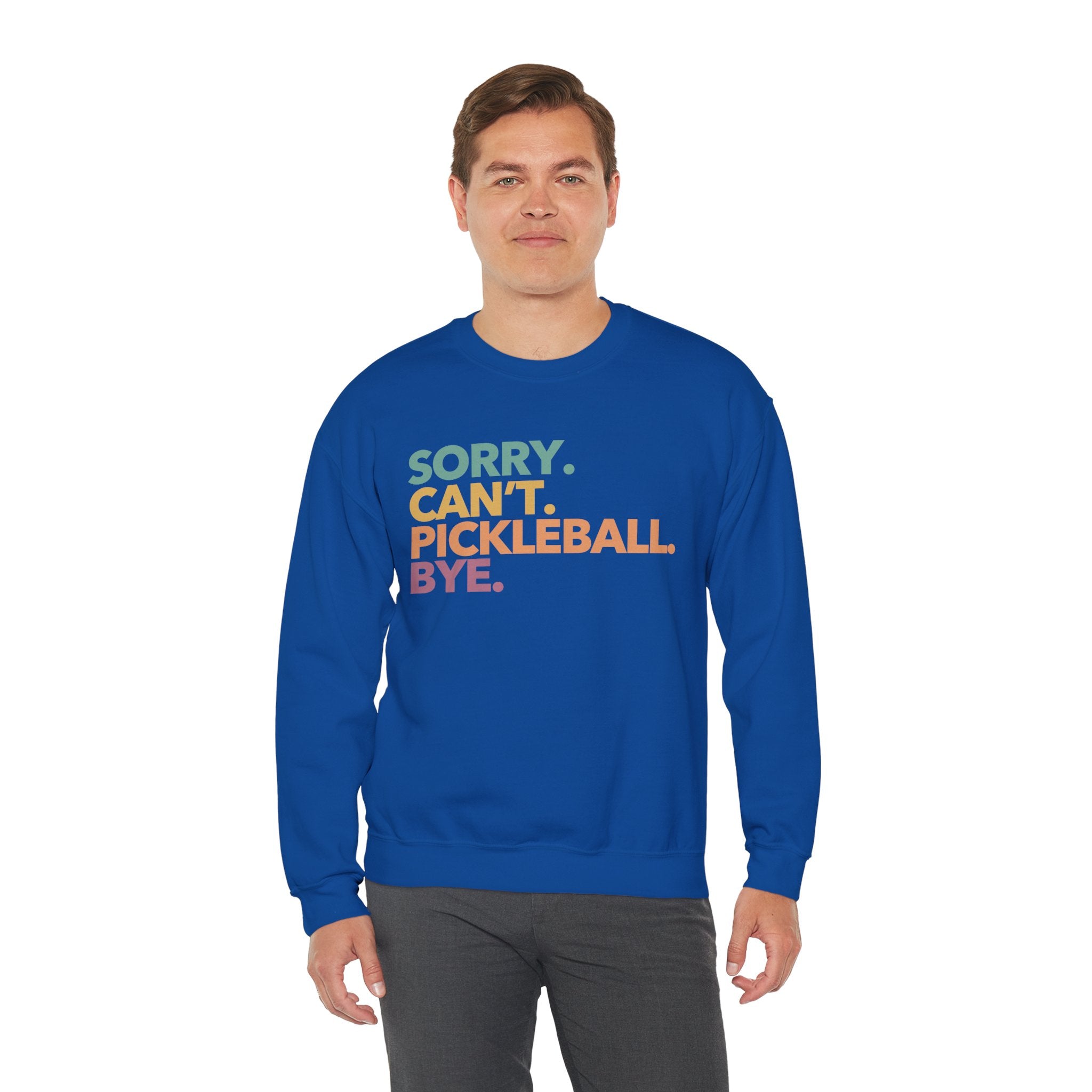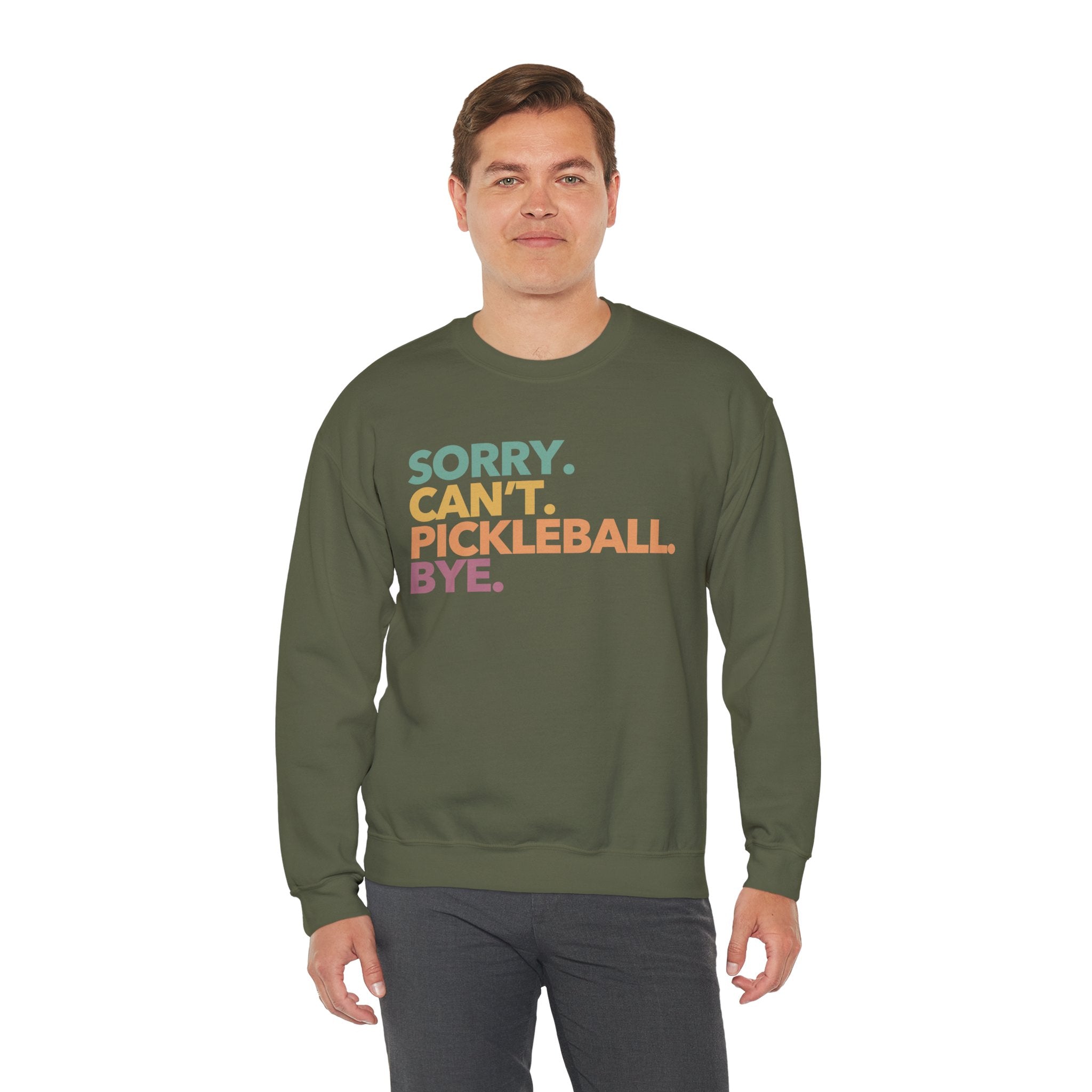 Pickleball Crewneck Sweatshirt - Colorful 'Sorry. Can't. Pickleball. Bye.' - Pickleball Sweatshirt for Women & Men