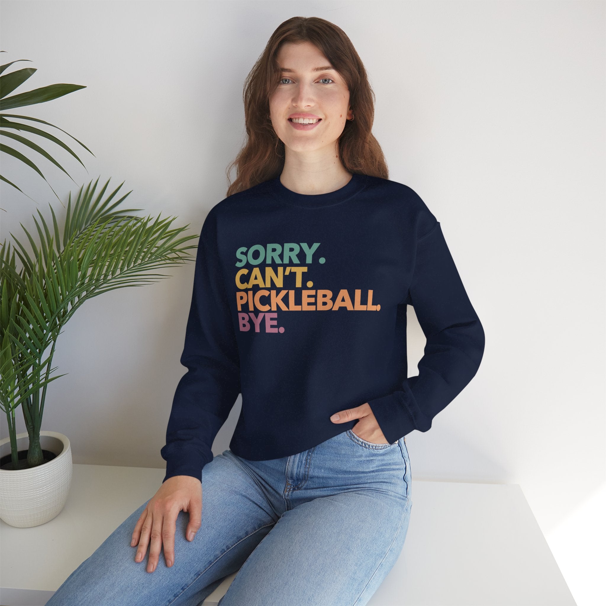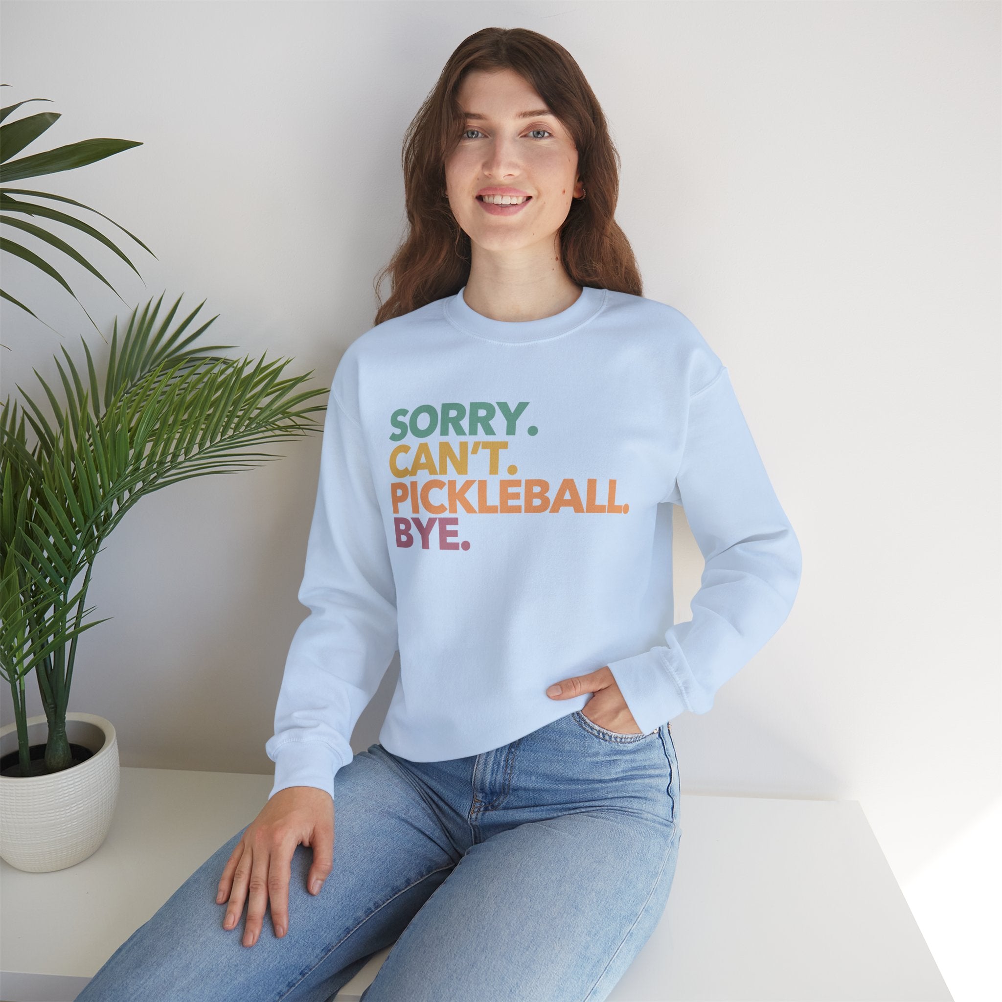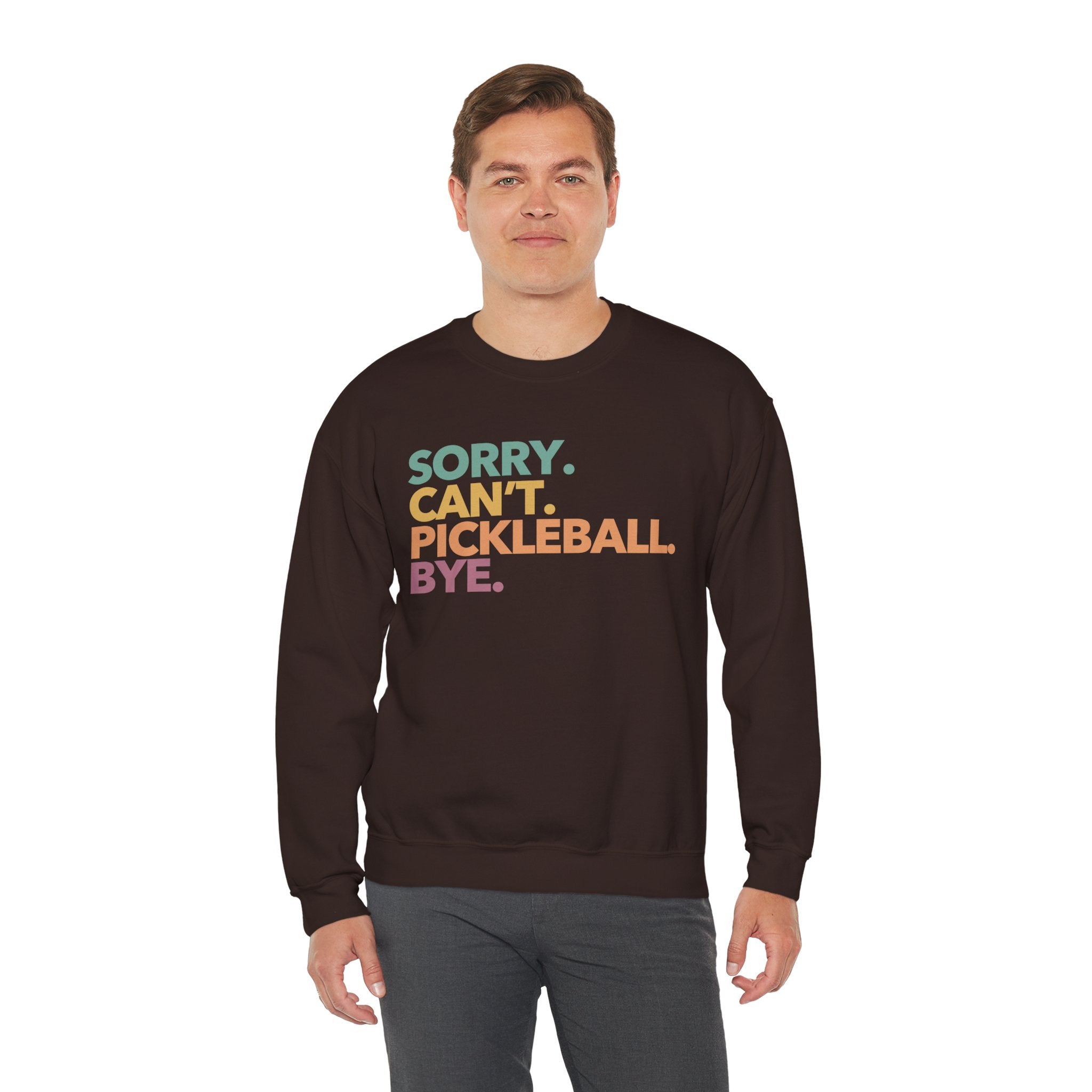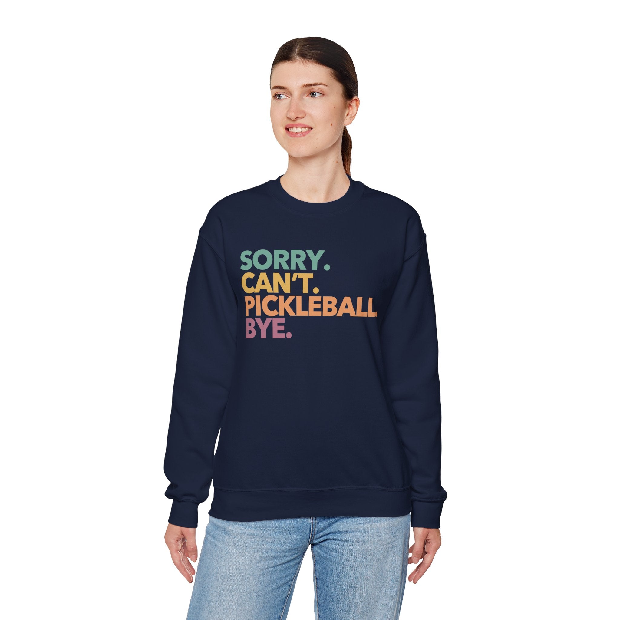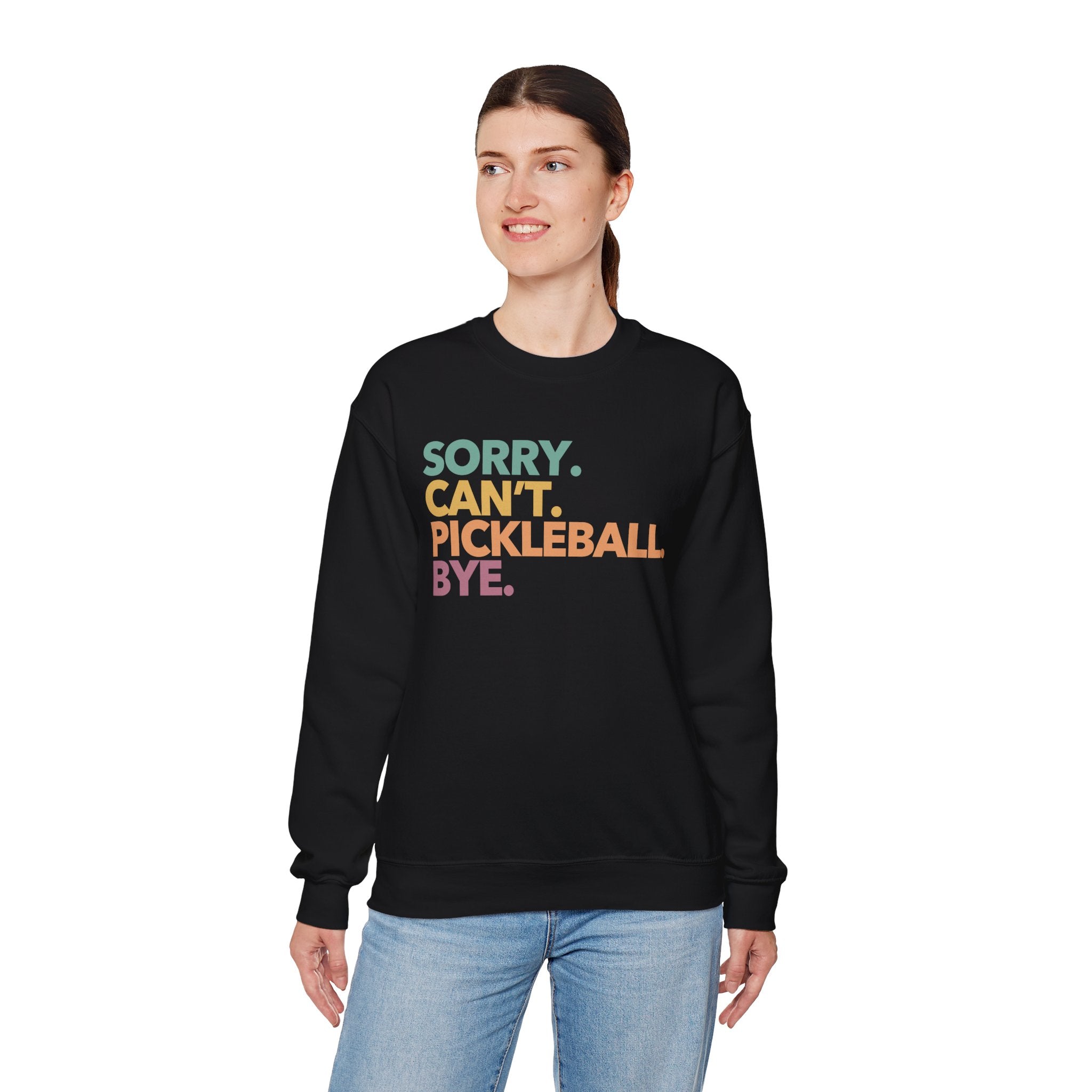 Pickleball Crewneck Sweatshirt - Colorful 'Sorry. Can't. Pickleball. Bye.' - Pickleball Sweatshirt for Women & Men