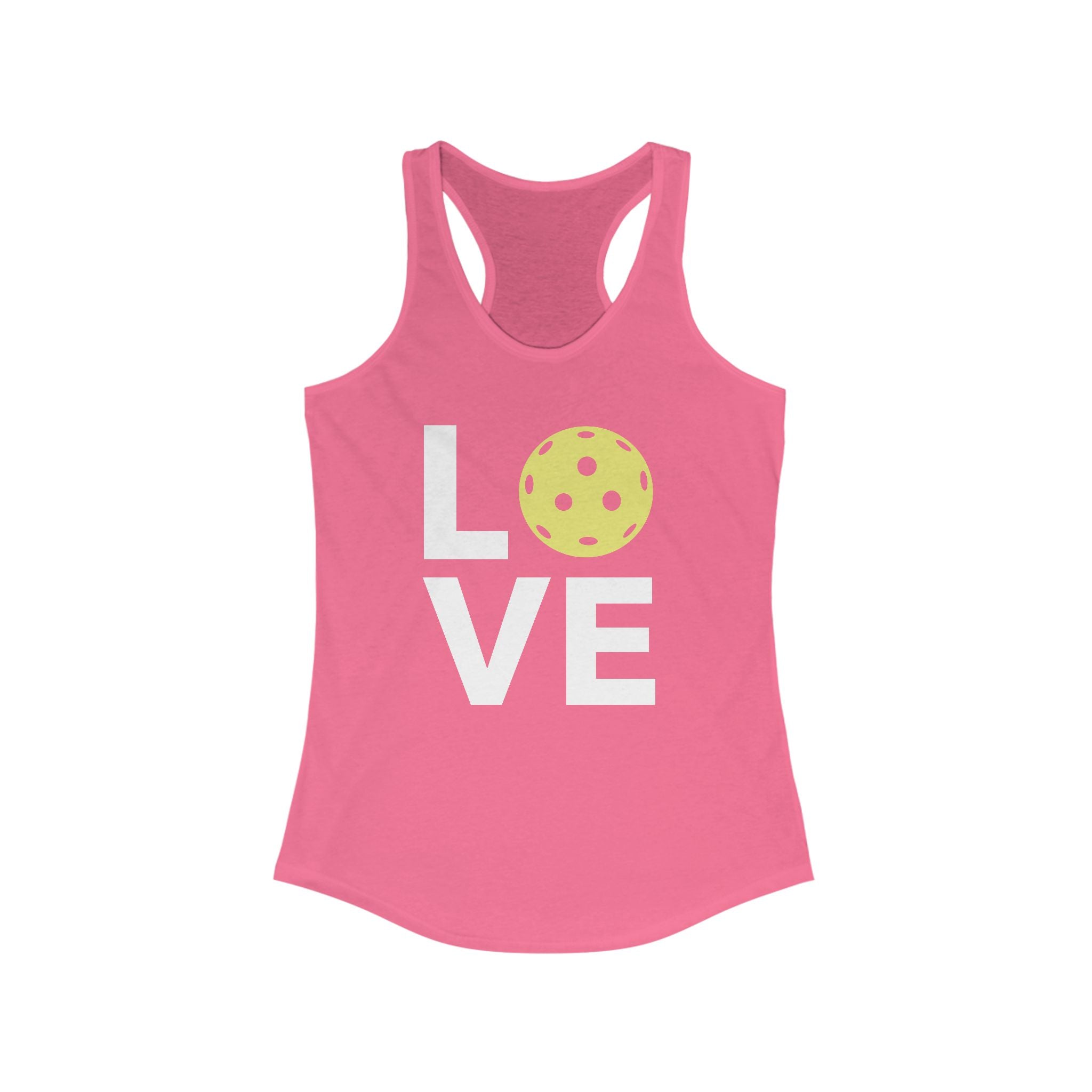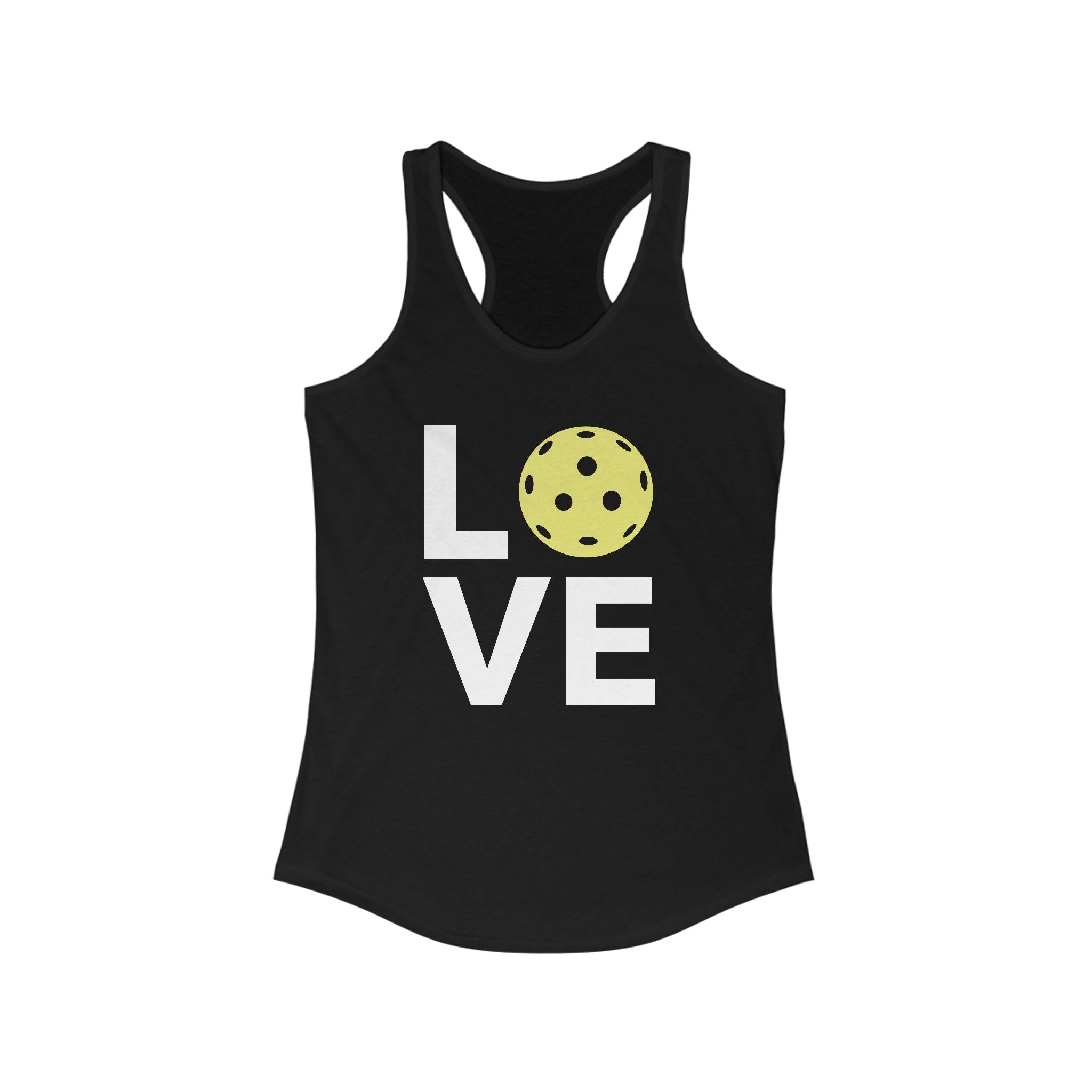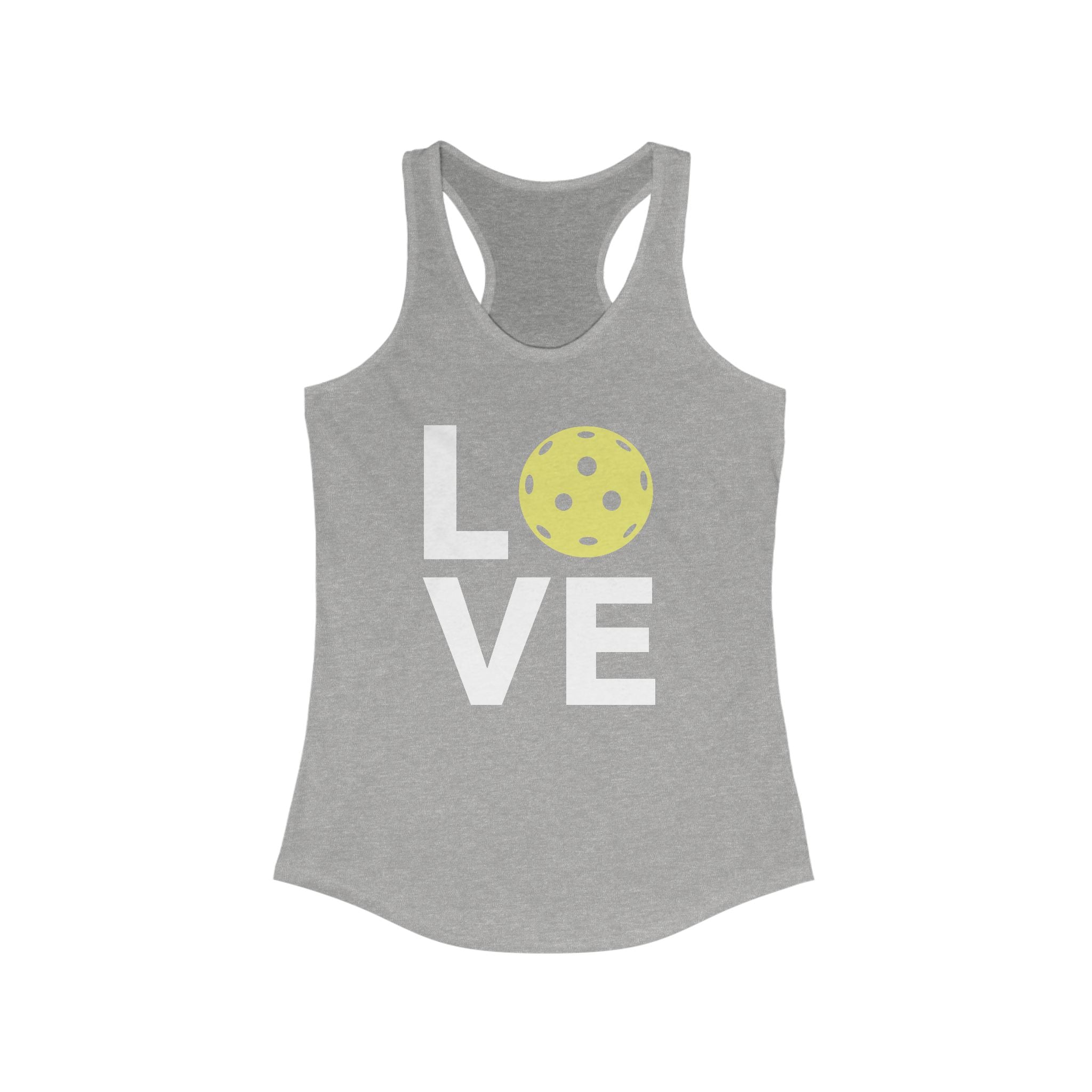 Pickleball Racerback Slim Fit Women's Tank Top - LOVE Pickleball with Yellow Pickleball - Pickleball Tank Top for Women