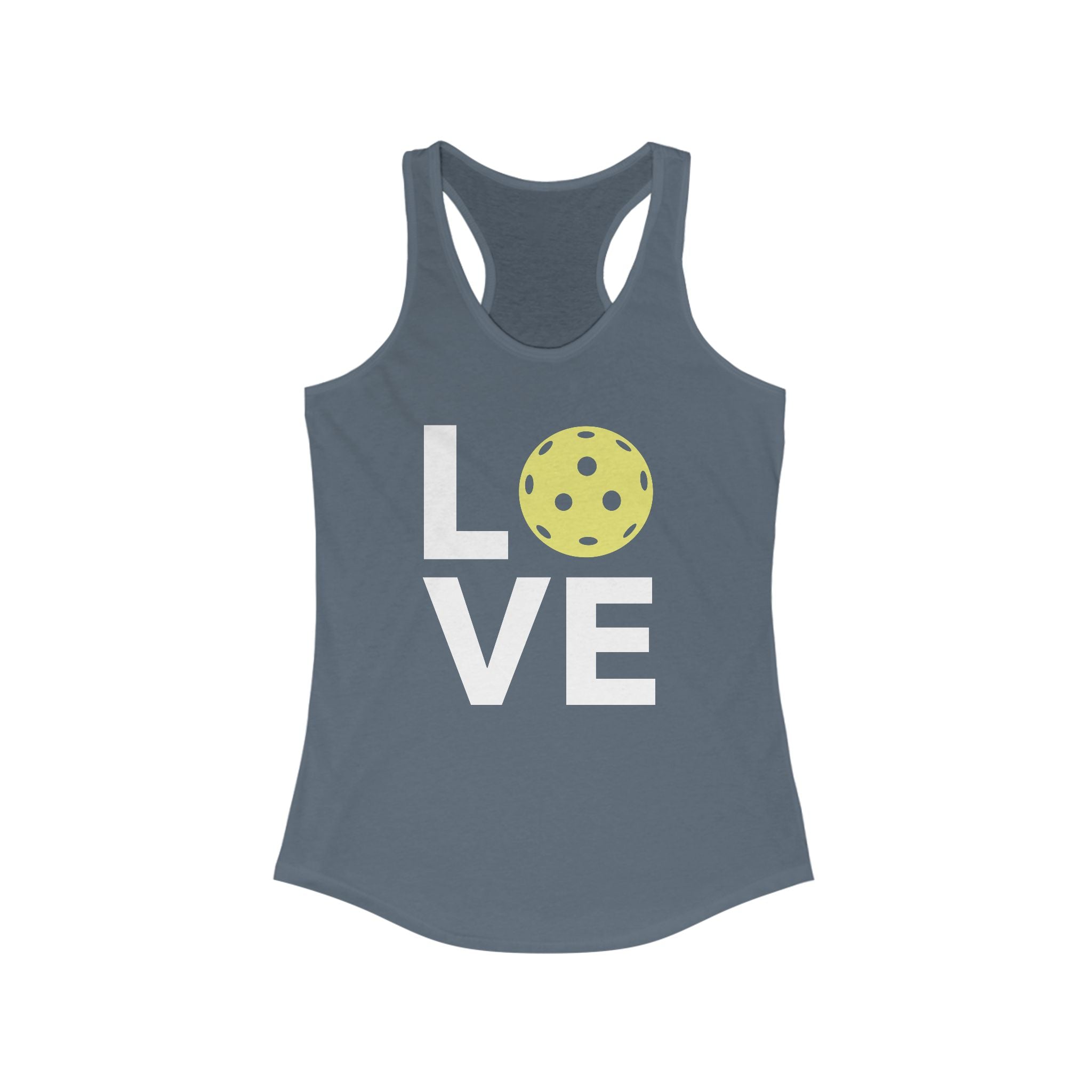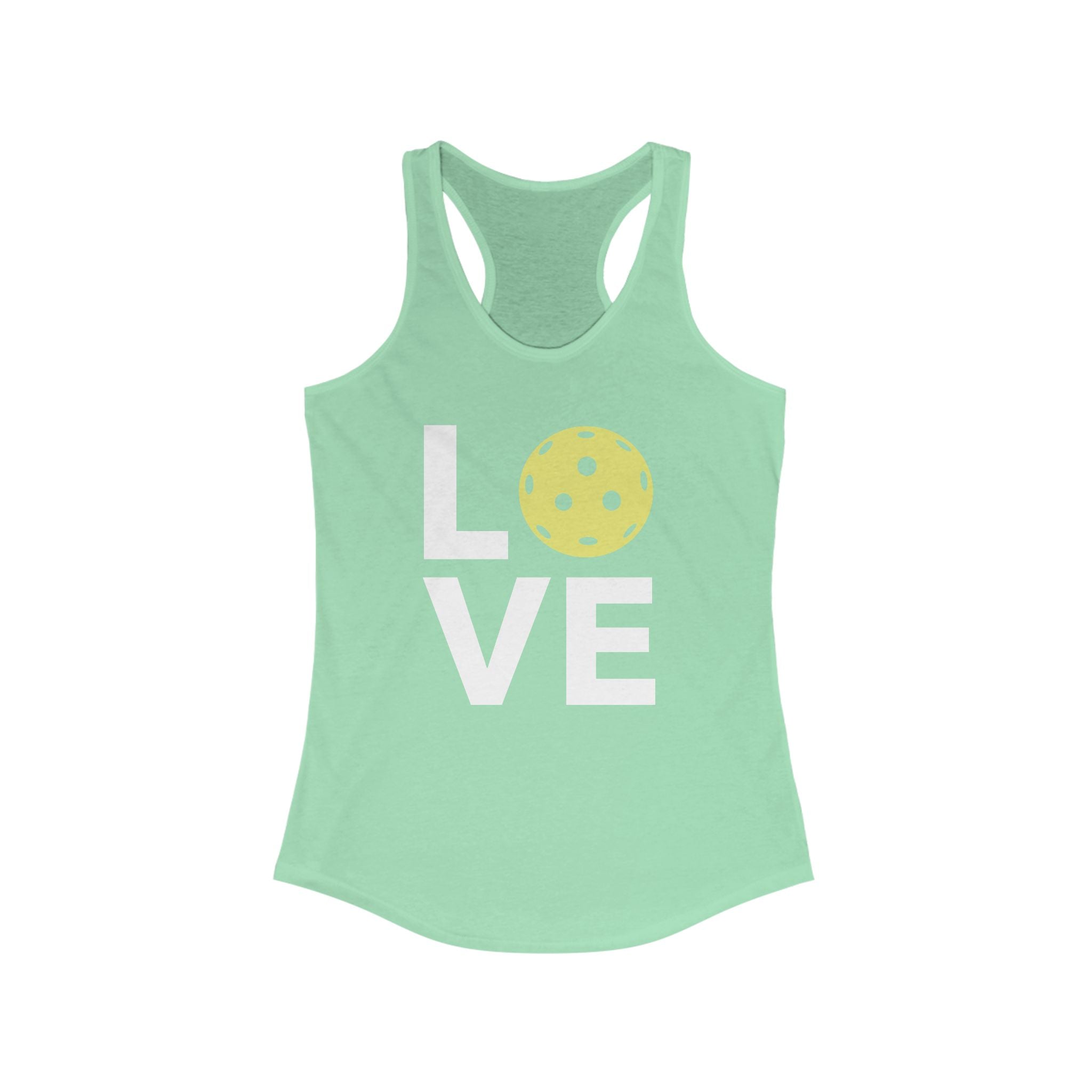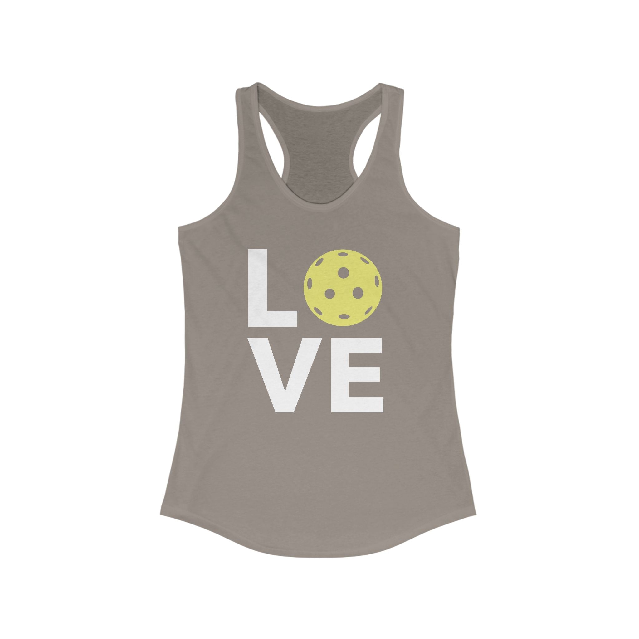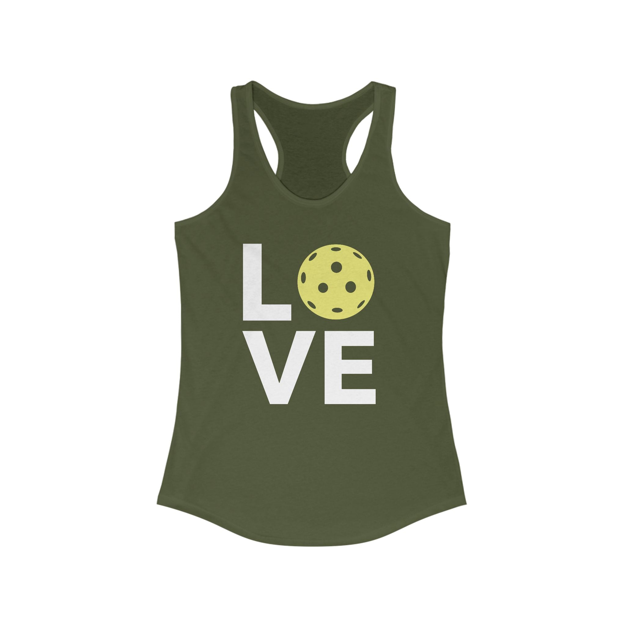 Pickleball Racerback Slim Fit Women's Tank Top - LOVE Pickleball with Yellow Pickleball - Pickleball Tank Top for Women