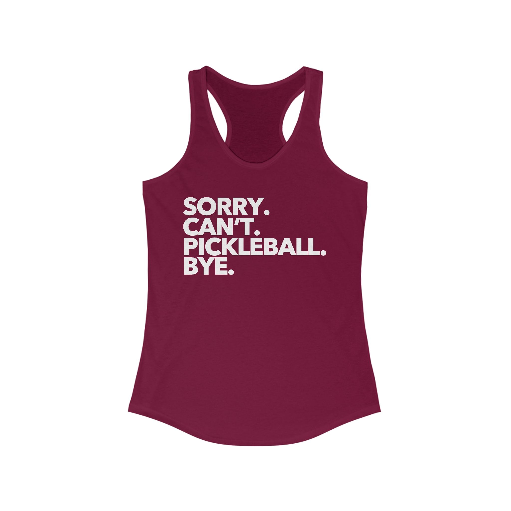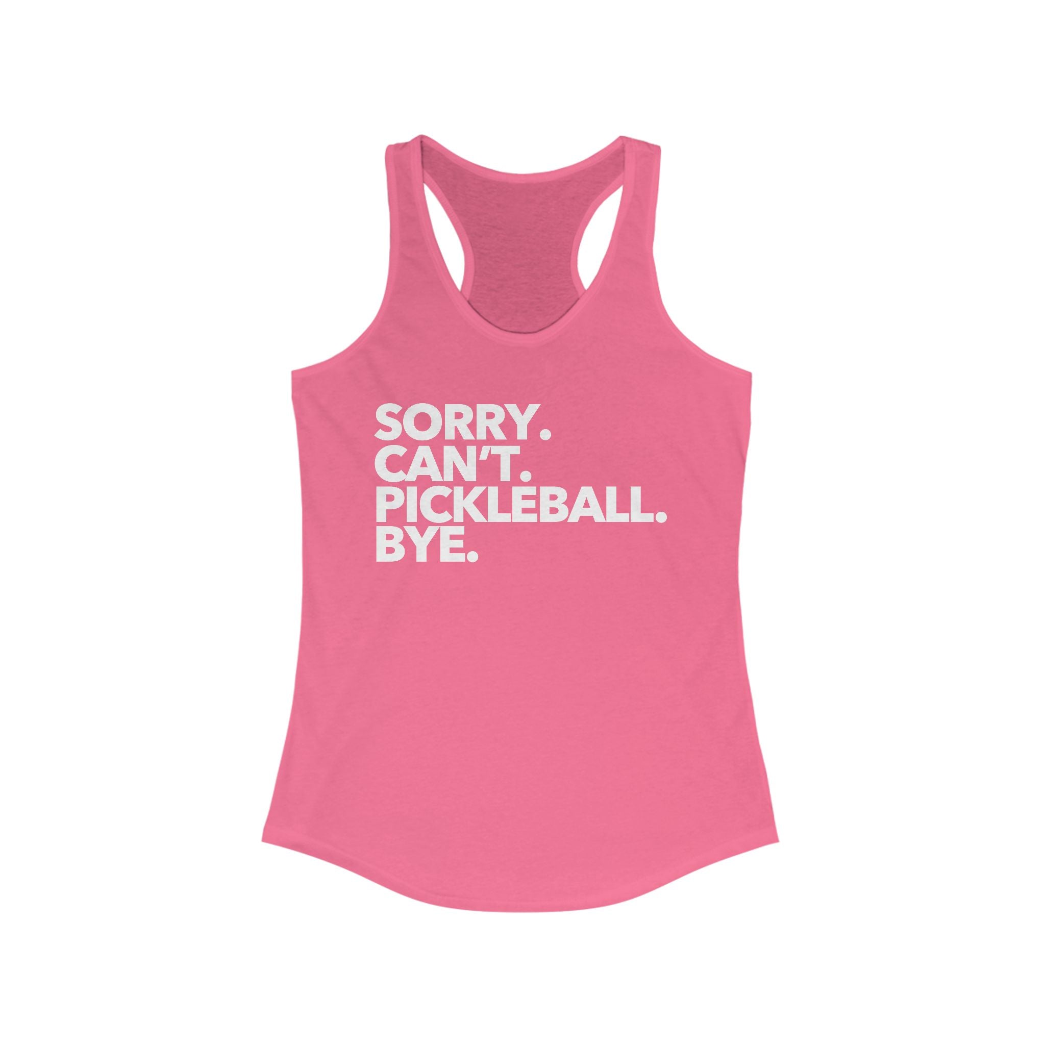 Pickleball Racerback Slim Fit Women's Tank Top - SORRY. CAN'T. PICKLEBALL. BYE. - Pickleball Tank Top for Women