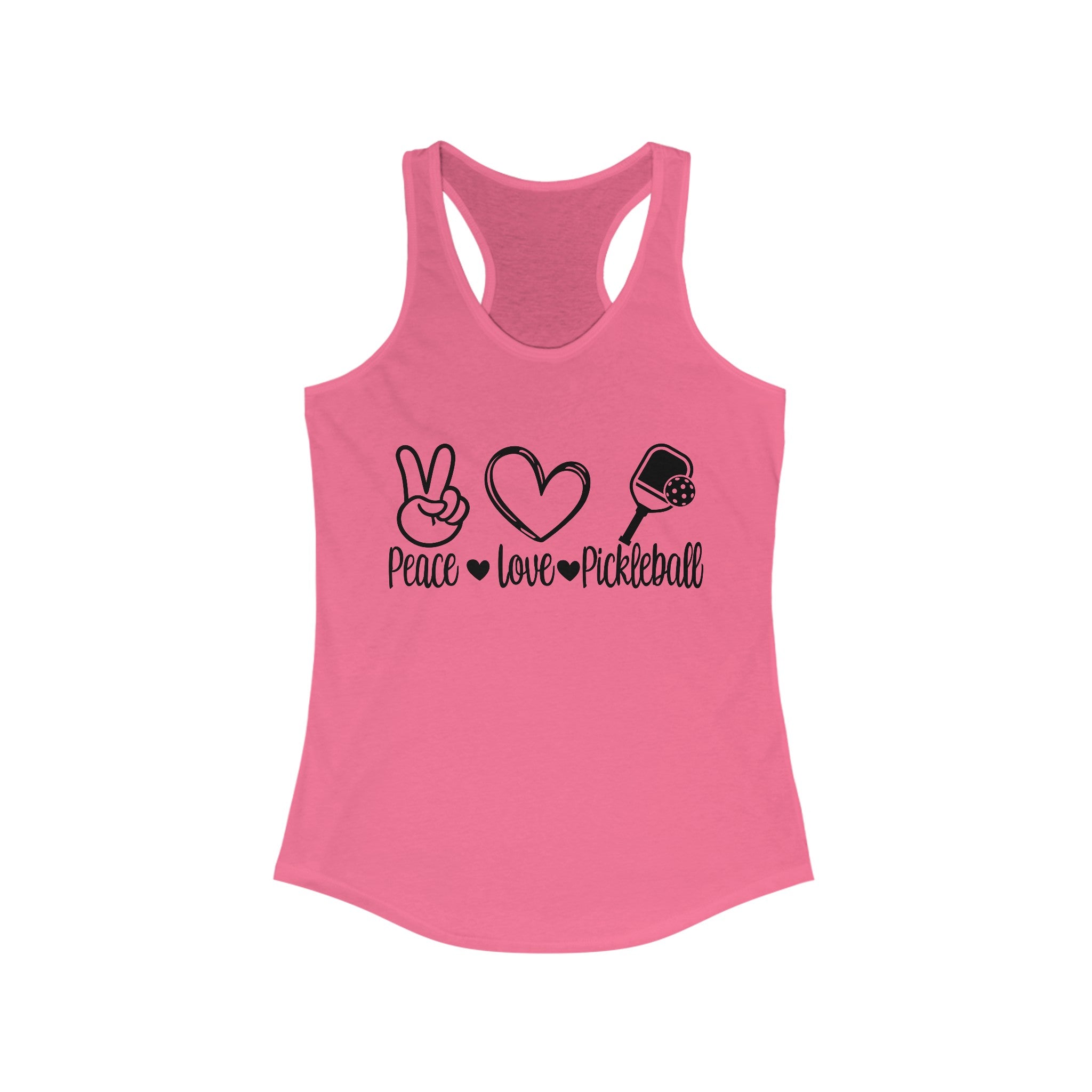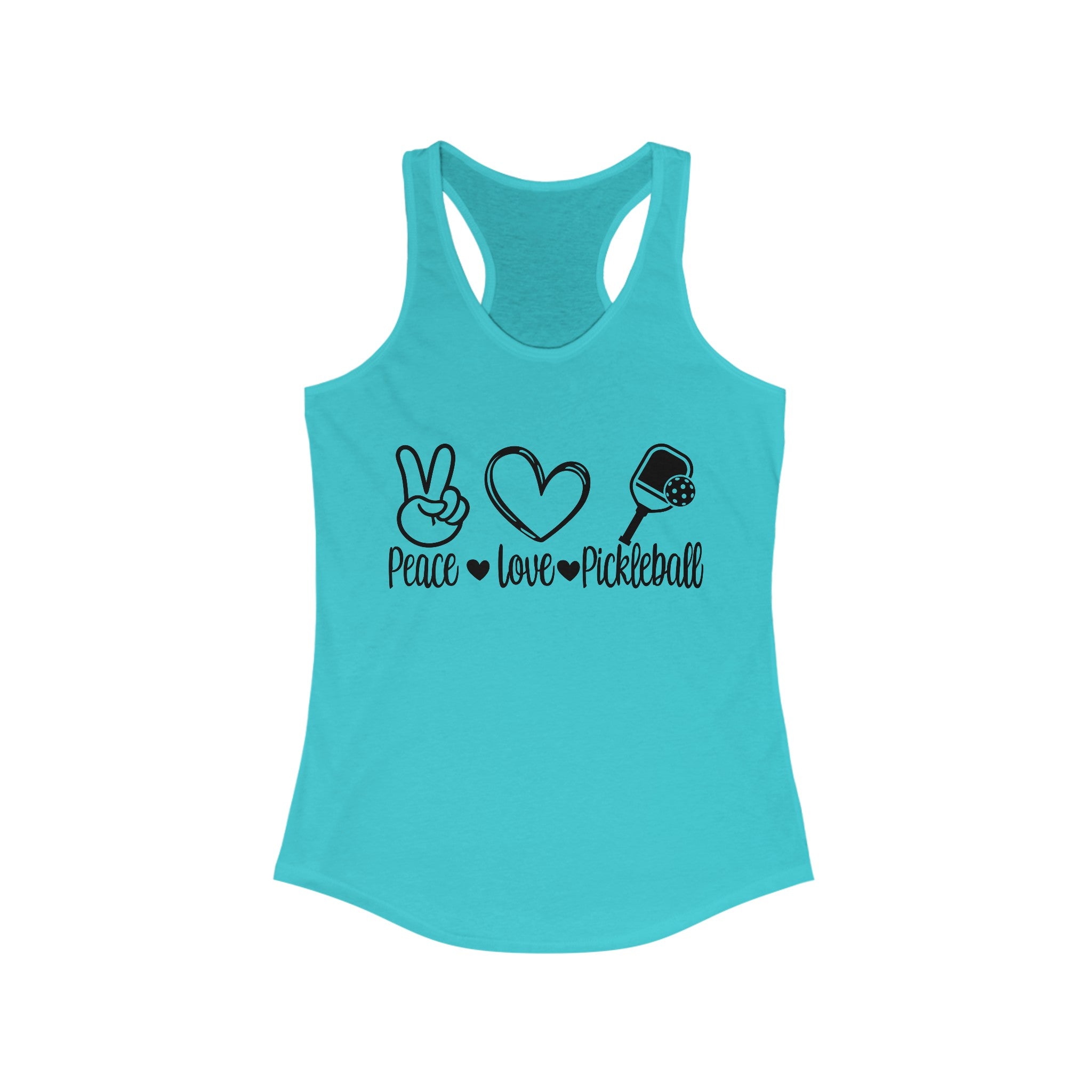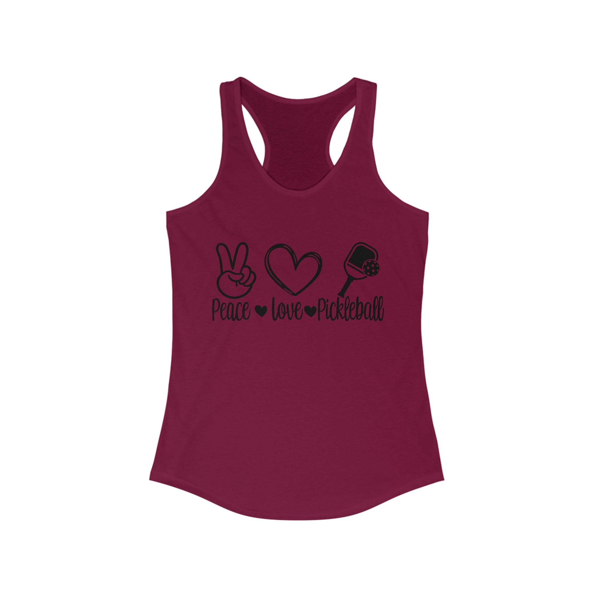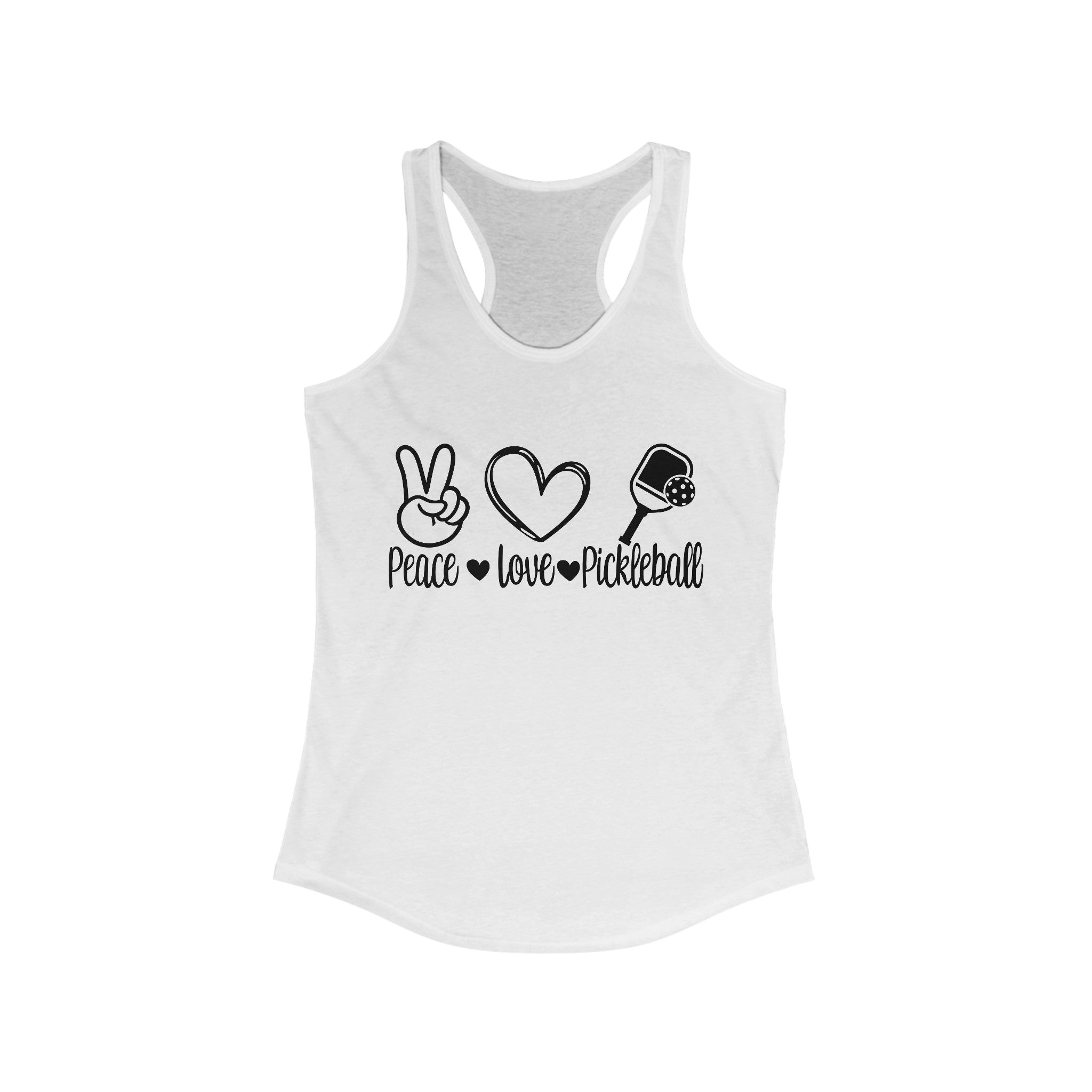 Women's Racerback Slim Fit Pickleball Tank - Peace, Love, Pickleball.